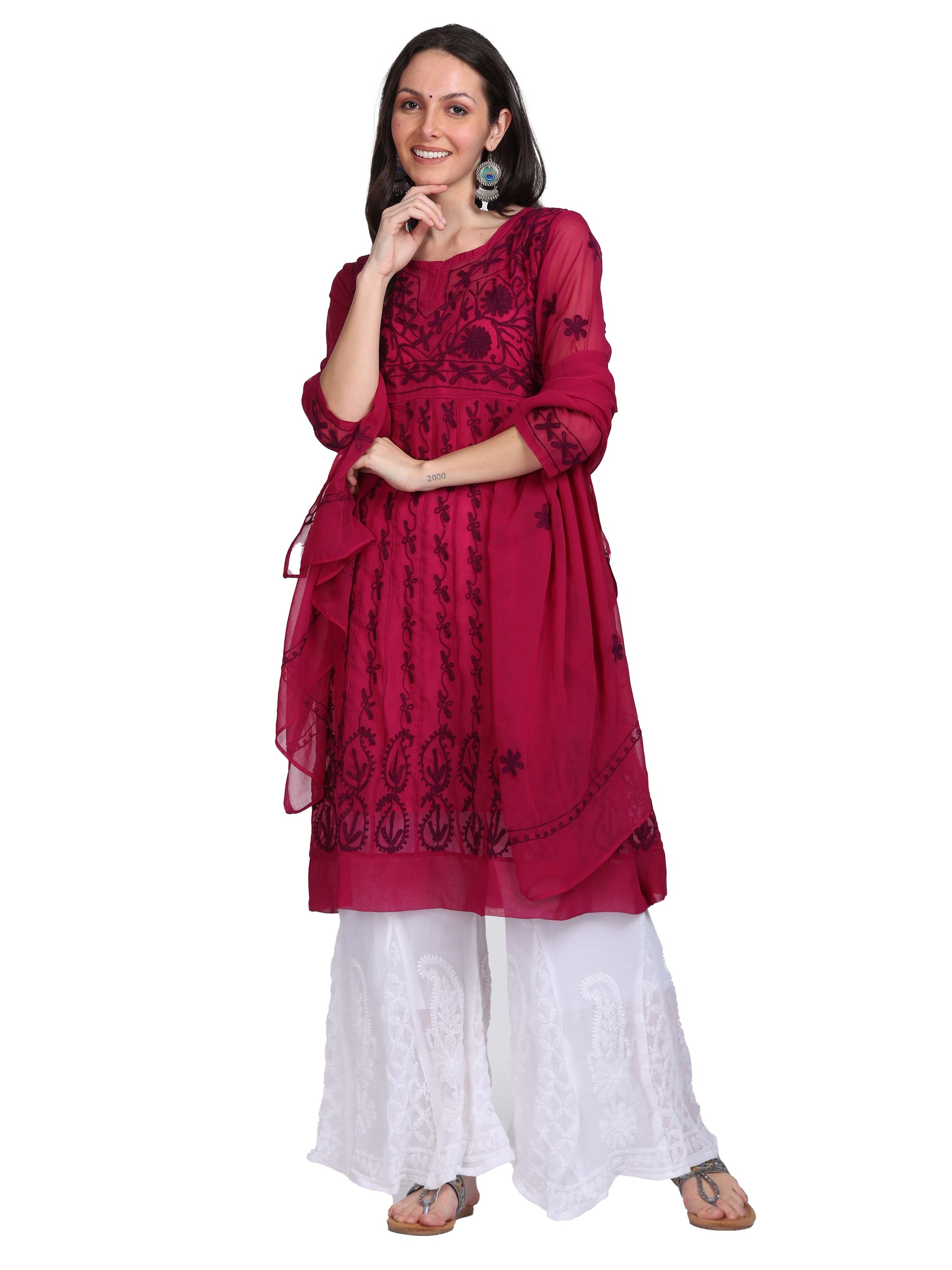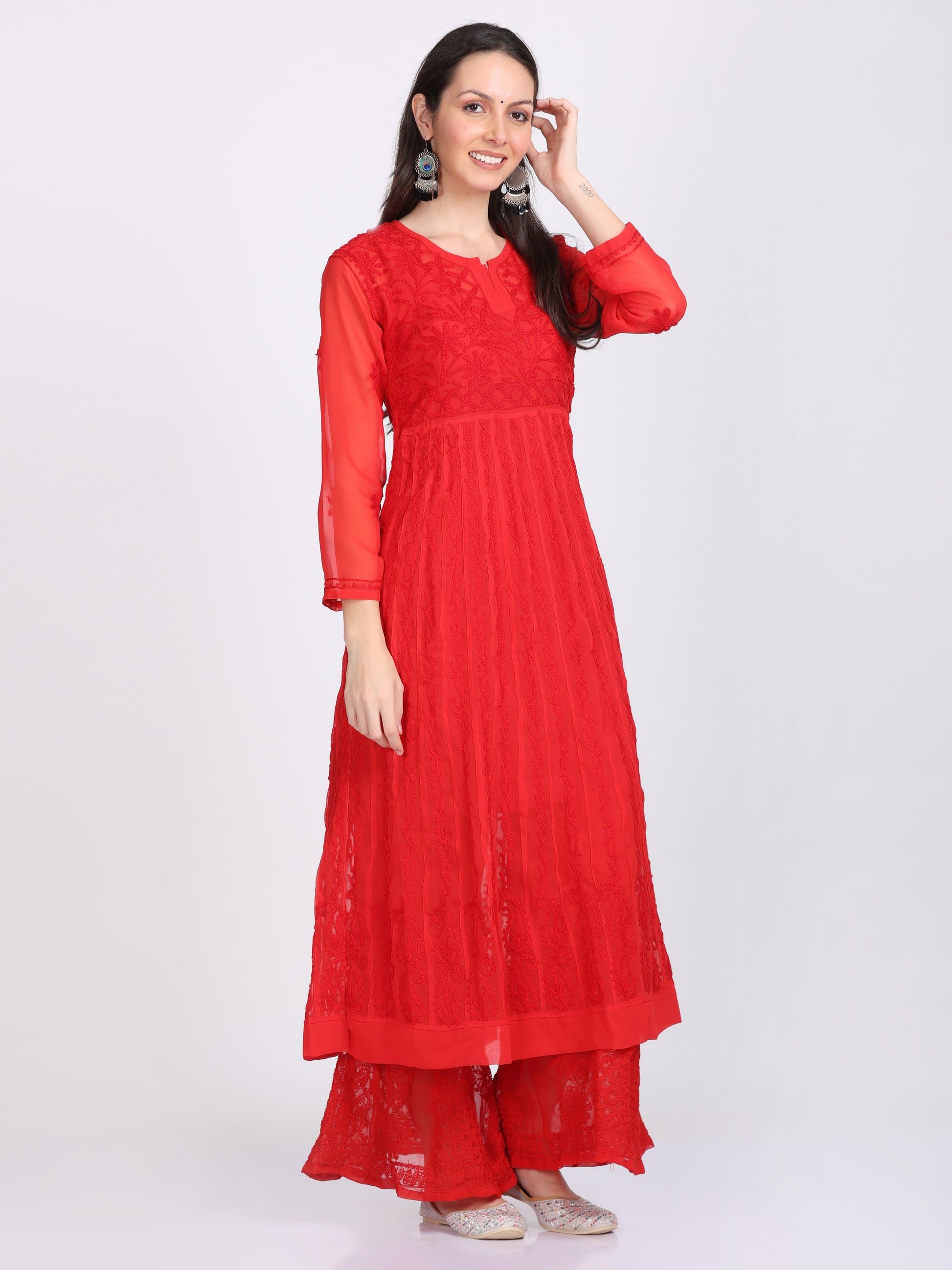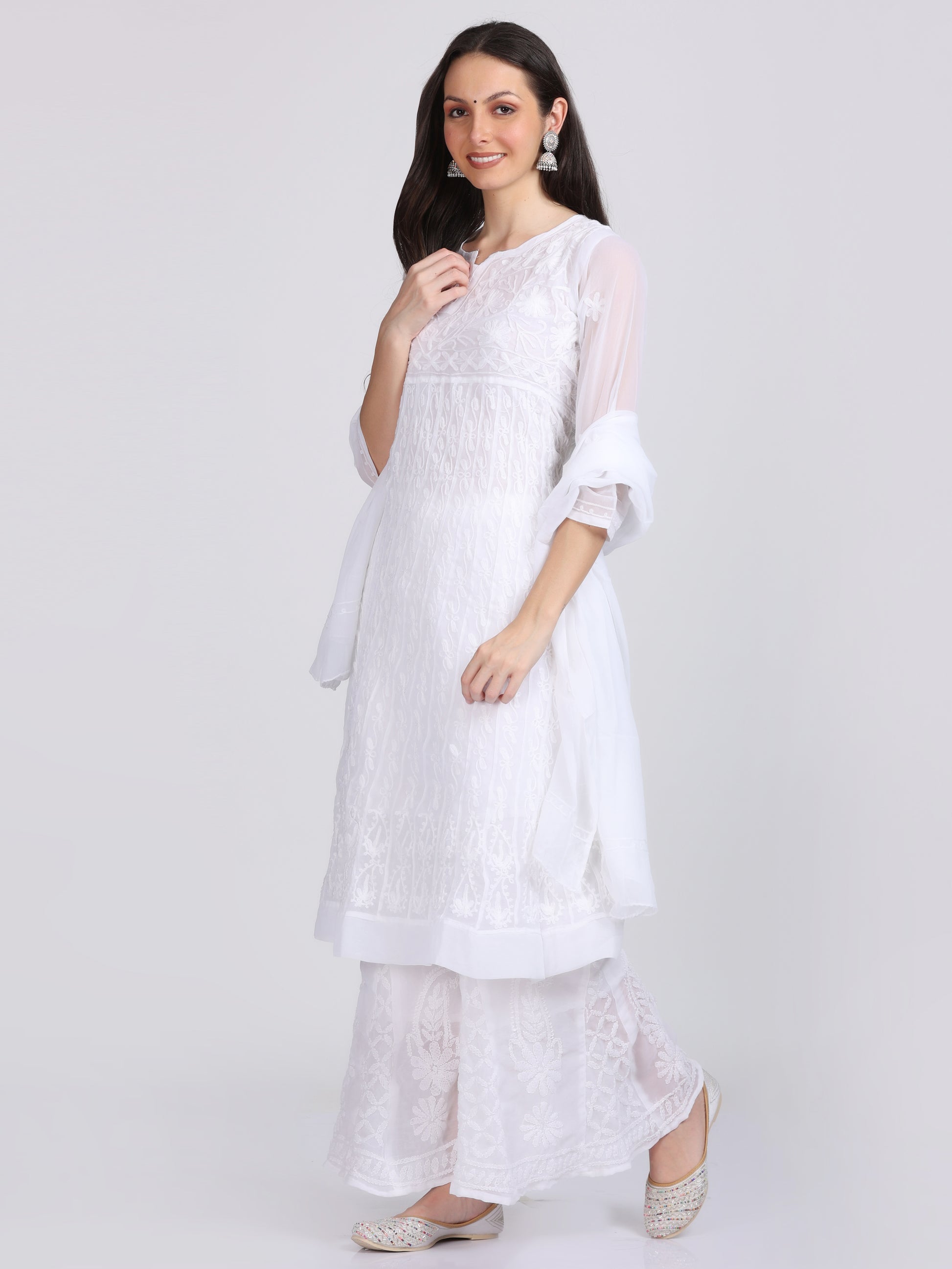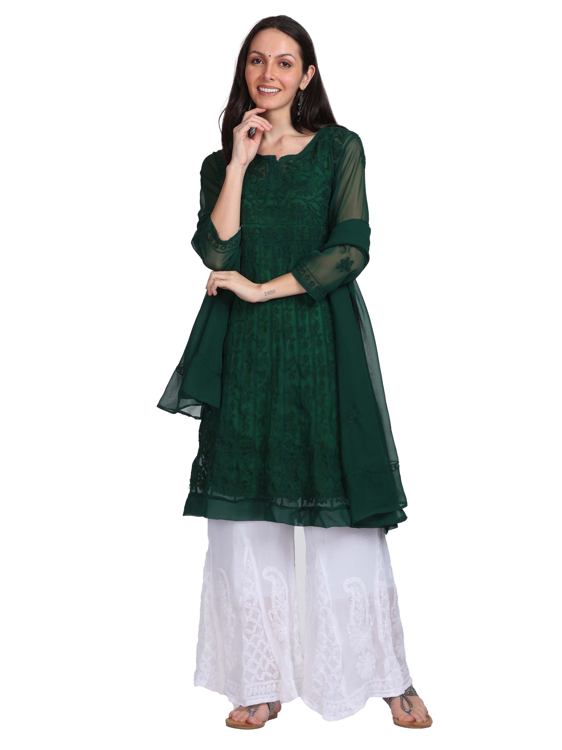 Chikankari Aari Work Flared Anarkali & Embroidered Dupatta With Matching Inner