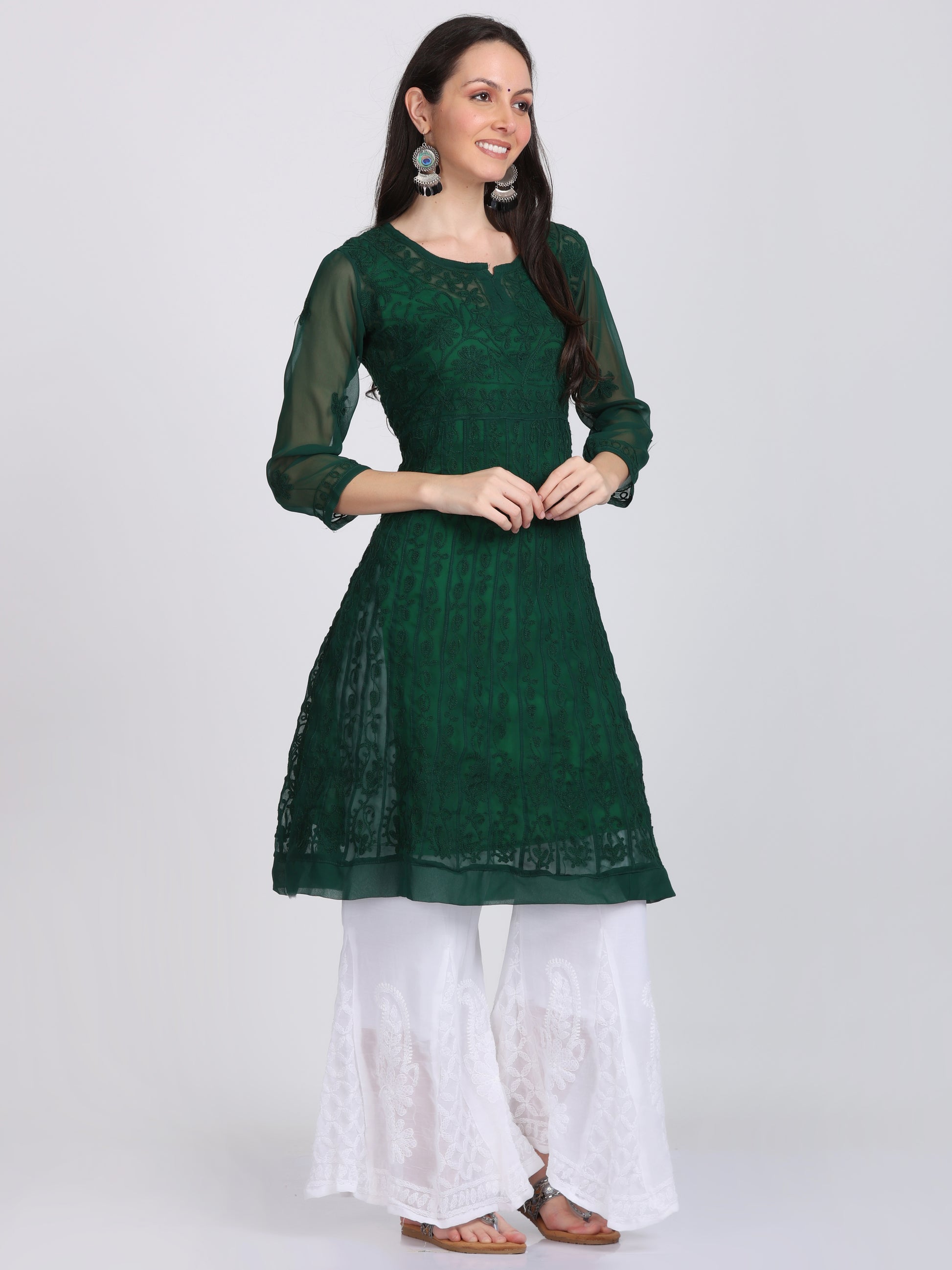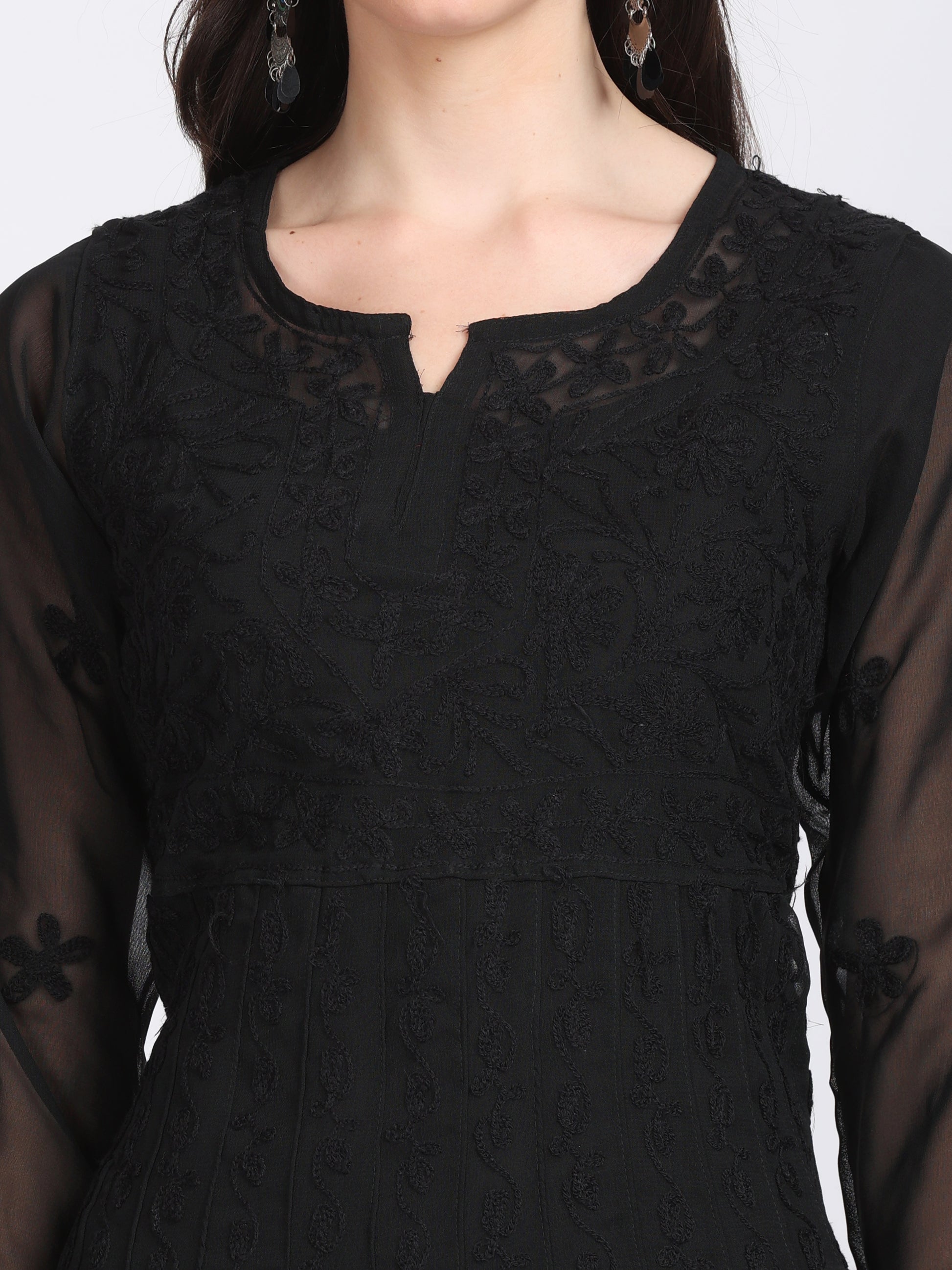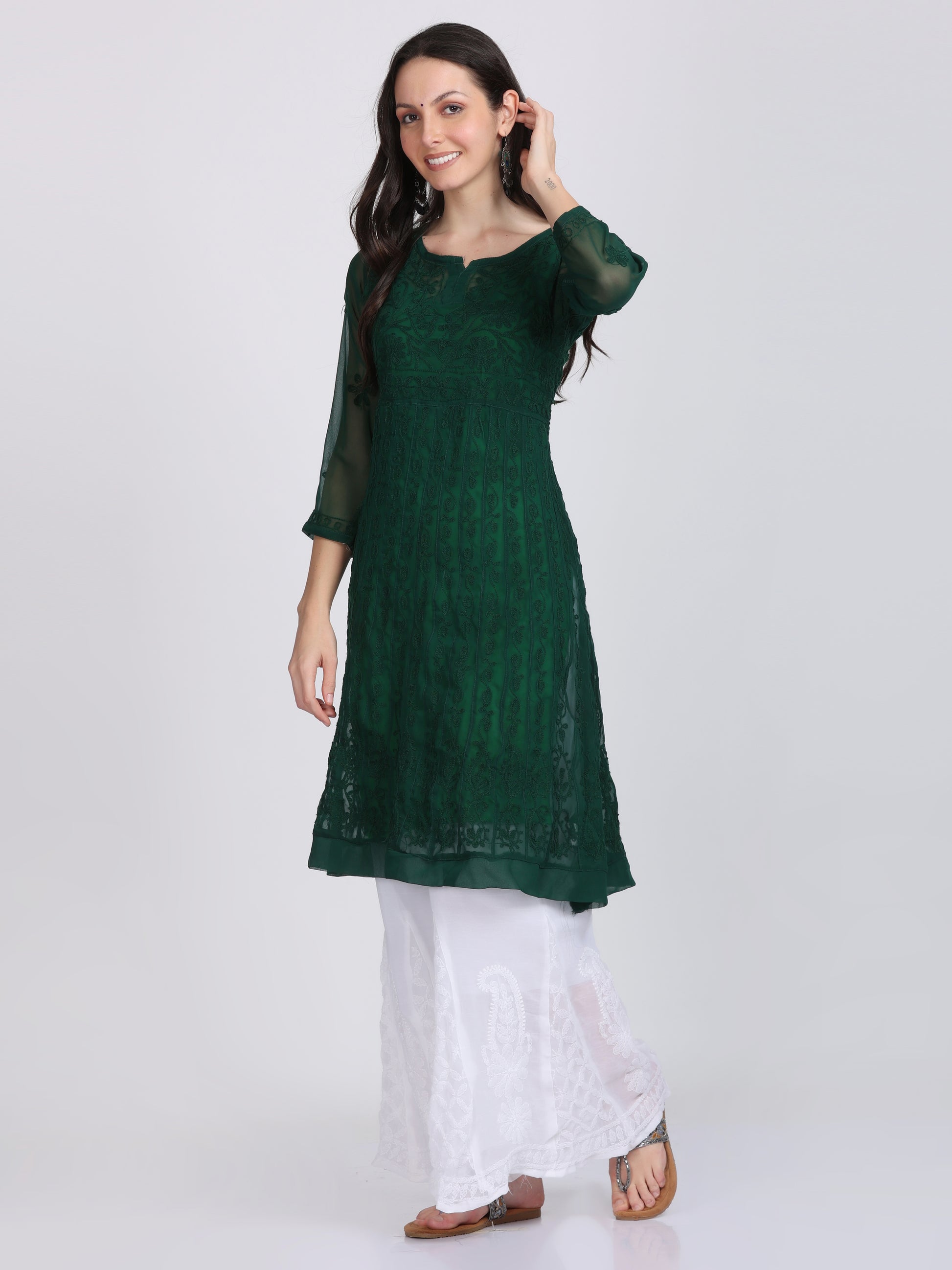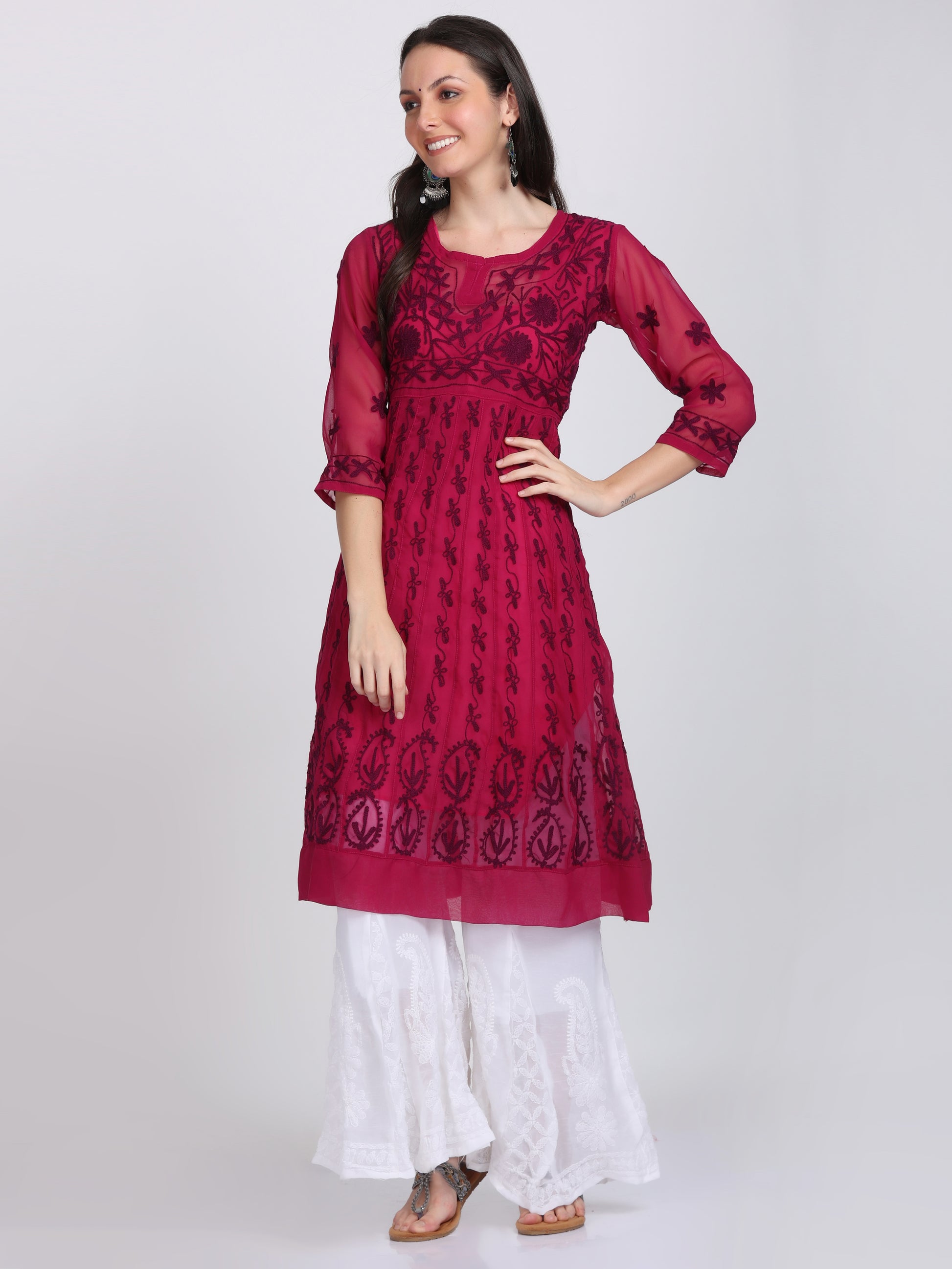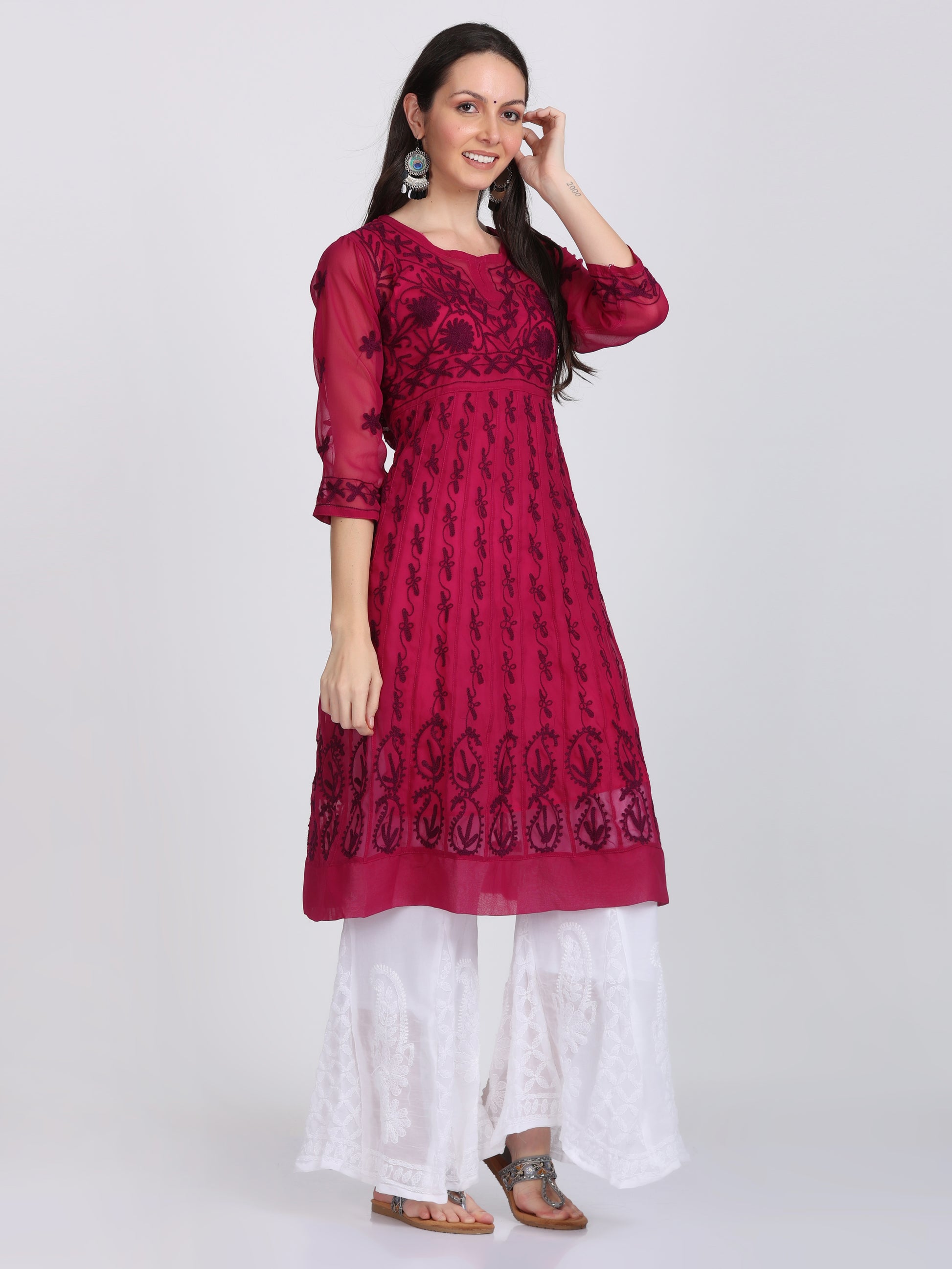 Chikankari Aari Work Flared Anarkali & Embroidered Dupatta With Matching Inner