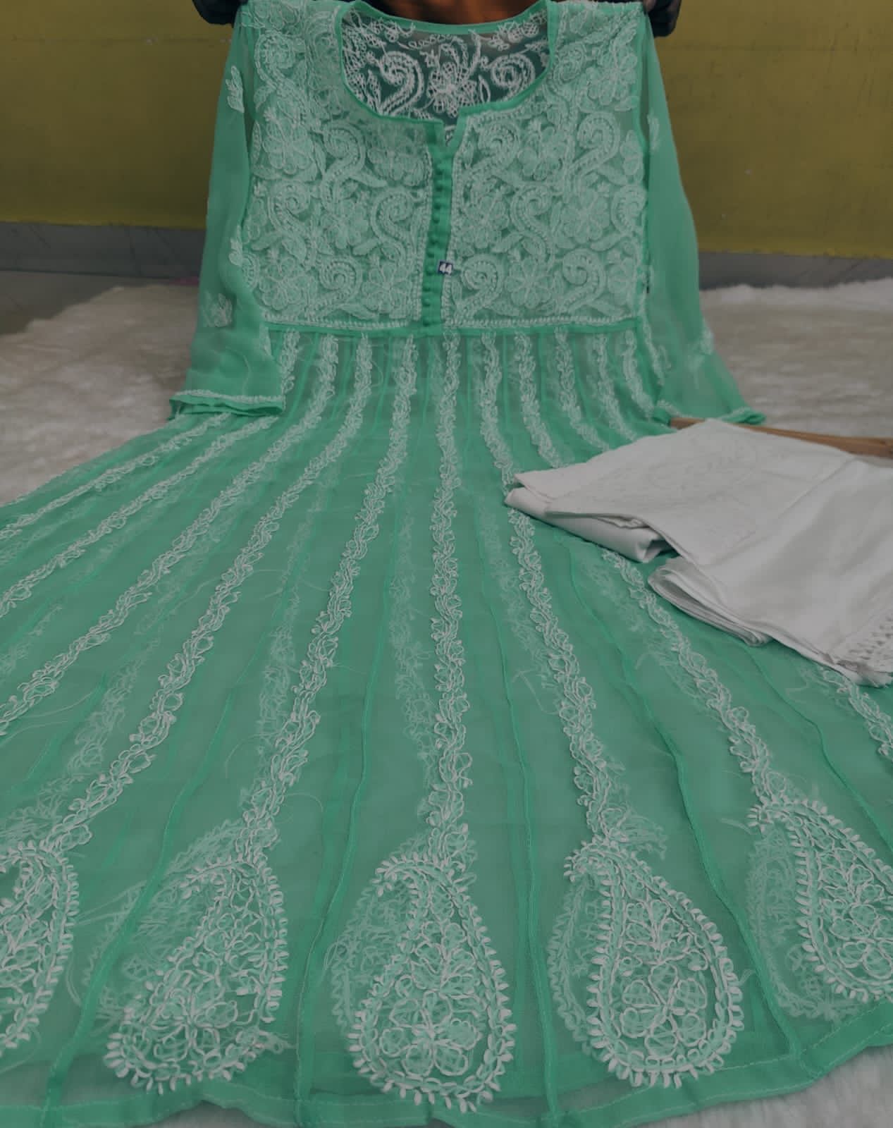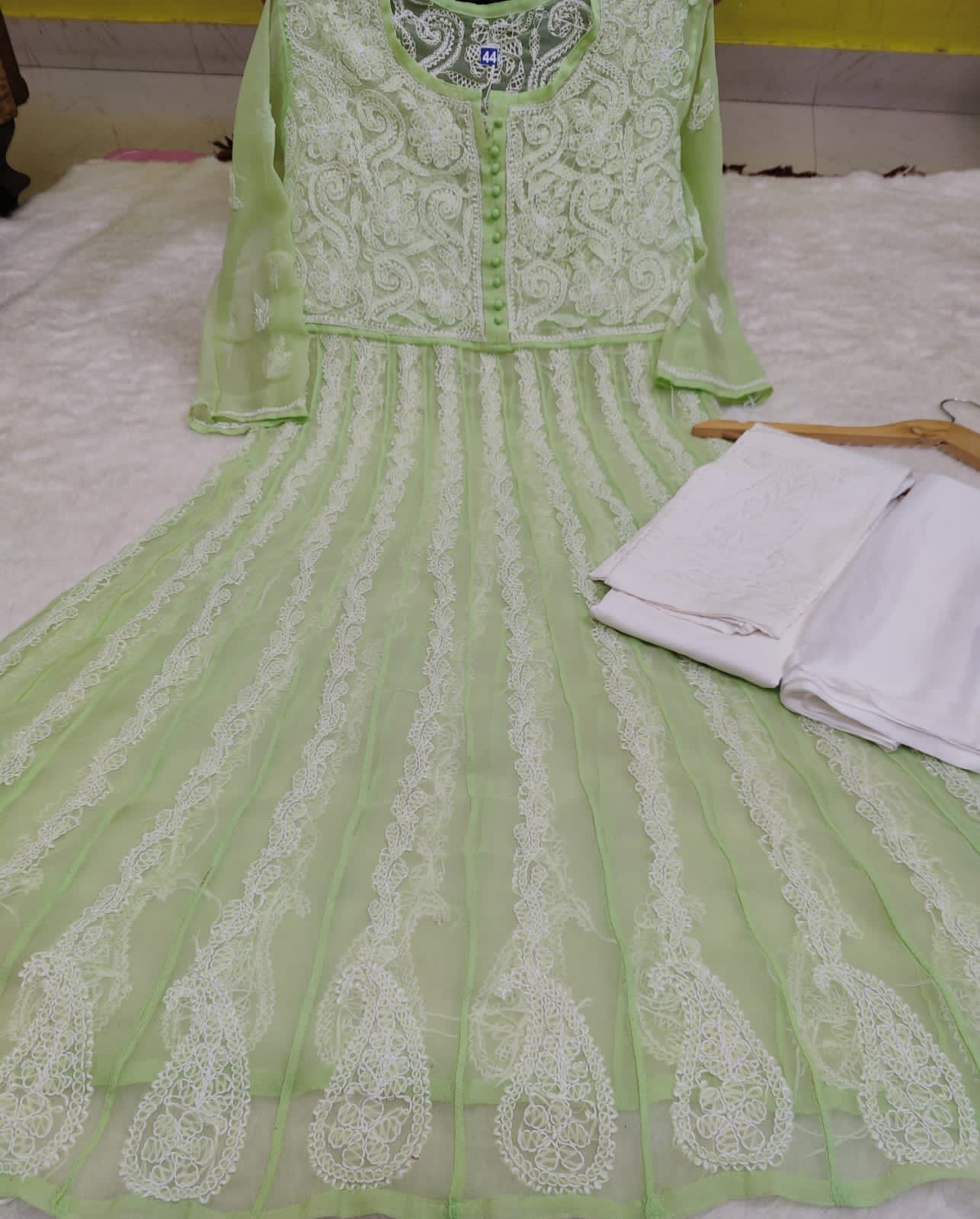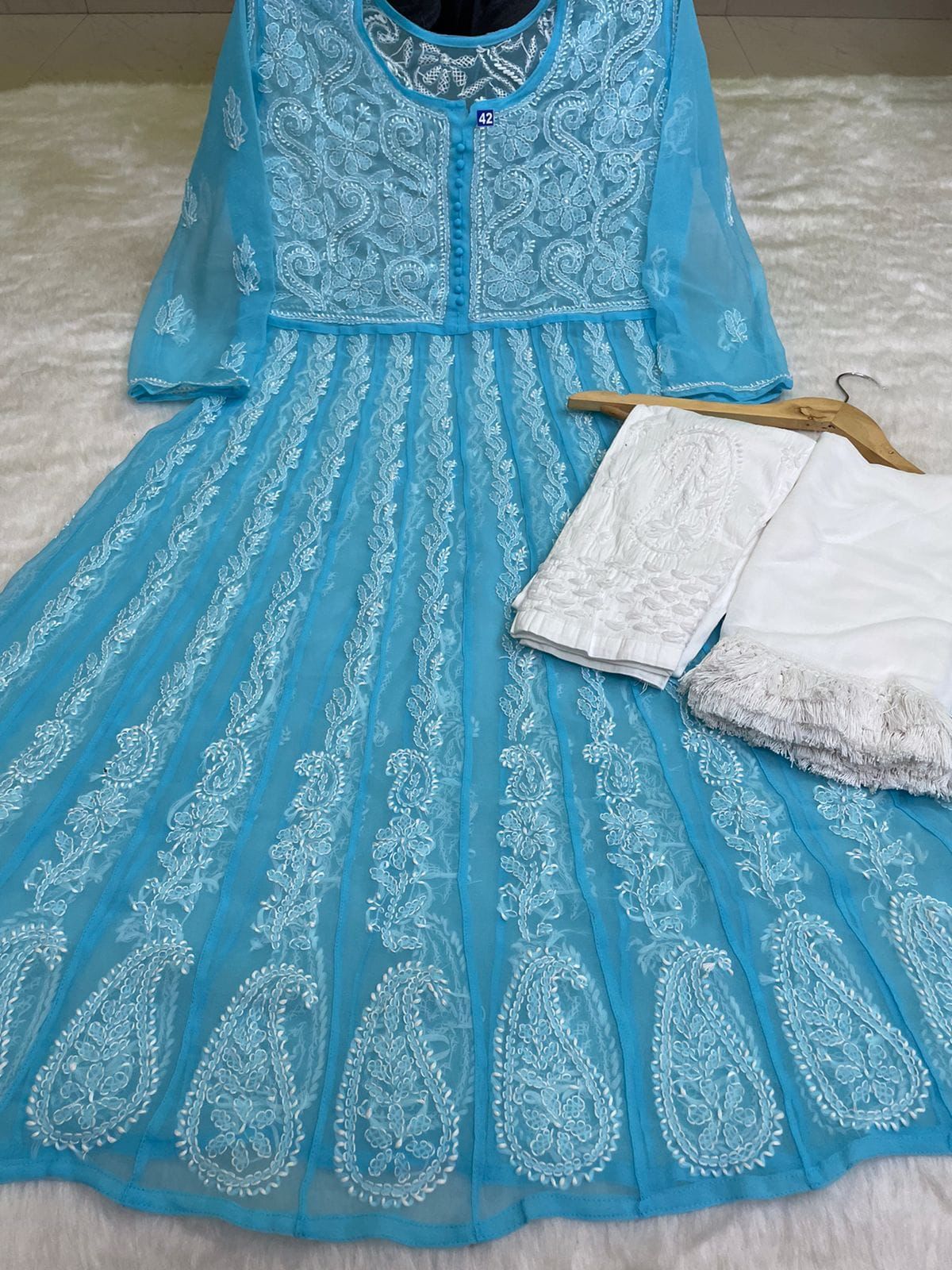 Premium Anarkali With All-Over Chikankari Work With Matching Inner