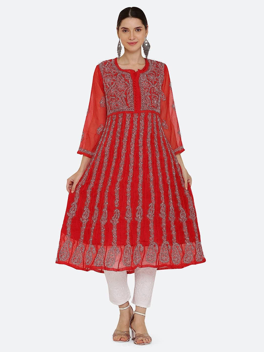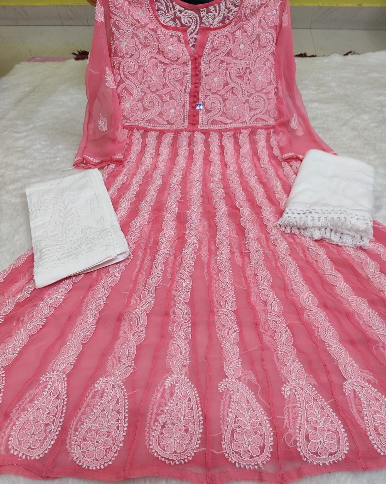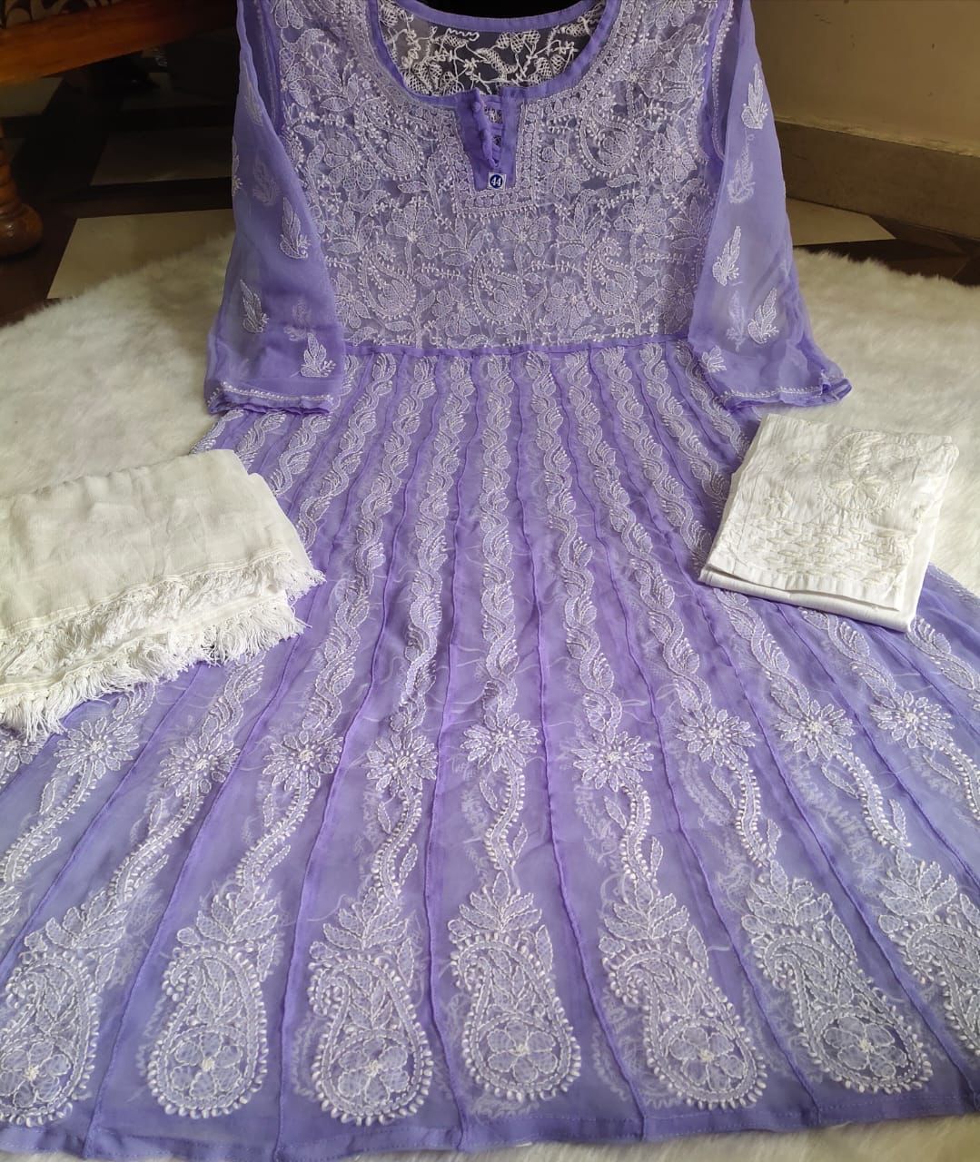 Premium Anarkali With All-Over Chikankari Work With Matching Inner