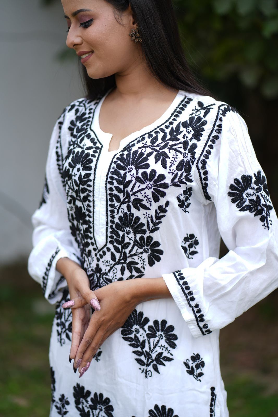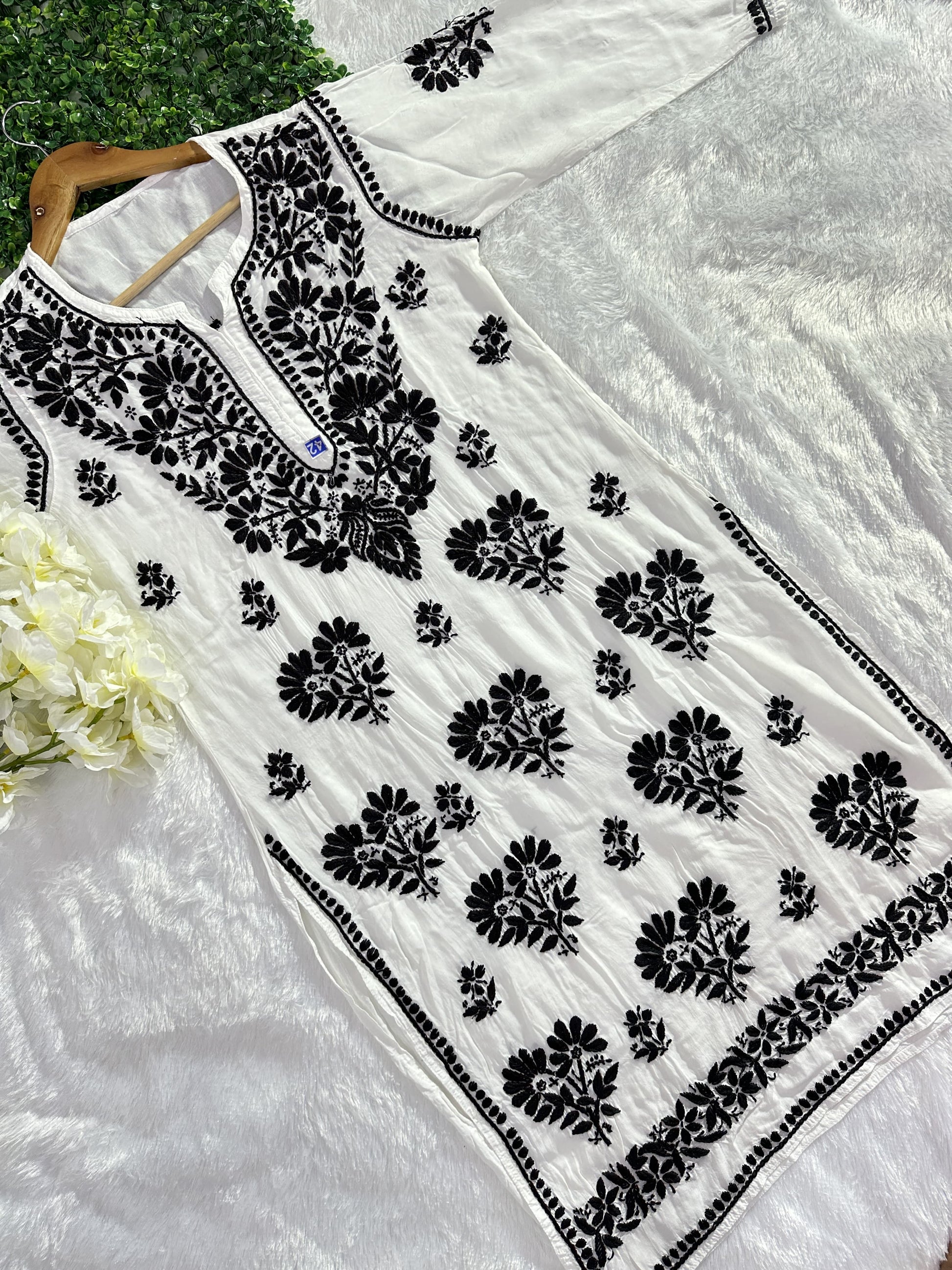 Modal Chikankari Straight Kurta With Elegant Black Thread Embroidery