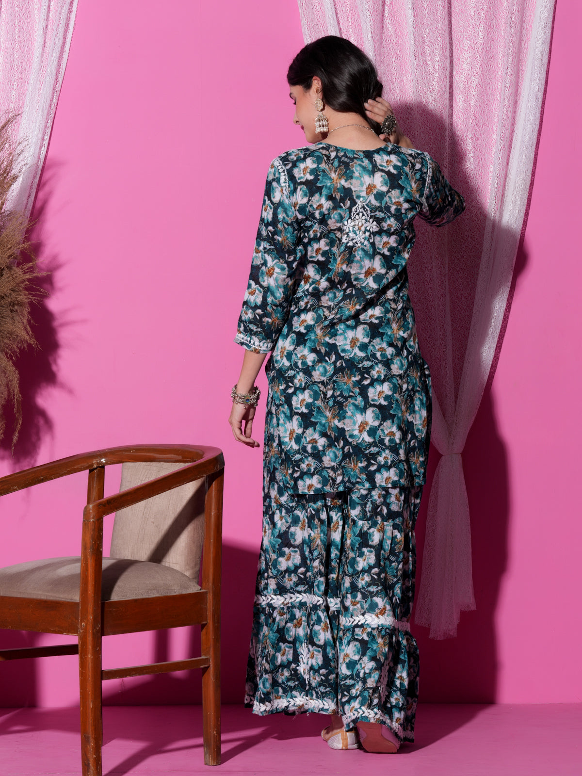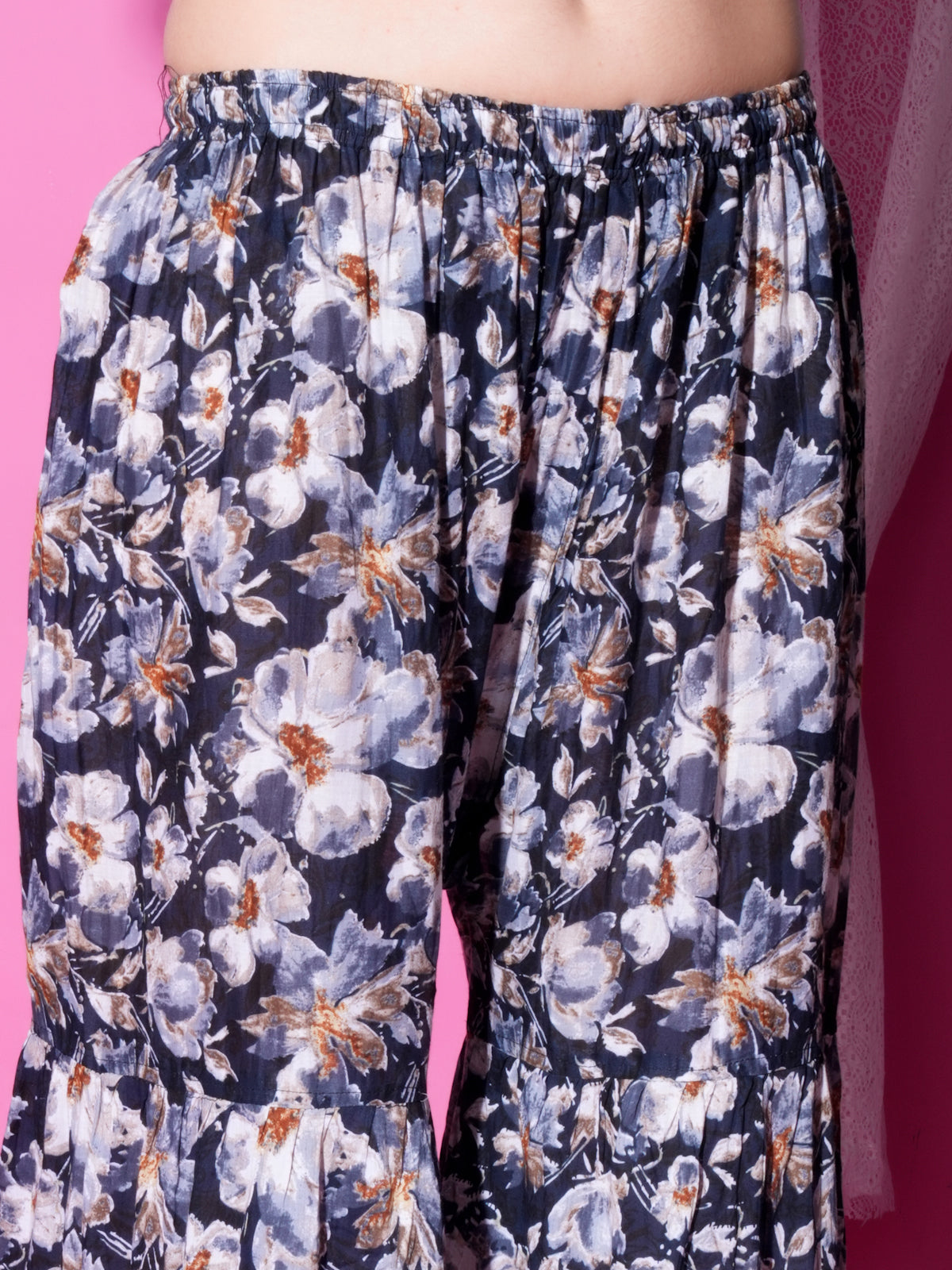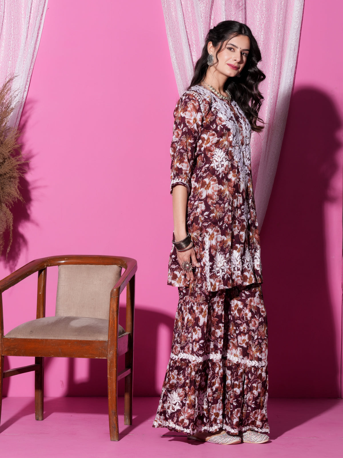 • 👗 Design: Classic gharara with detailed flair and matching kurti