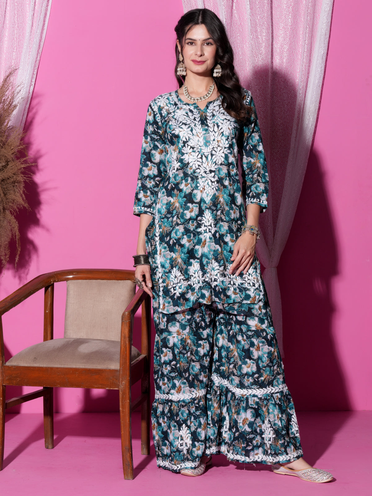 Summer Friendly Mul-Mul Handwork Chikankari Gharara Set