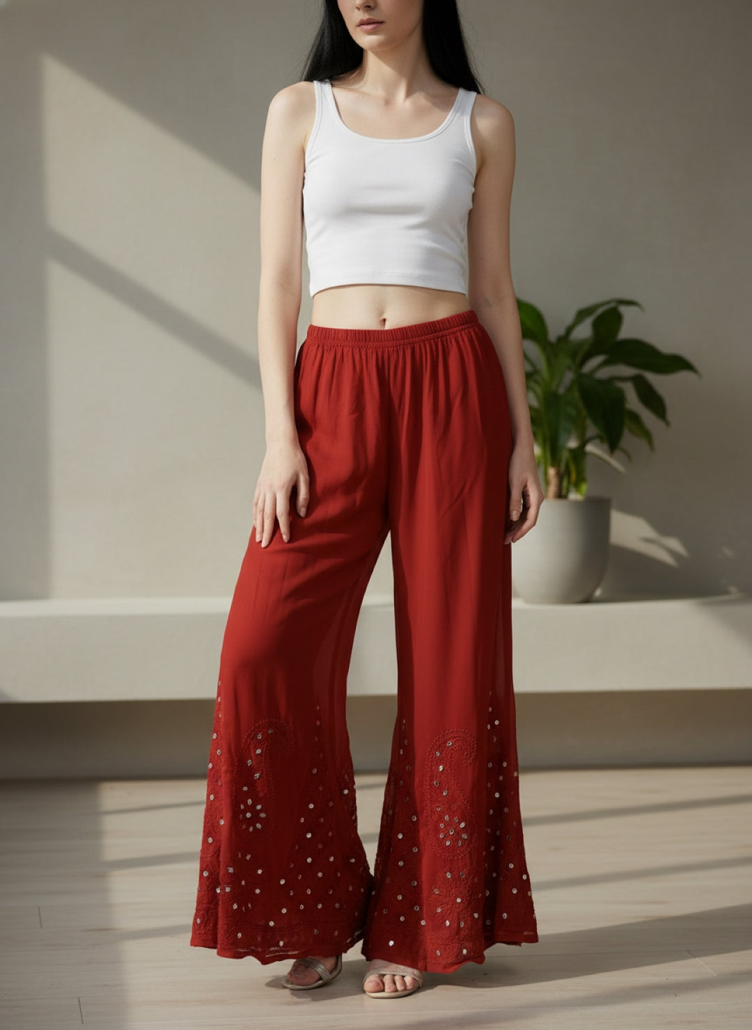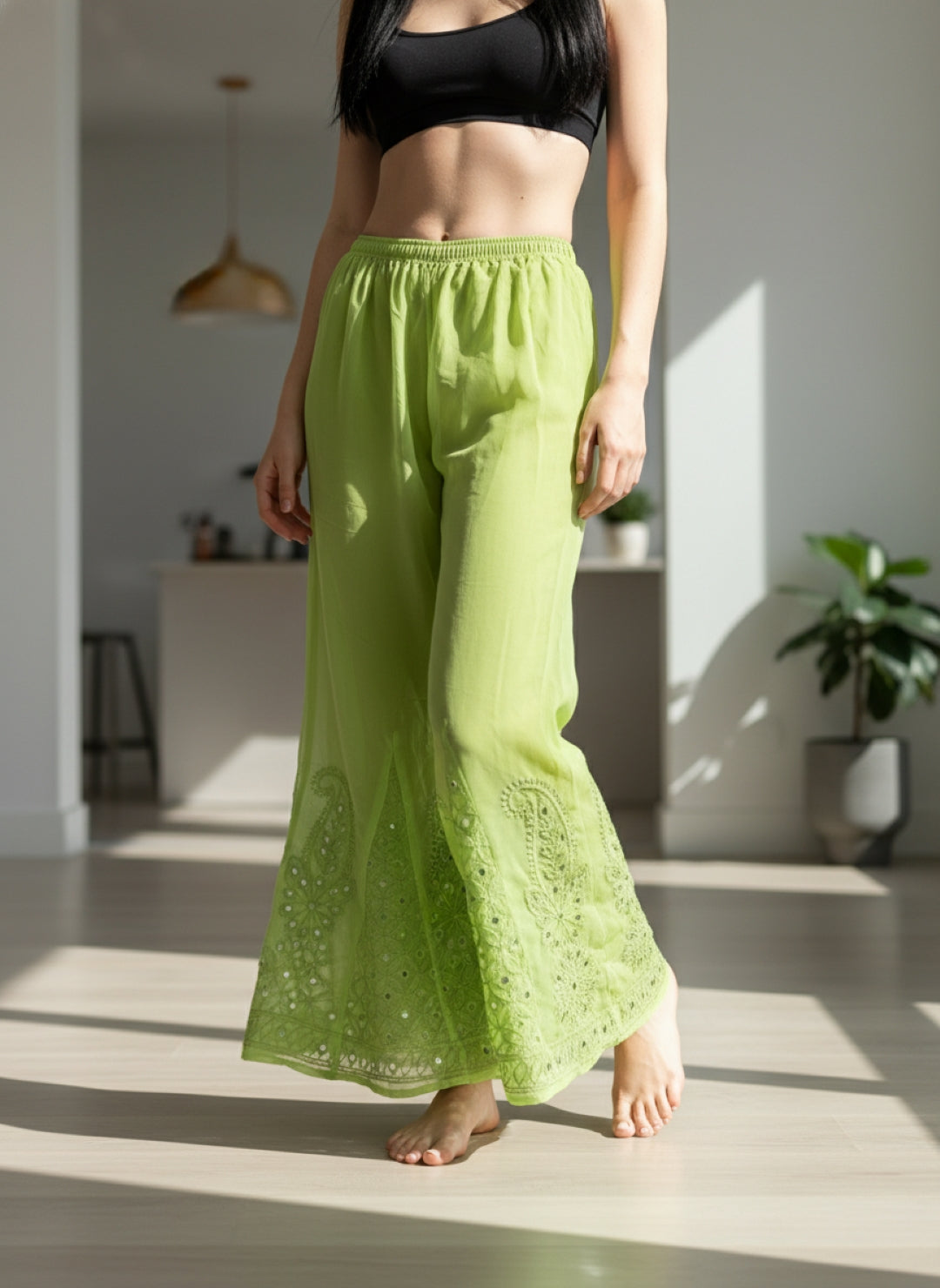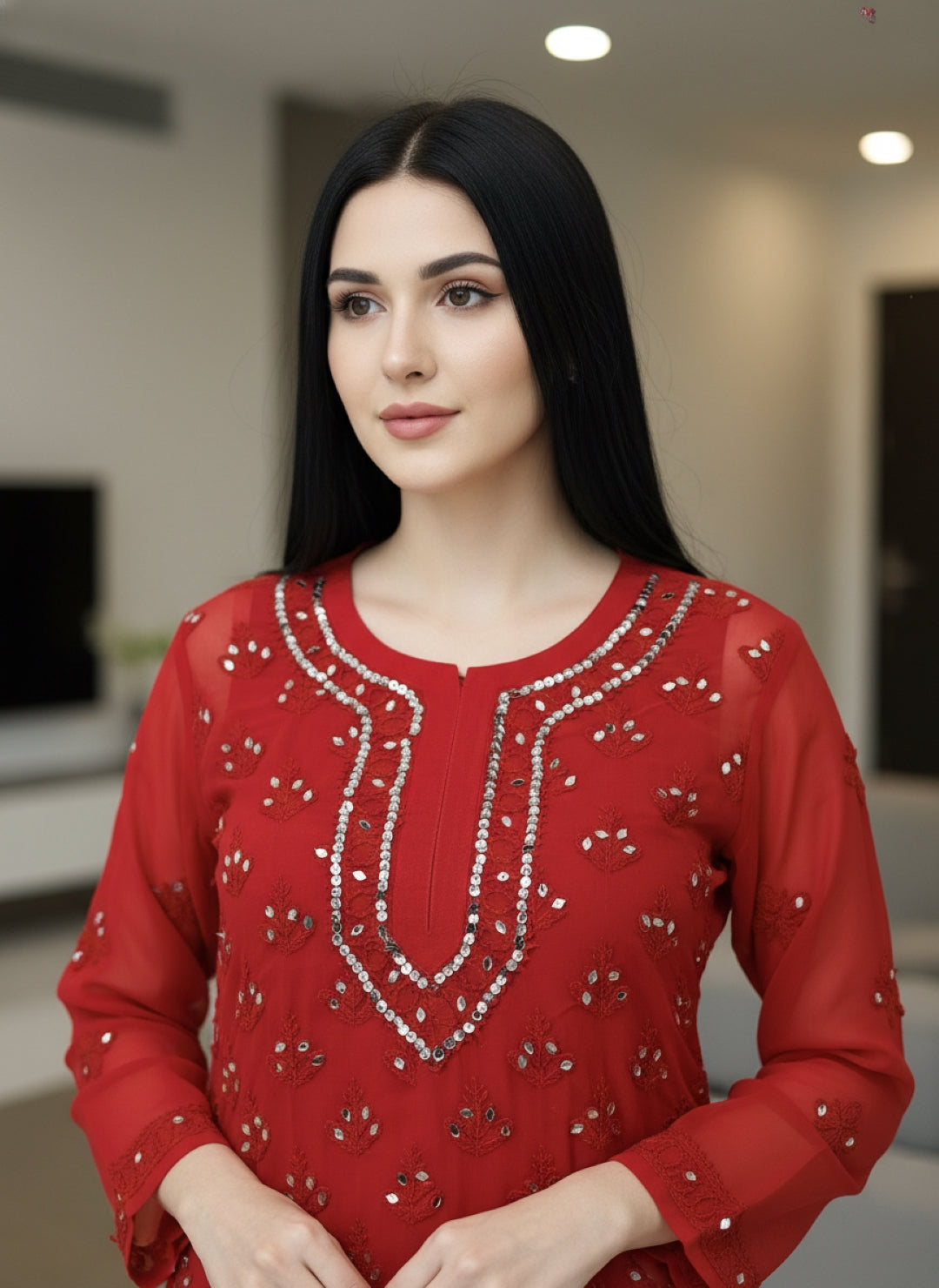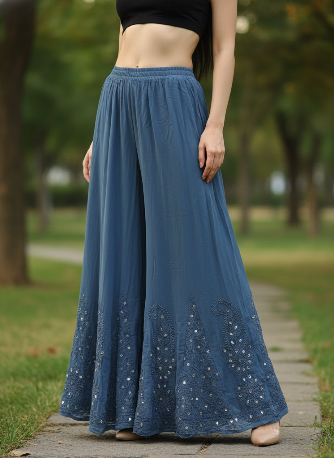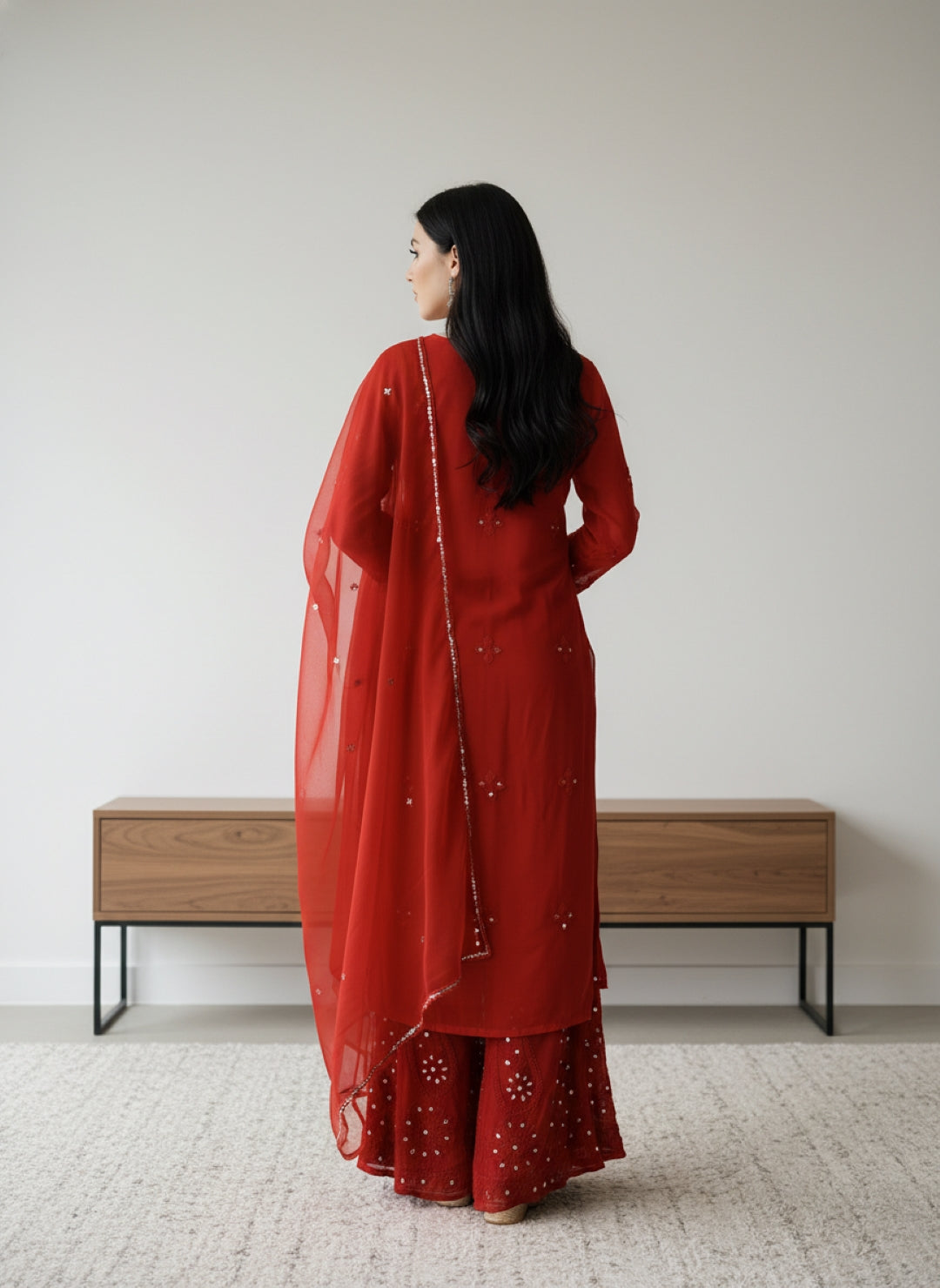 Noor-e-Chikankari Georgette Mirror Kurta Sharara set with Dupatta and Inner.