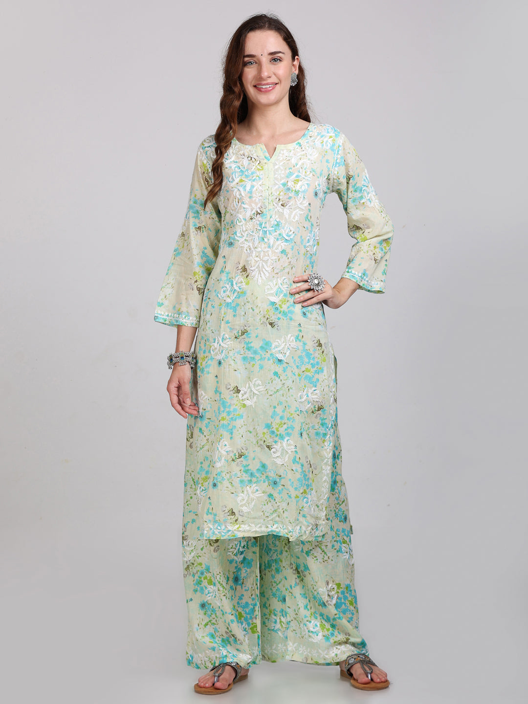 Mul-Mul Chikankari Kurta & Palazzo Set