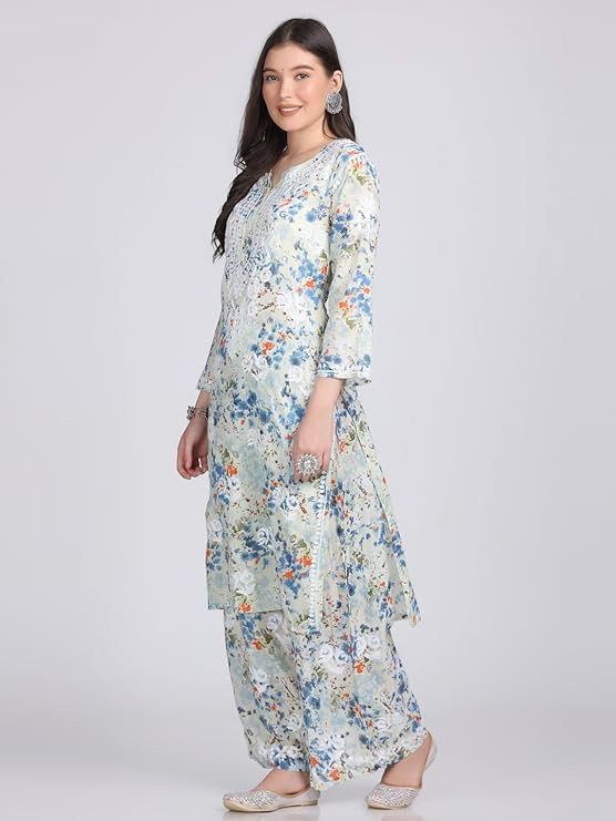 Premium Chikankari Handwork Rayon Kurta & Plazzo Set With Mukaish Work
