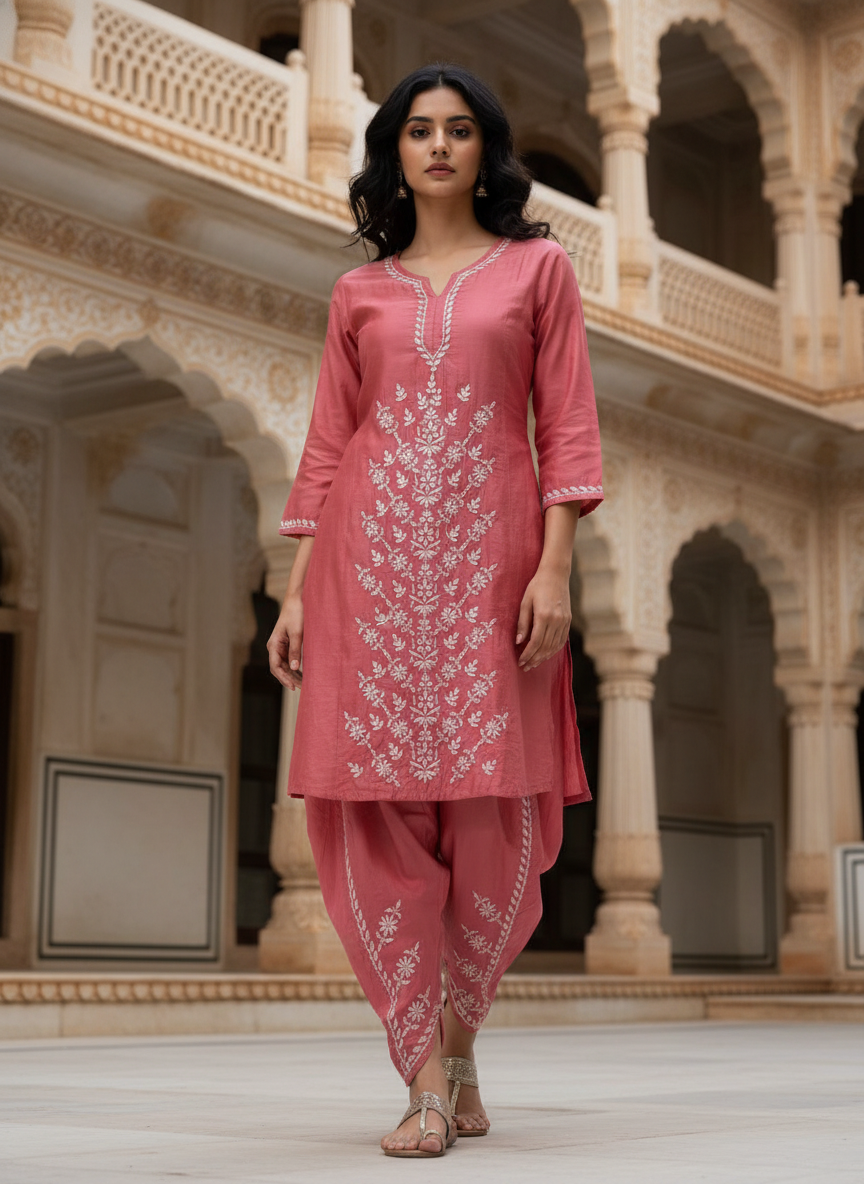 Premium Chanderi Silk Kurta Dhoti Set for Women – Festive & Wedding Wear