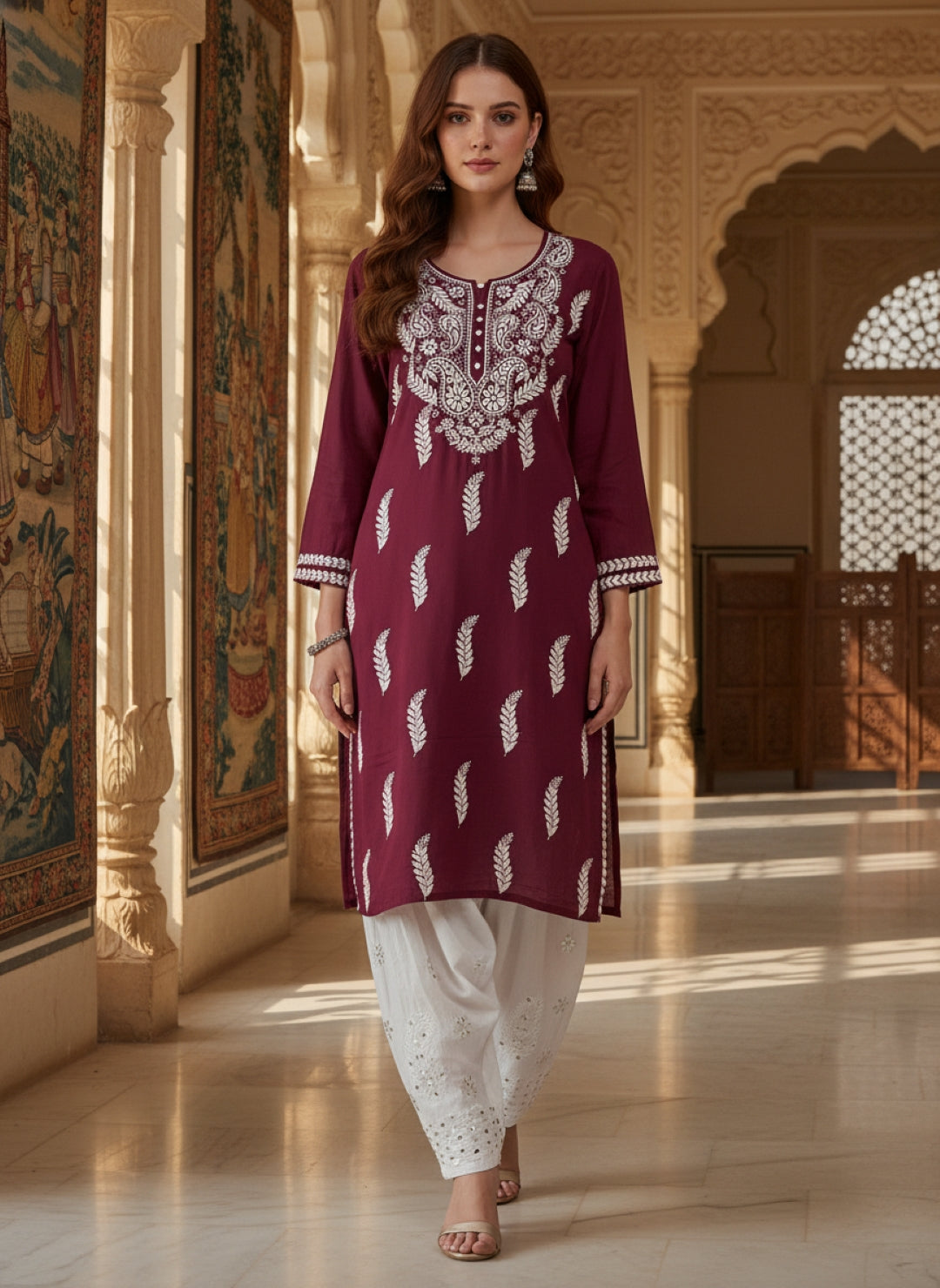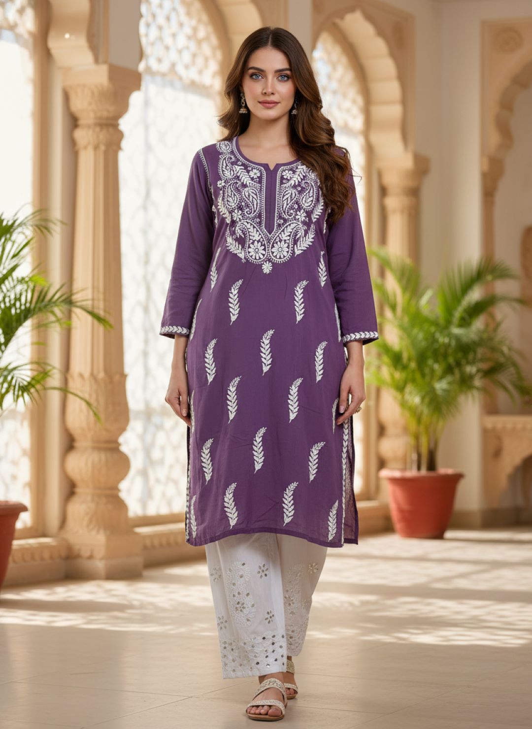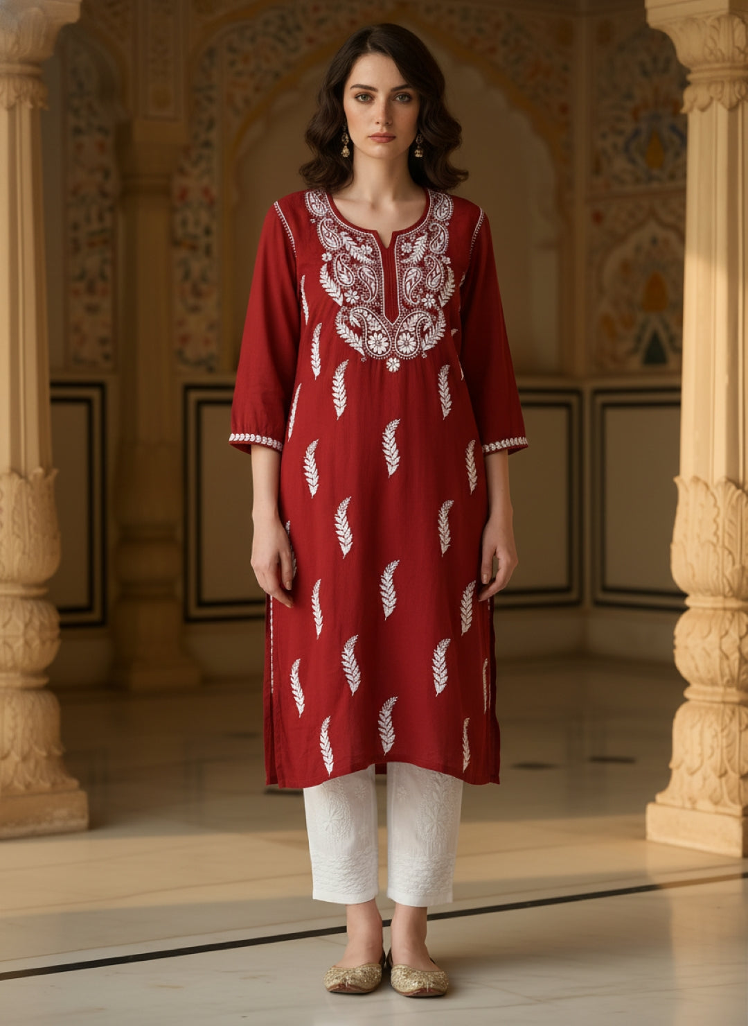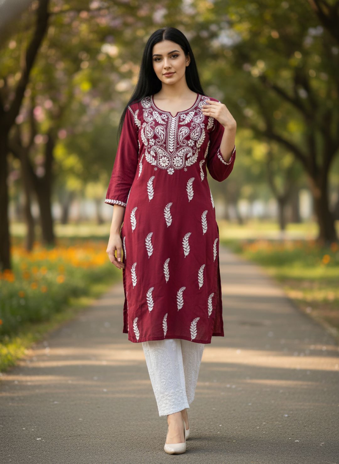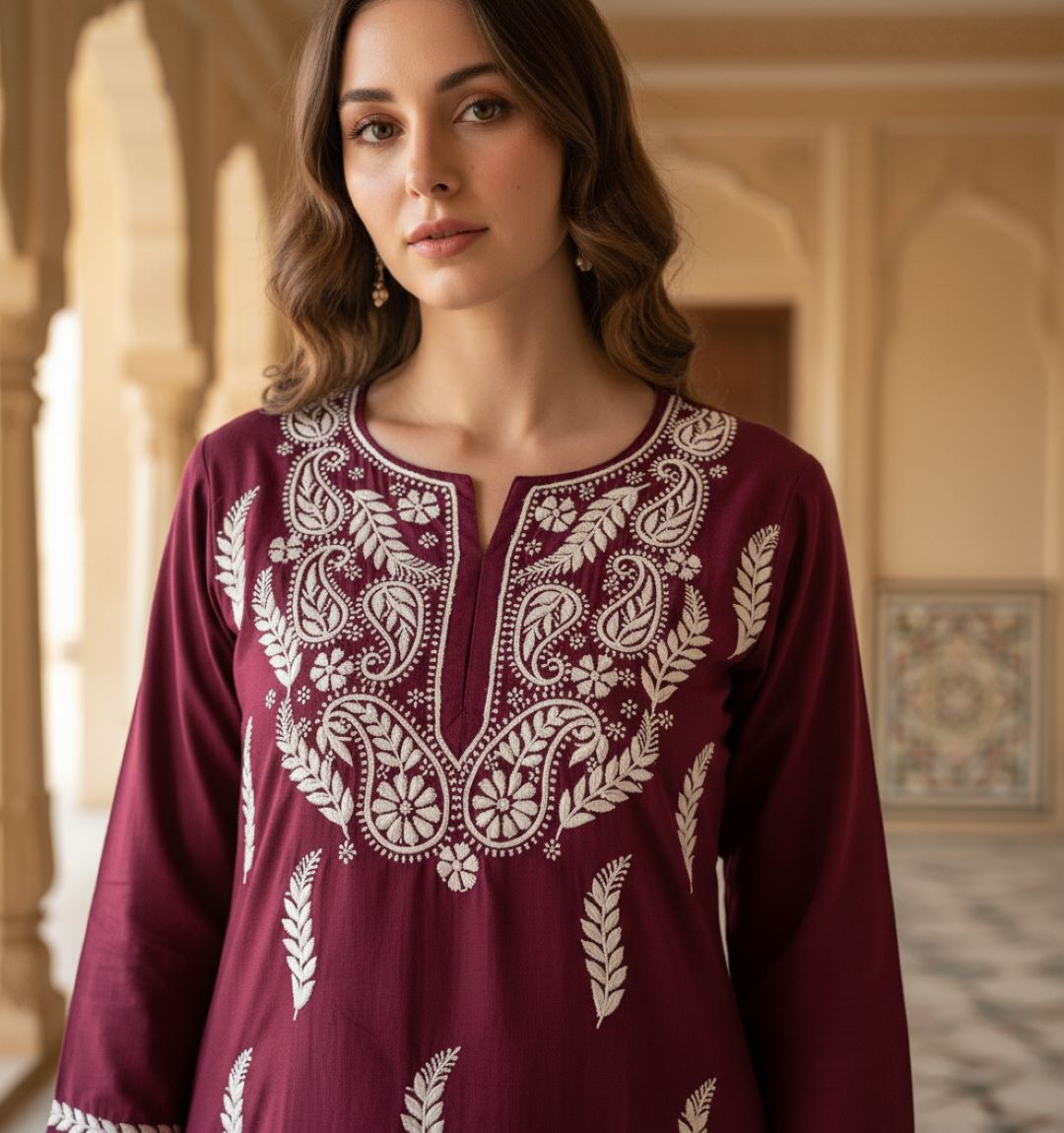 Women’s Lucknowi Chikankari Plus-Fit Modal Straight Kurta