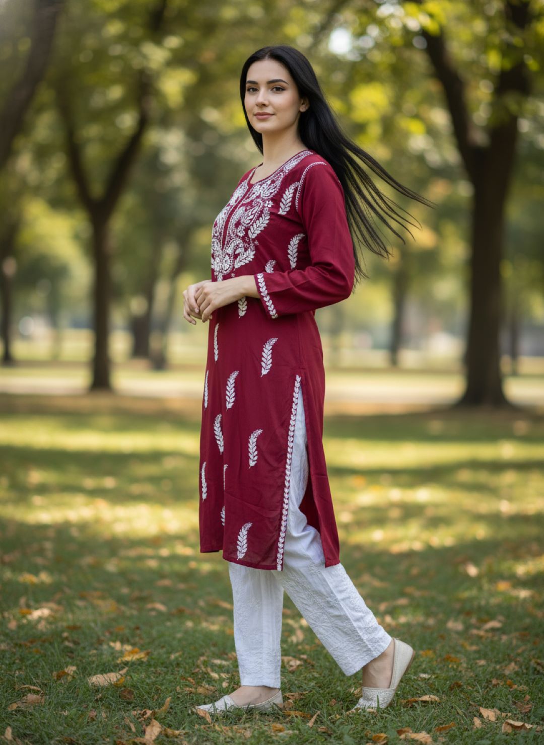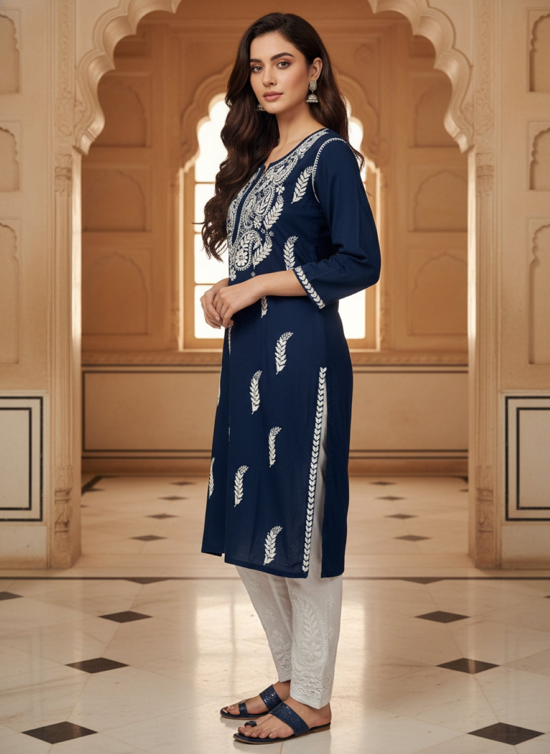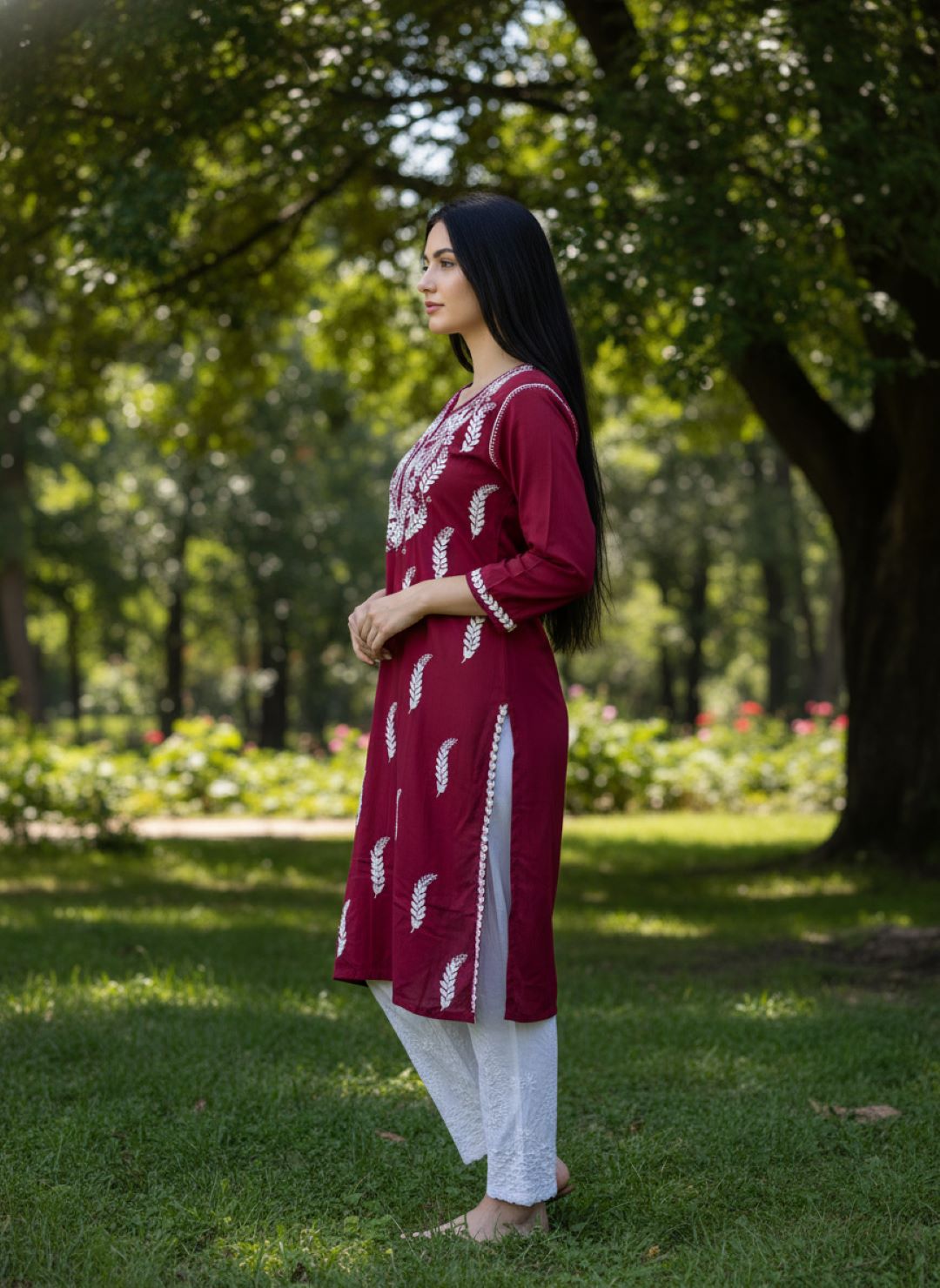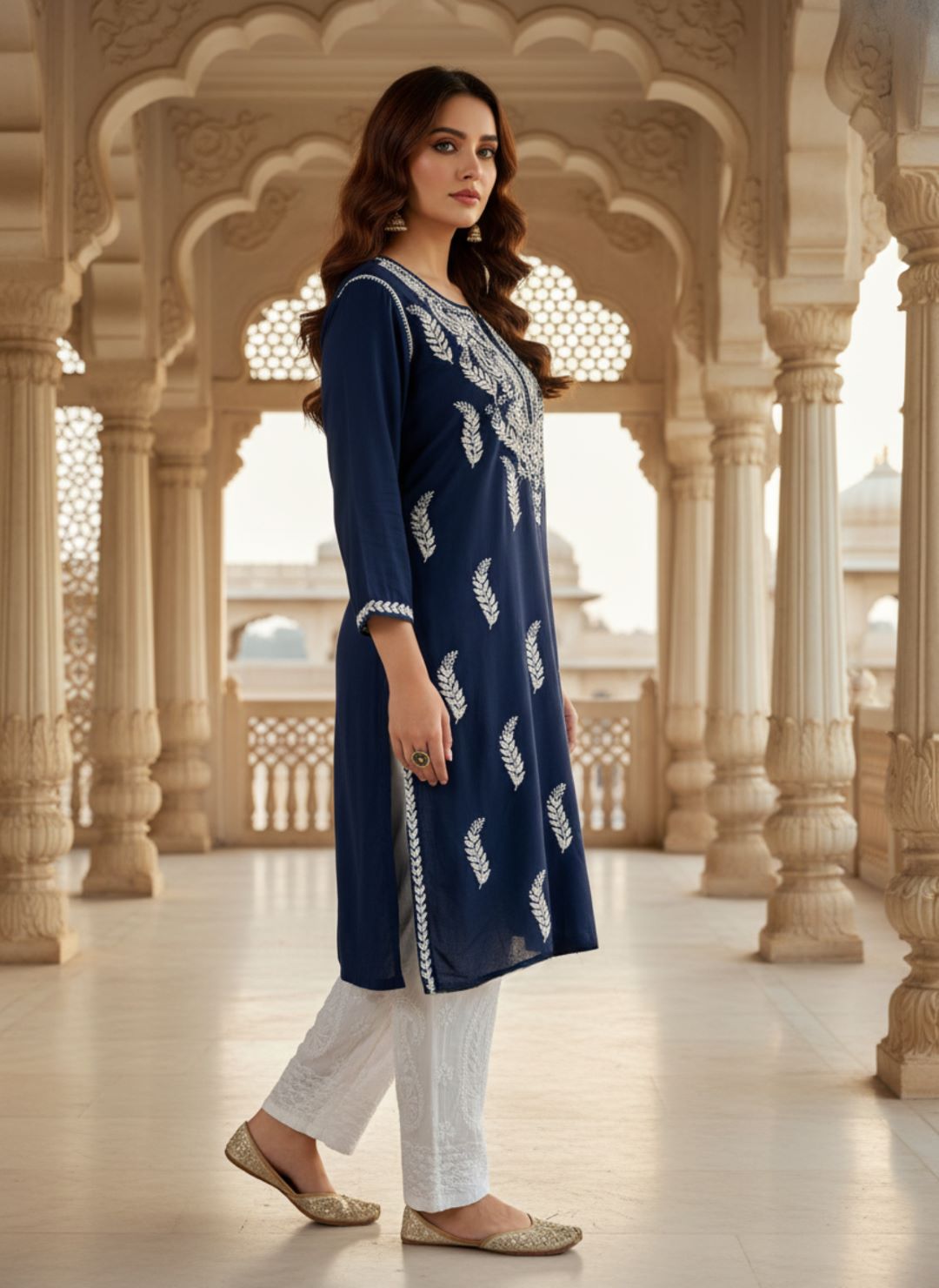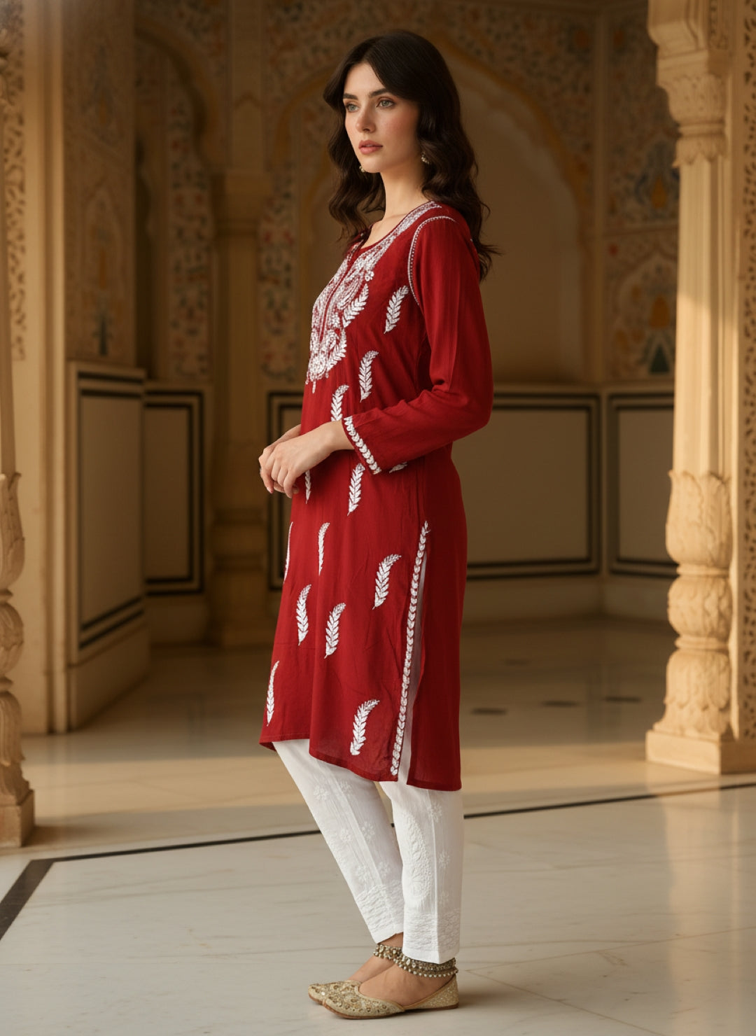 Women’s Lucknowi Chikankari Plus-Fit Modal Straight Kurta