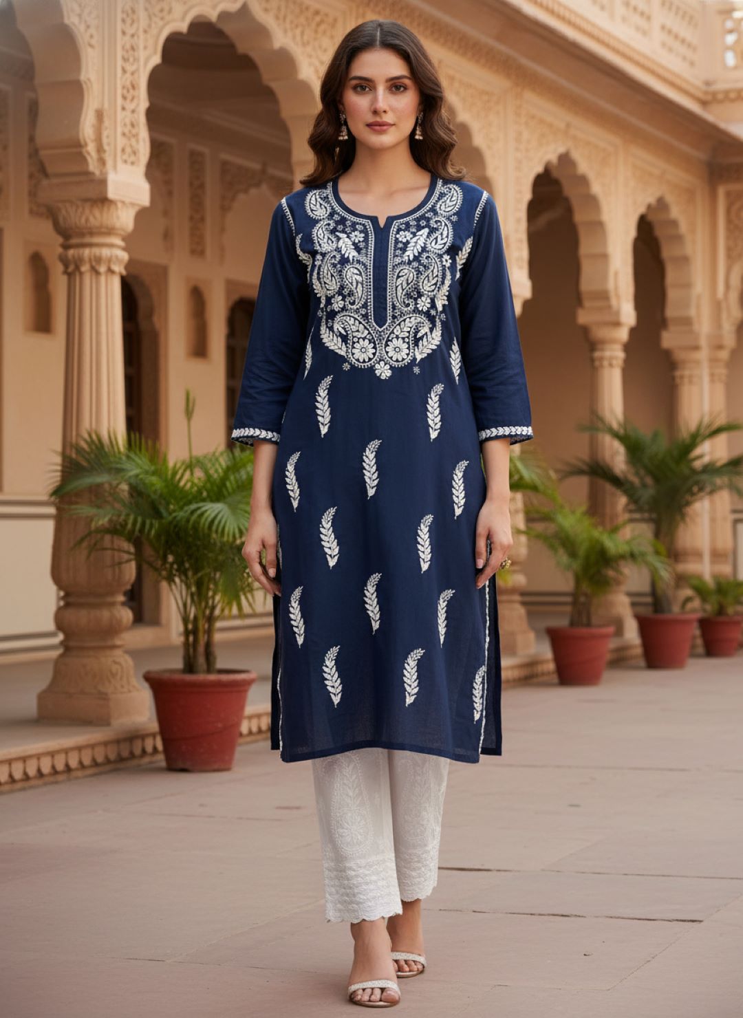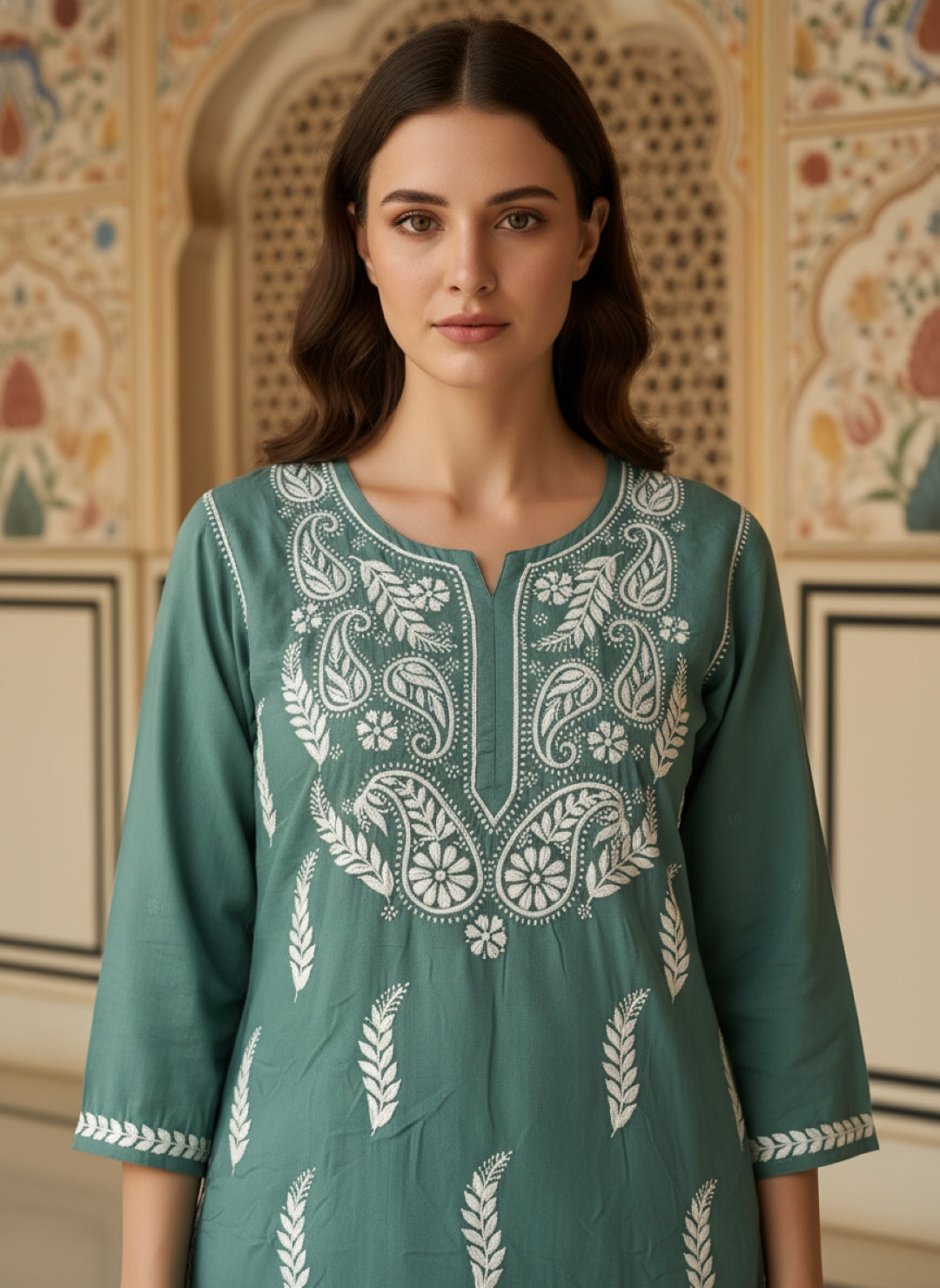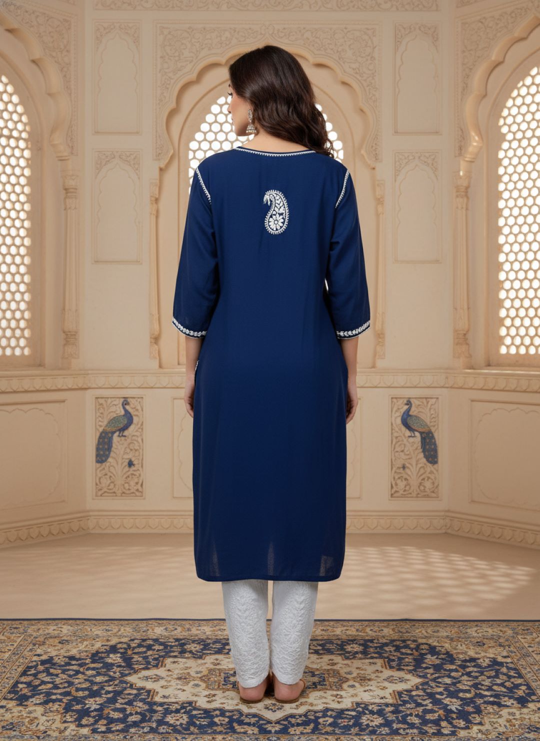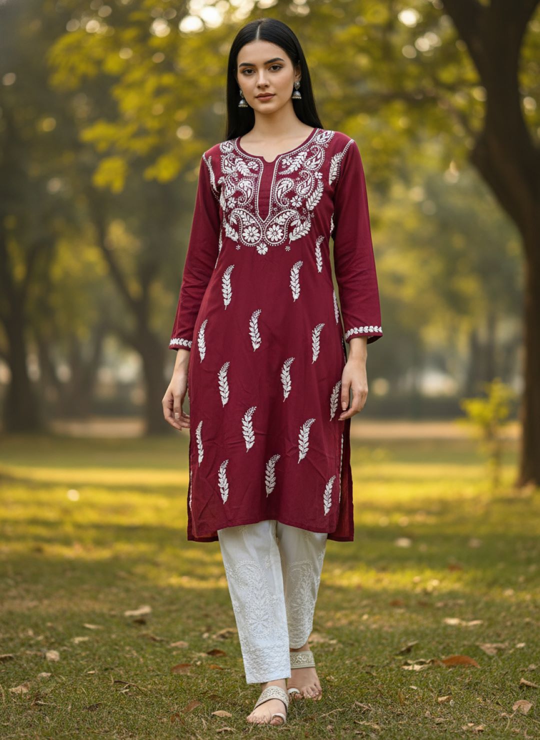 Women’s Lucknowi Chikankari Plus-Fit Modal Straight Kurta