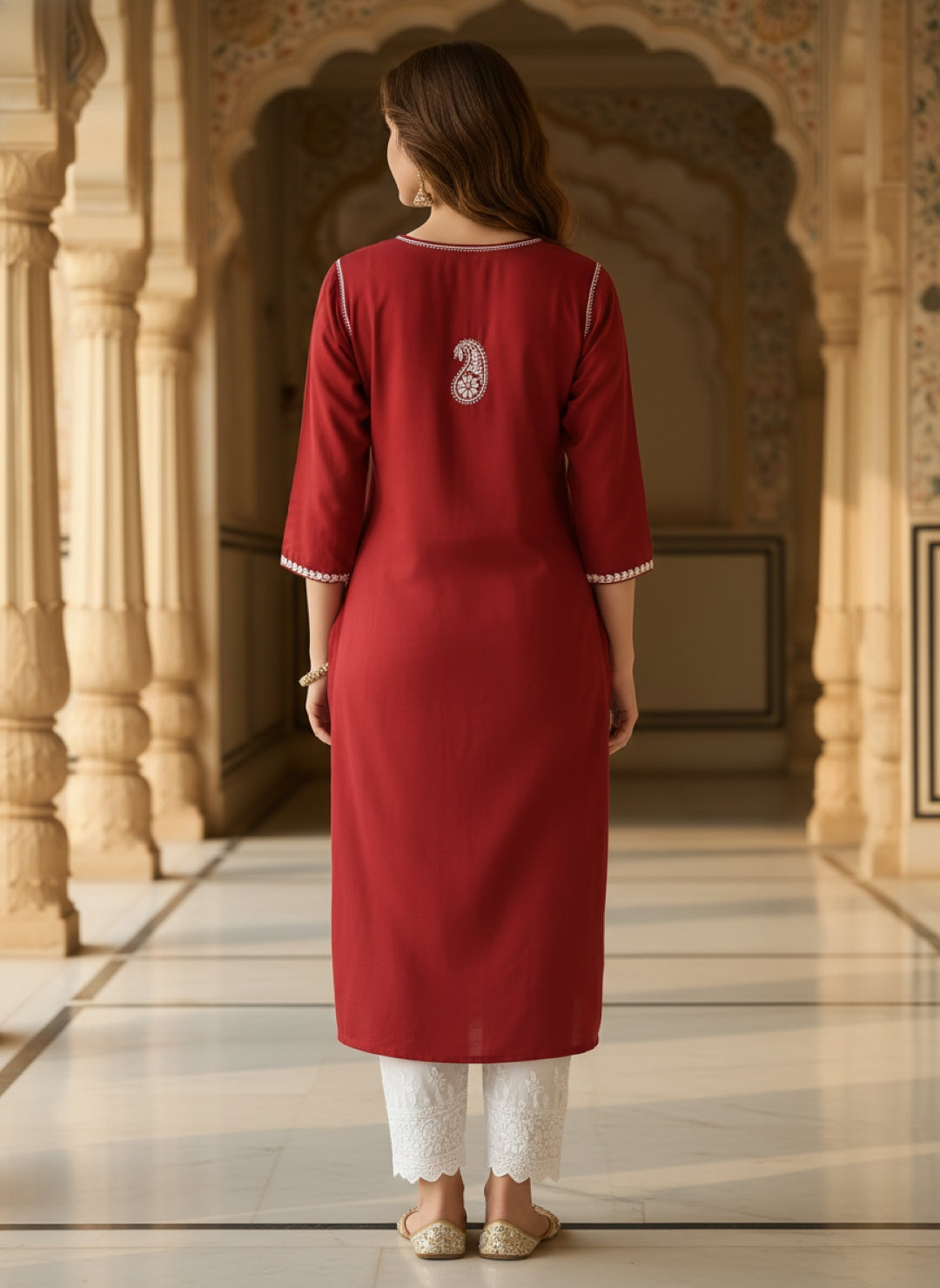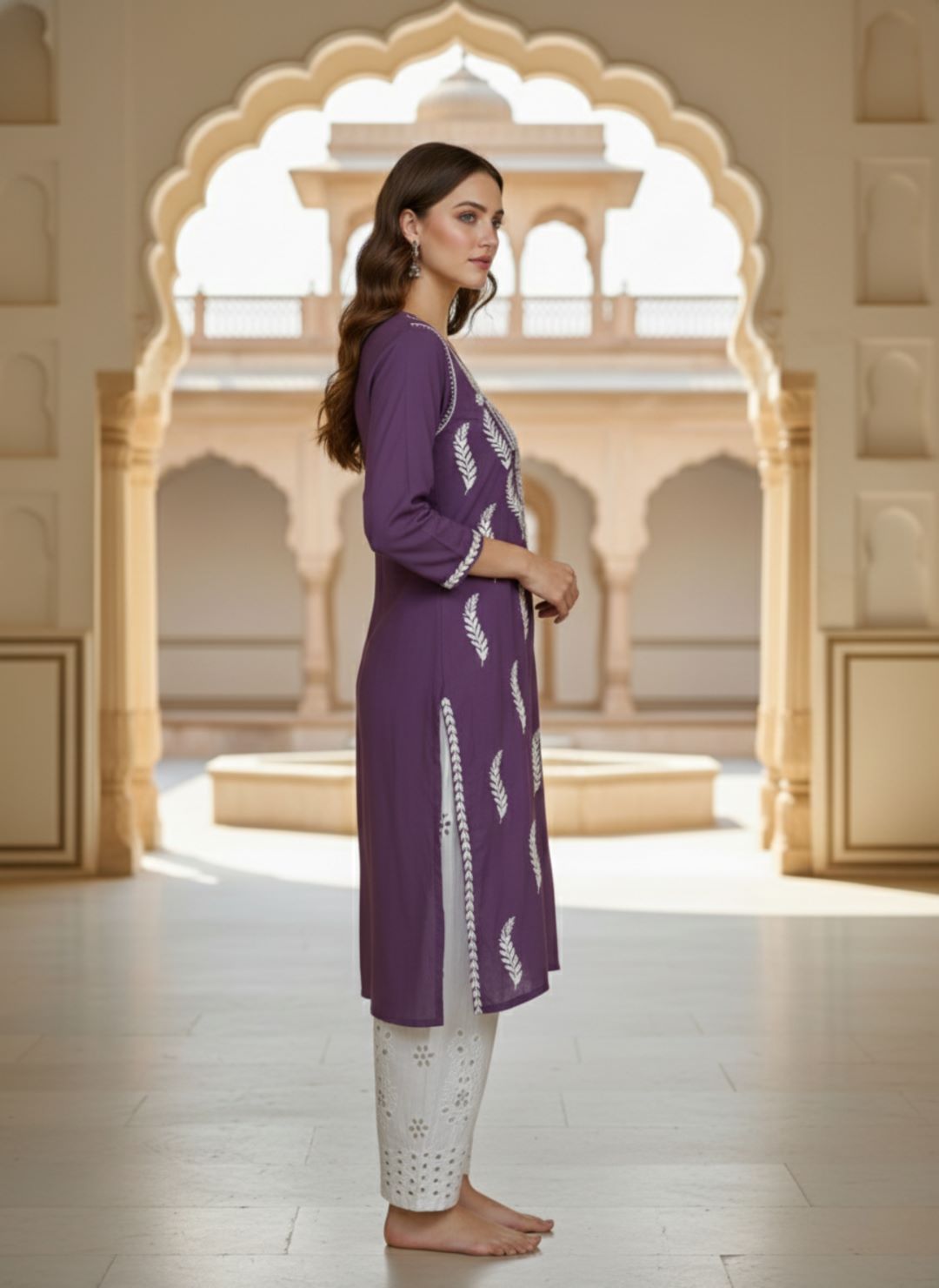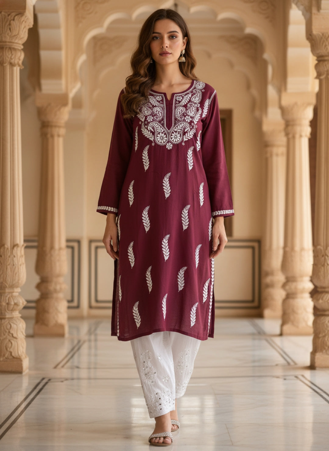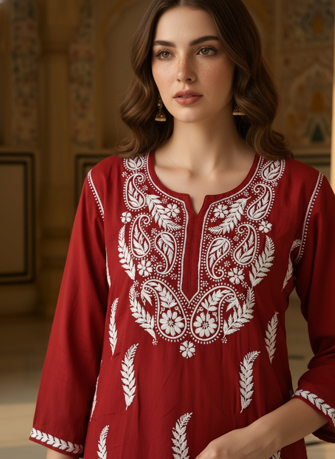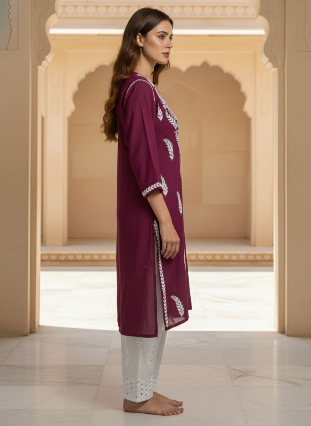 Women’s Lucknowi Chikankari Plus-Fit Modal Straight Kurta