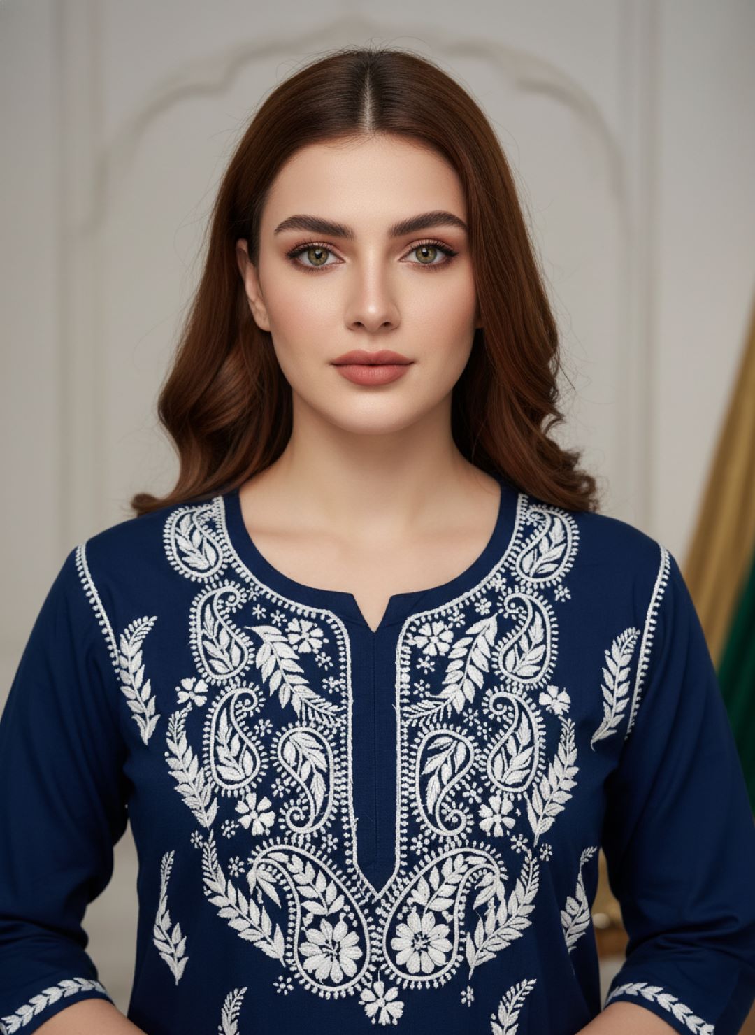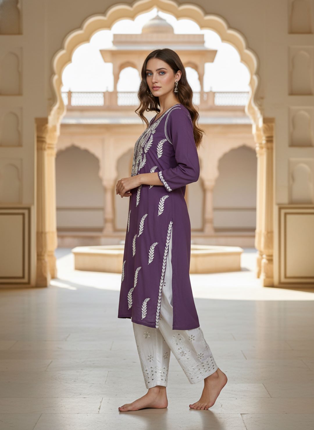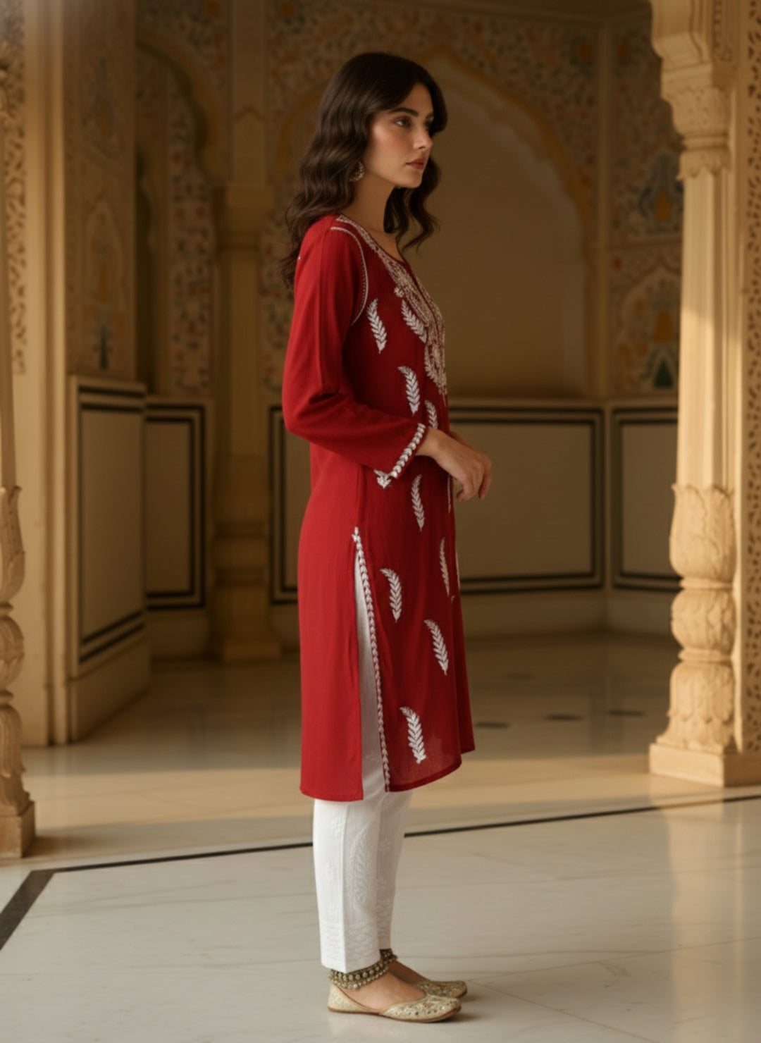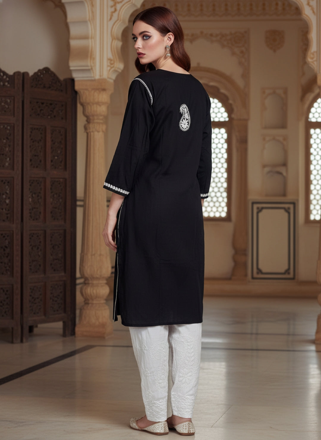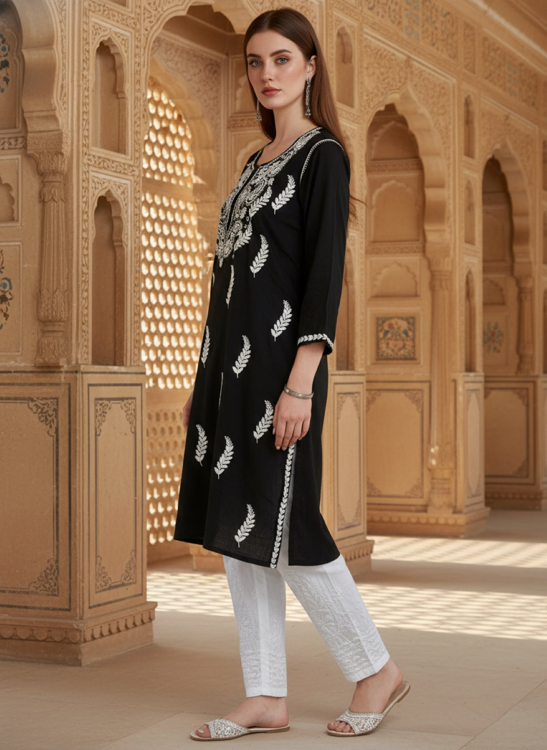 Women’s Lucknowi Chikankari Plus-Fit Modal Straight Kurta
