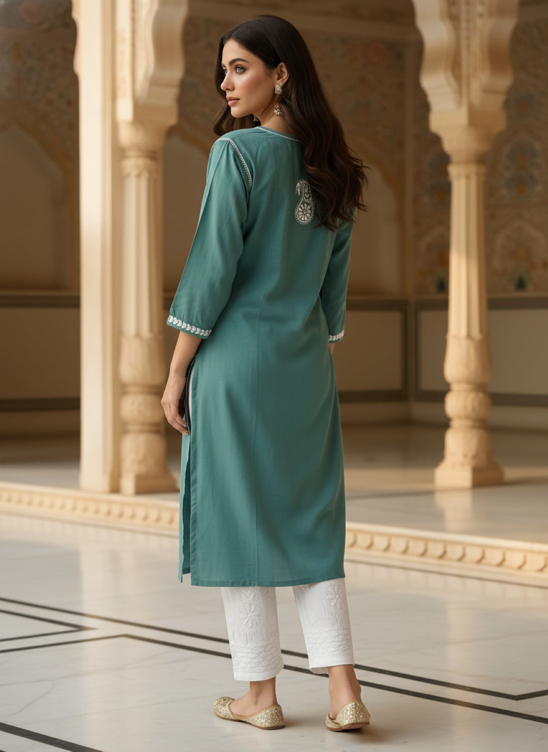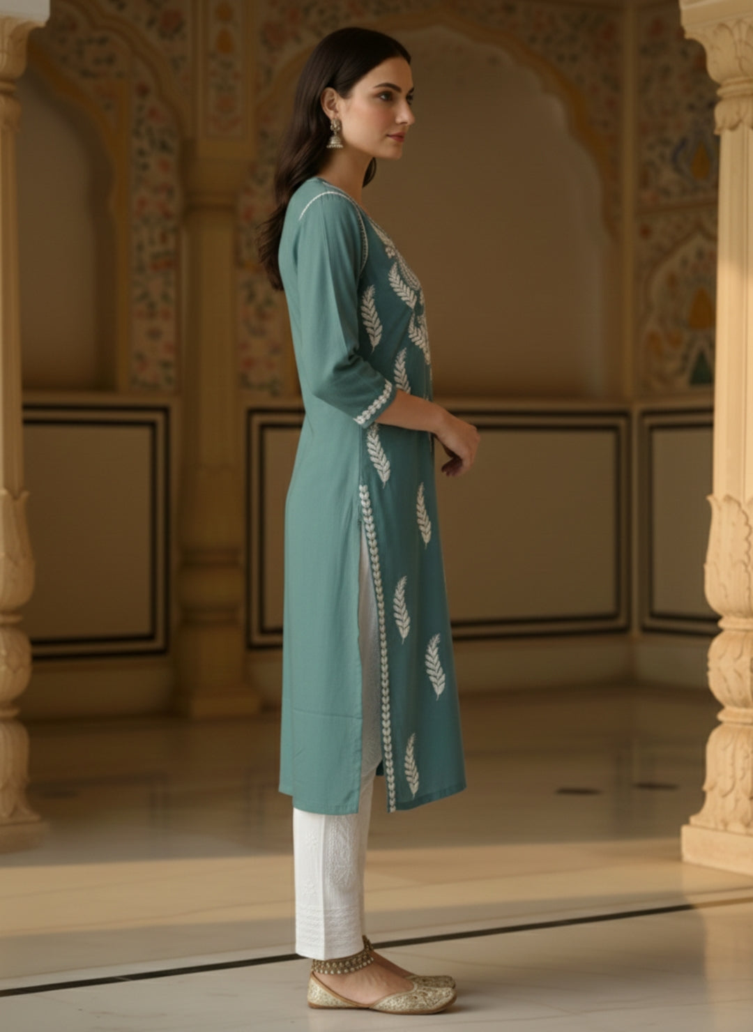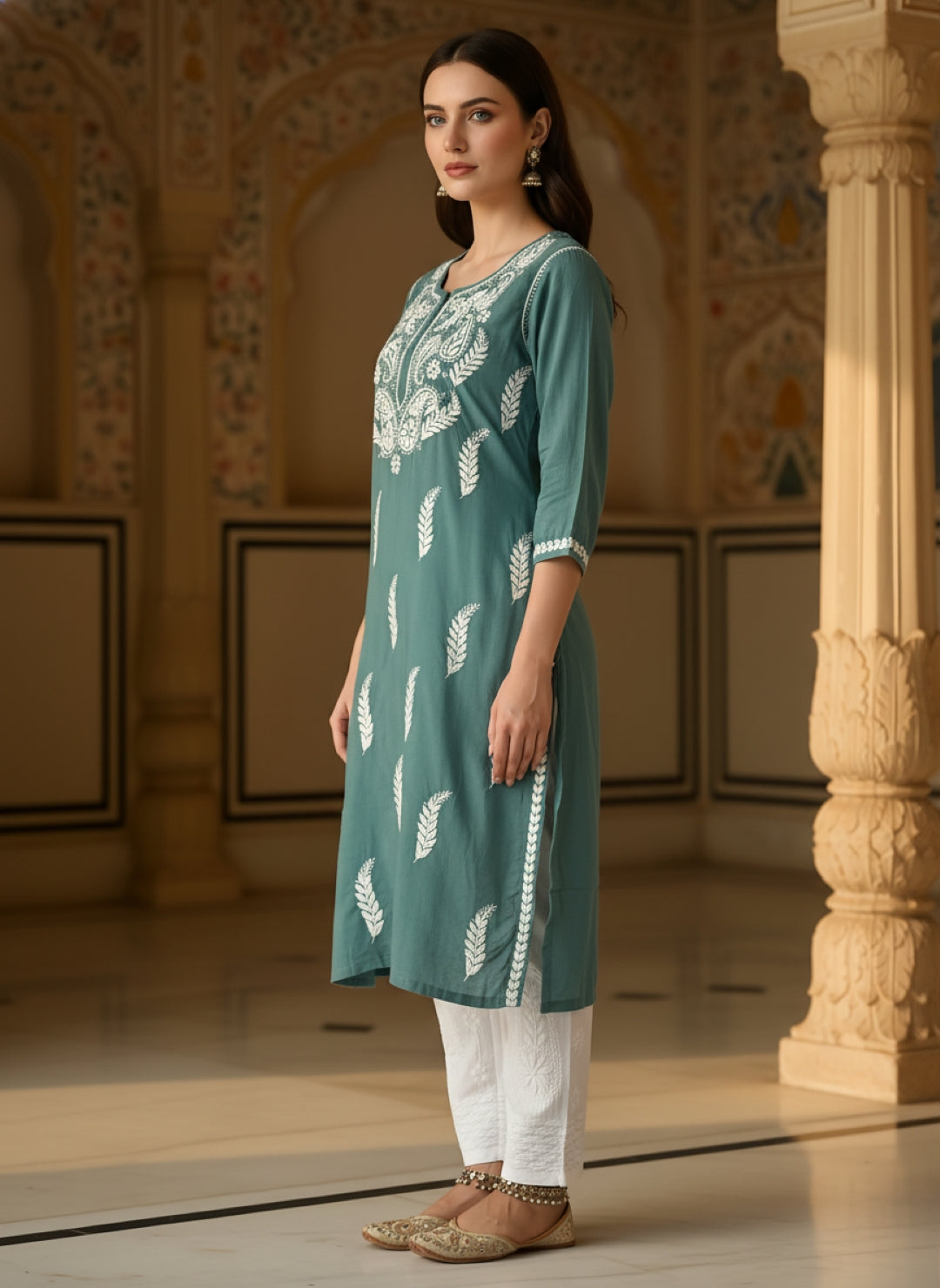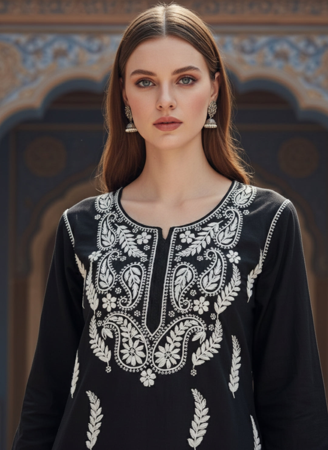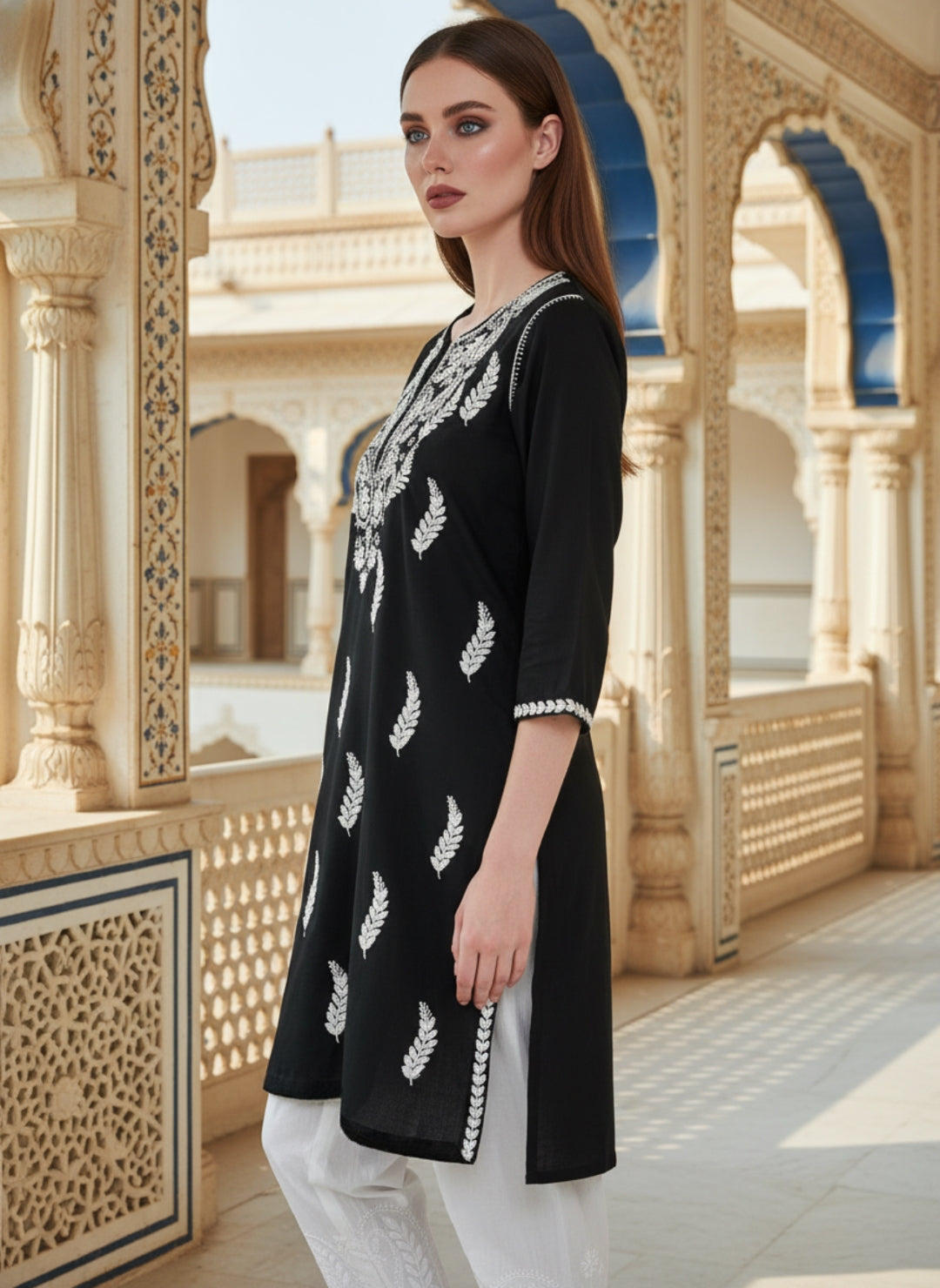 Women’s Lucknowi Chikankari Plus-Fit Modal Straight Kurta