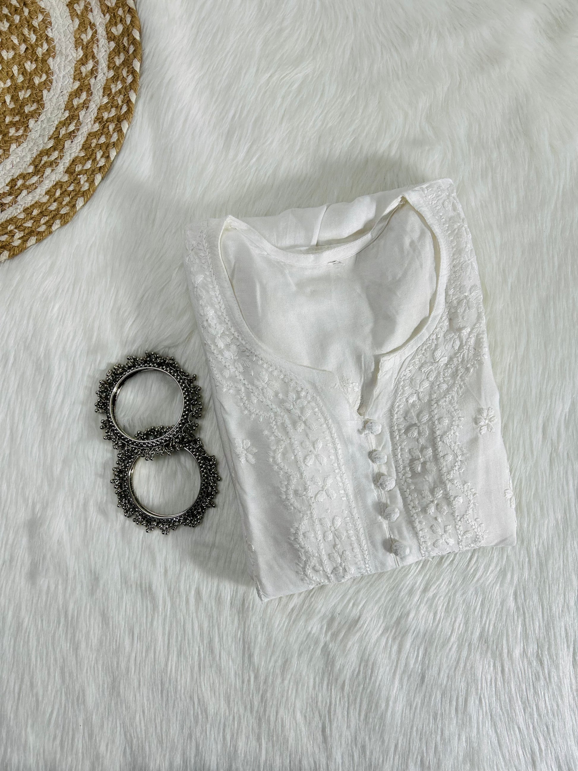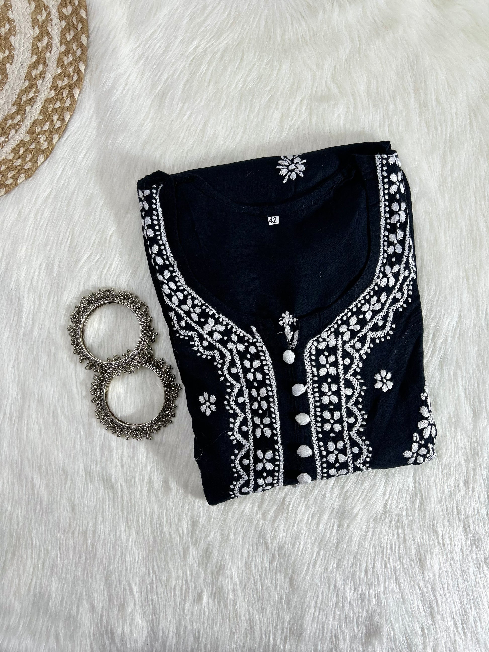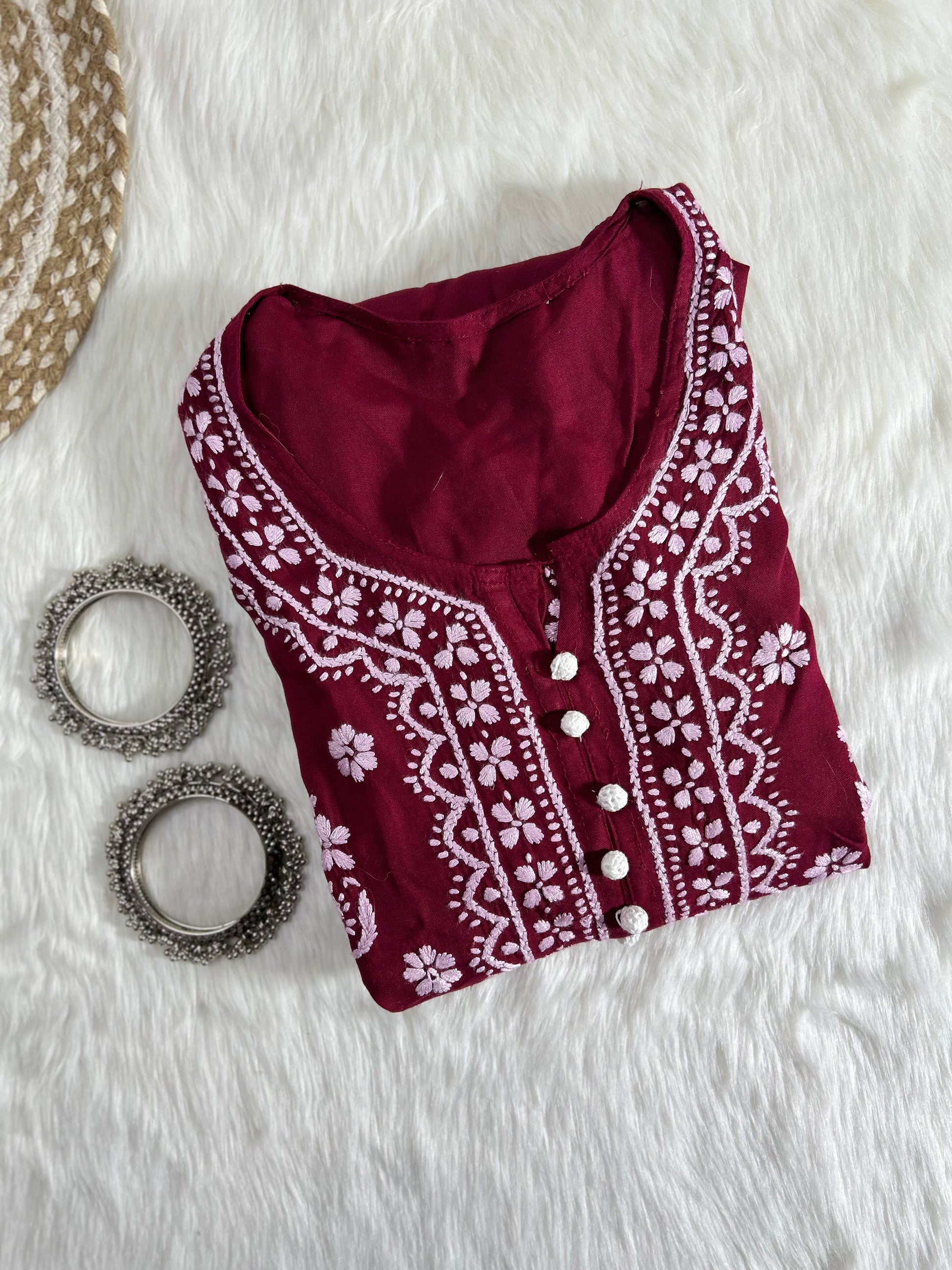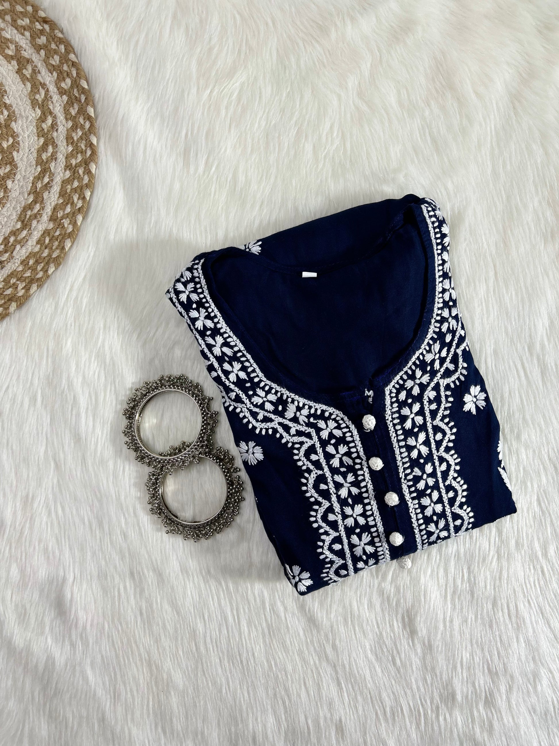 Chikankari Long Gown On Rayon Fabric With Both Side Pockets