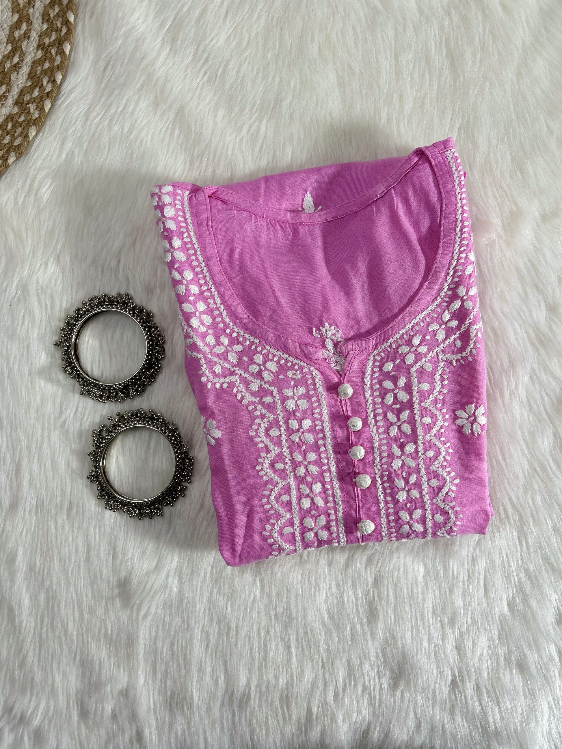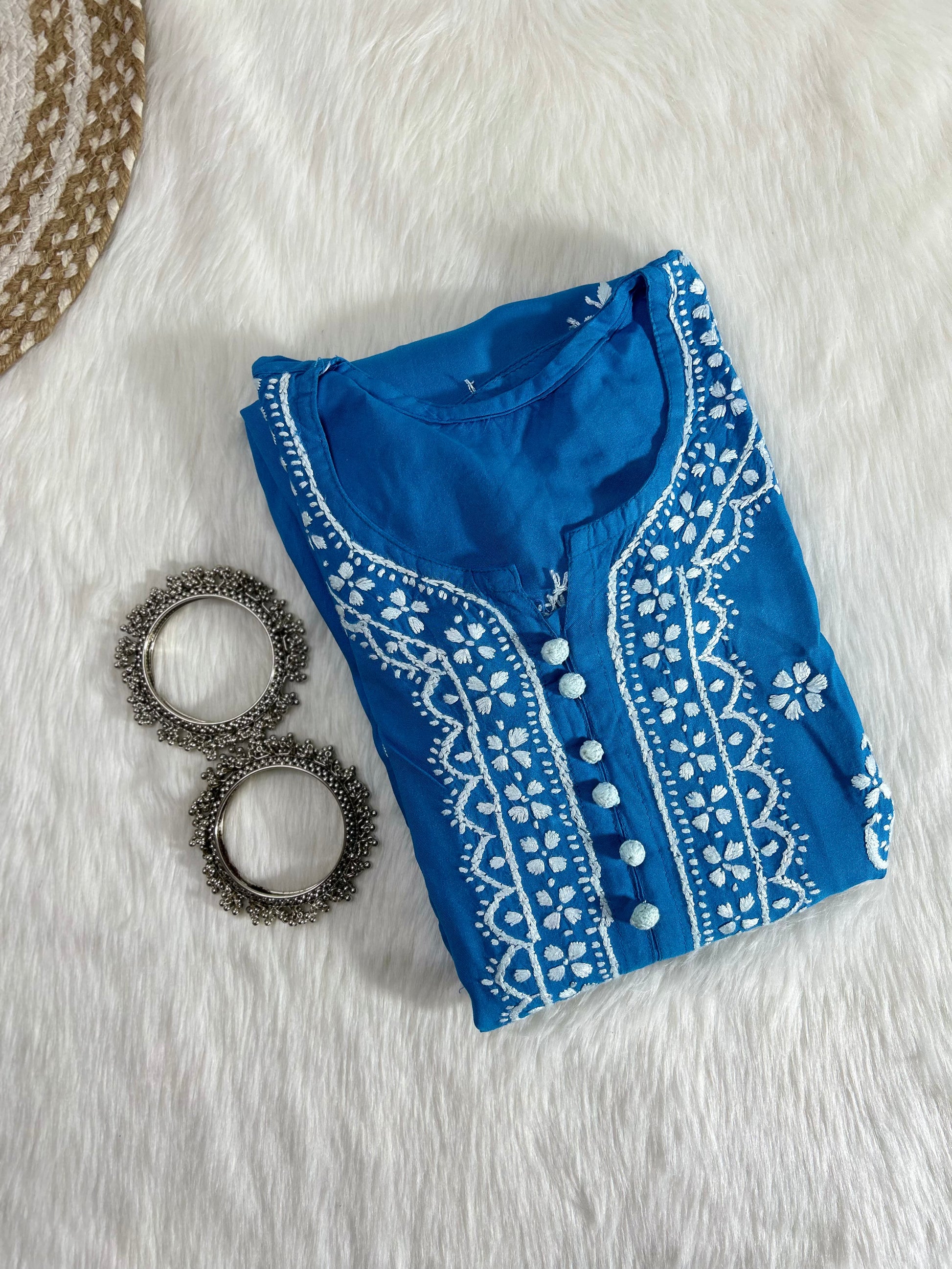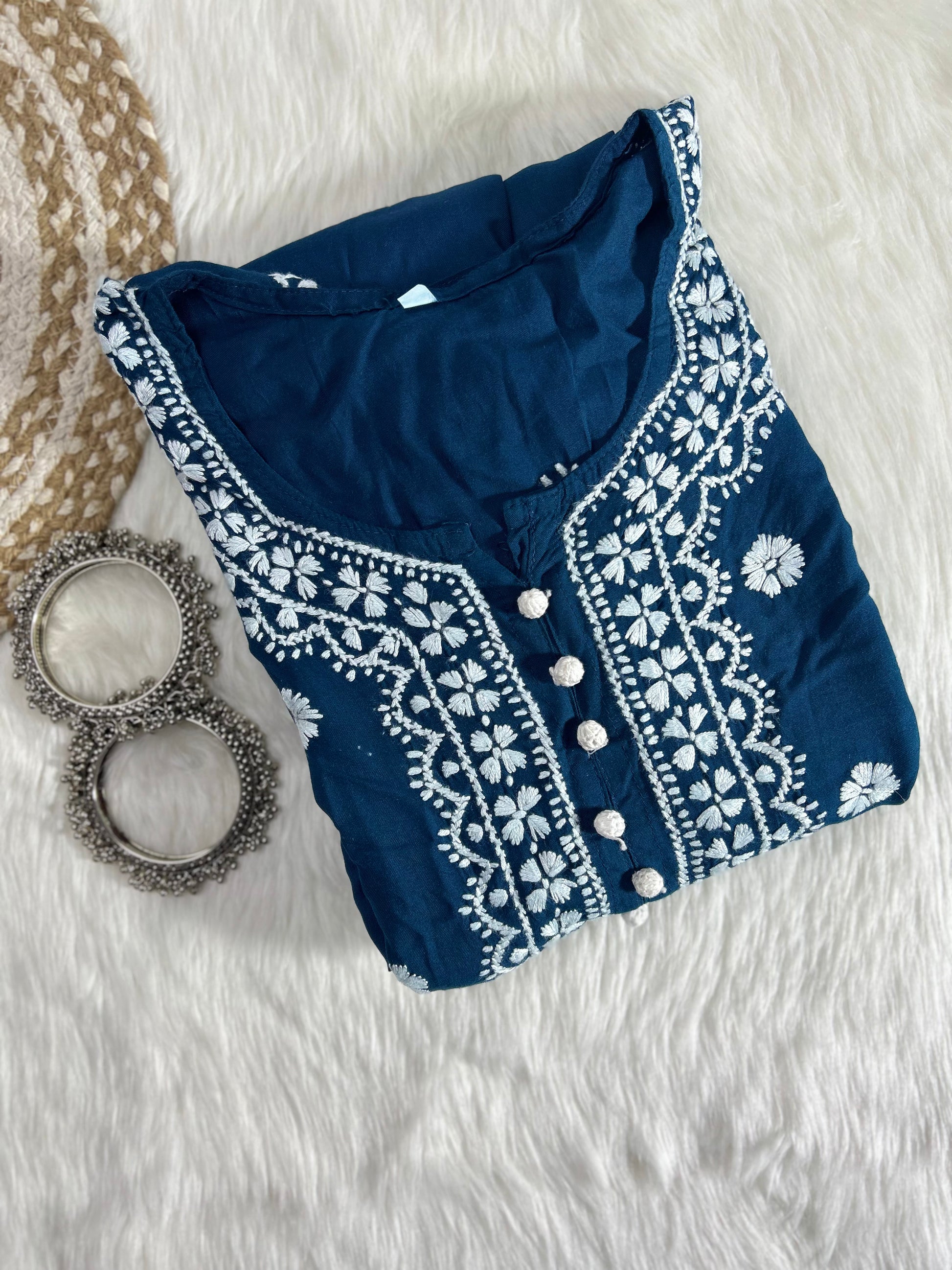 Chikankari Long Gown On Rayon Fabric With Both Side Pockets