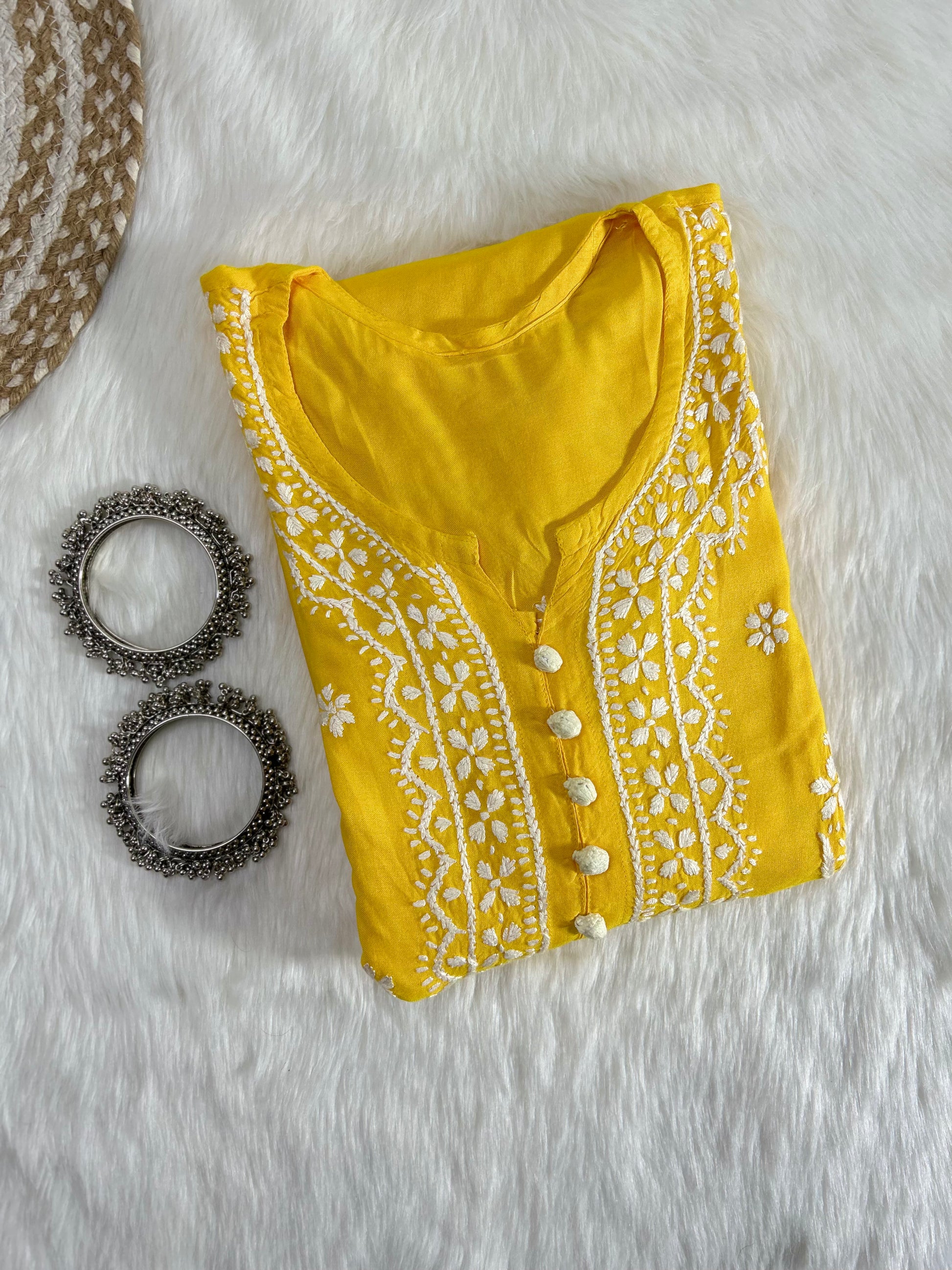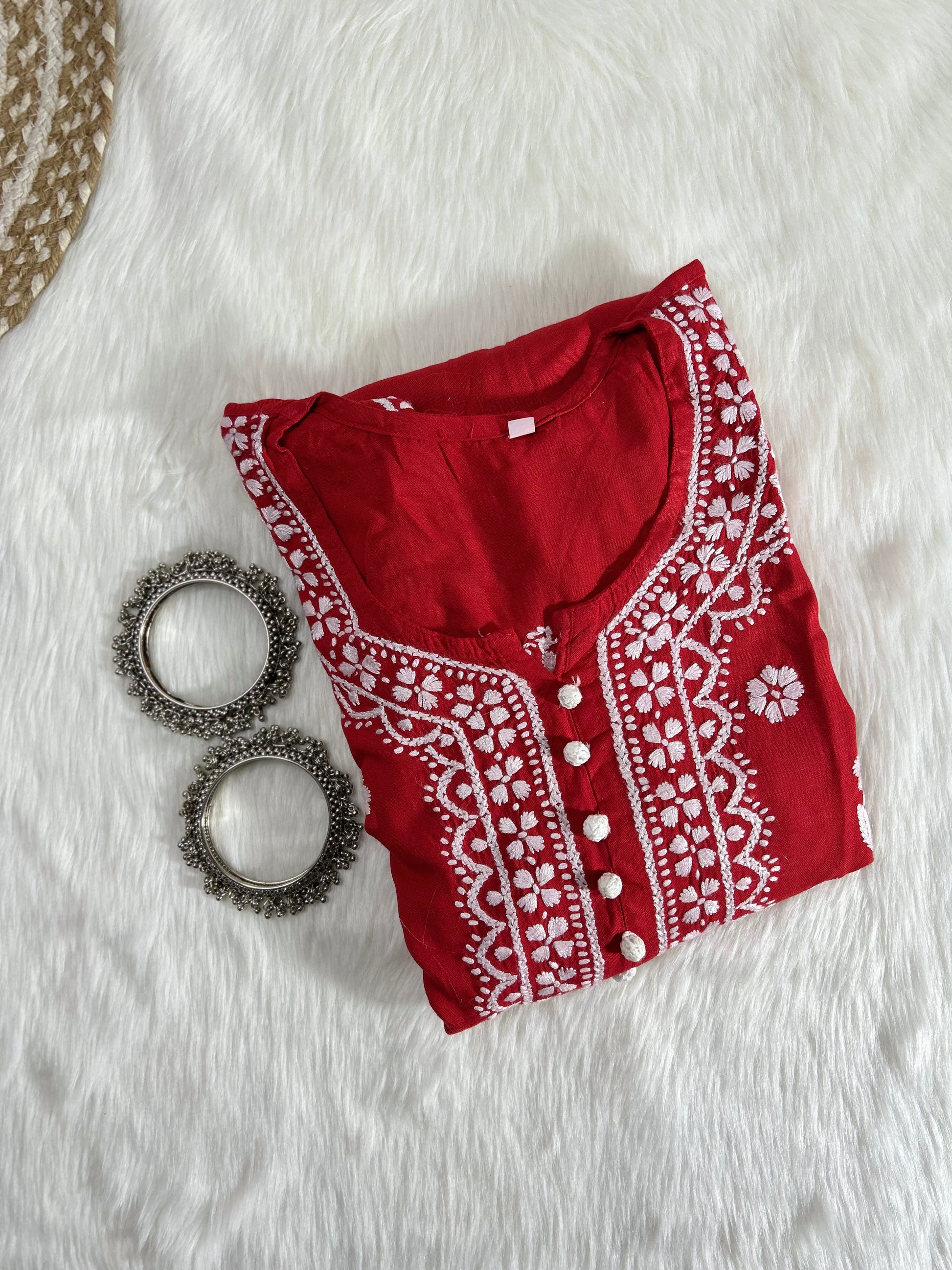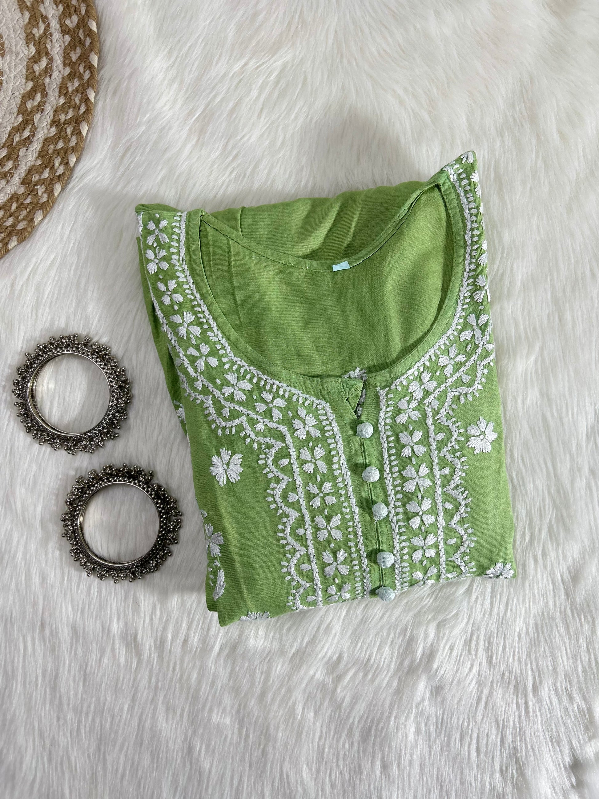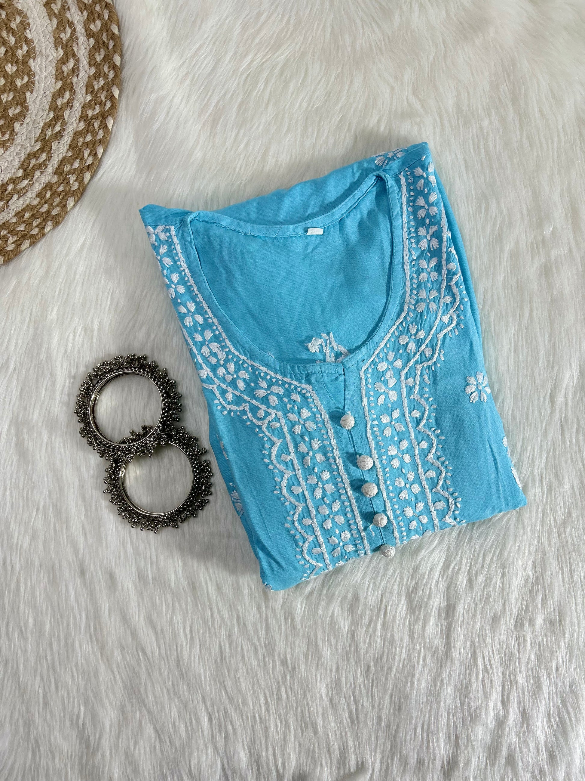 Chikankari Long Gown On Rayon Fabric With Both Side Pockets