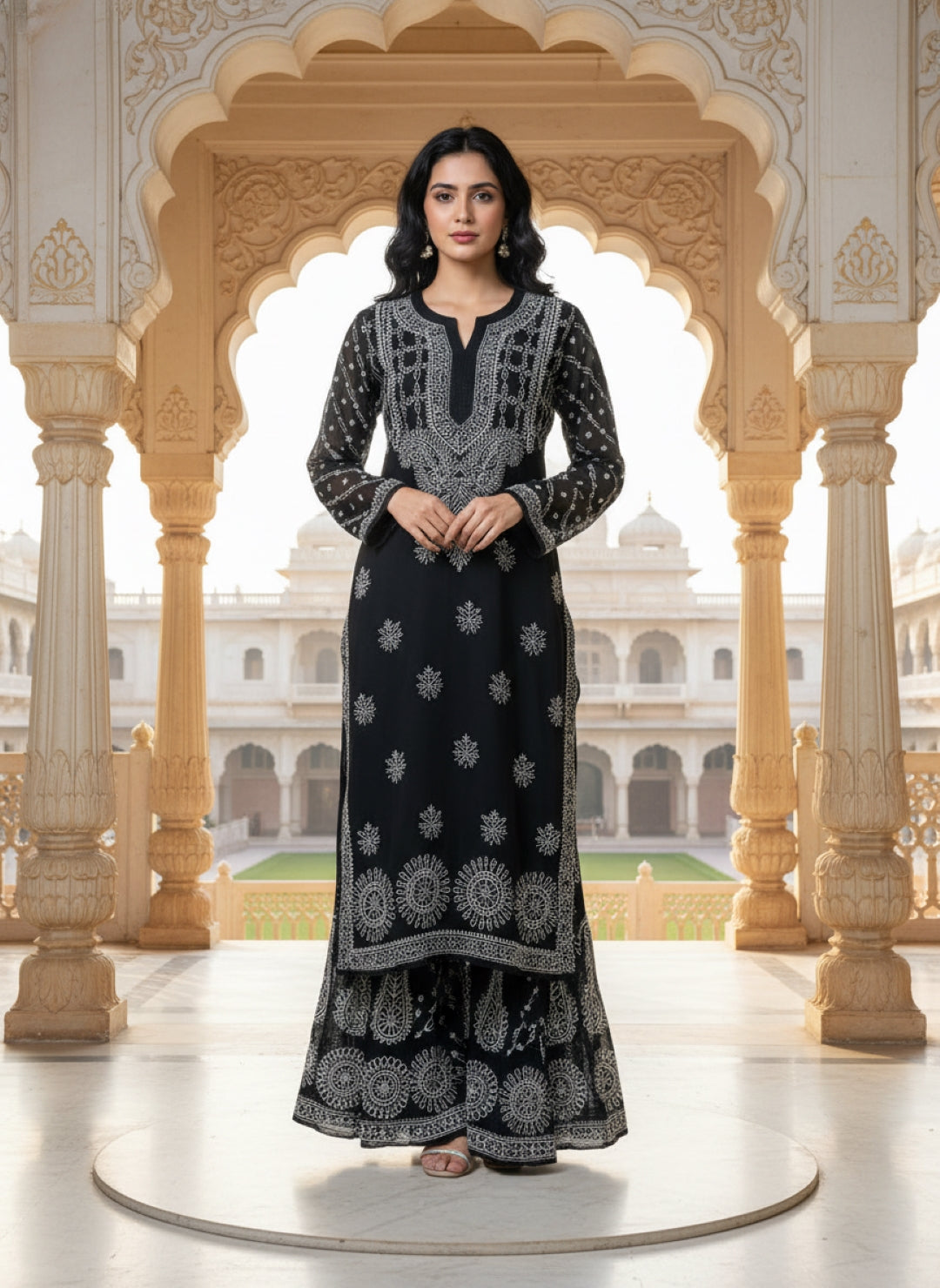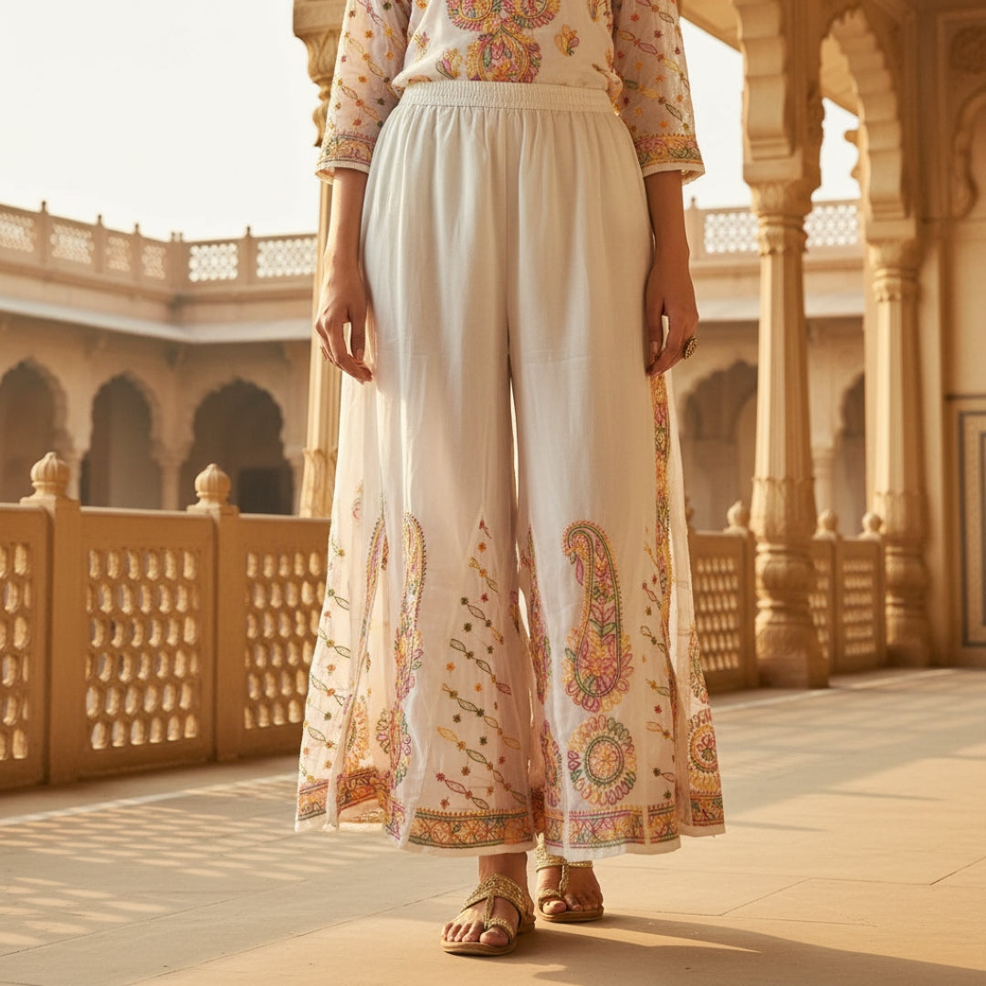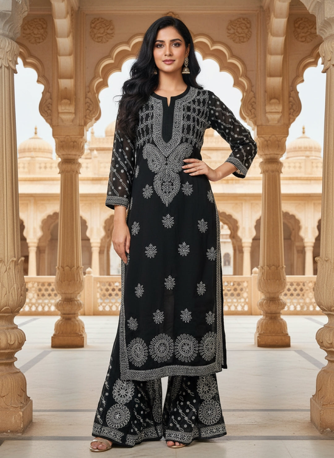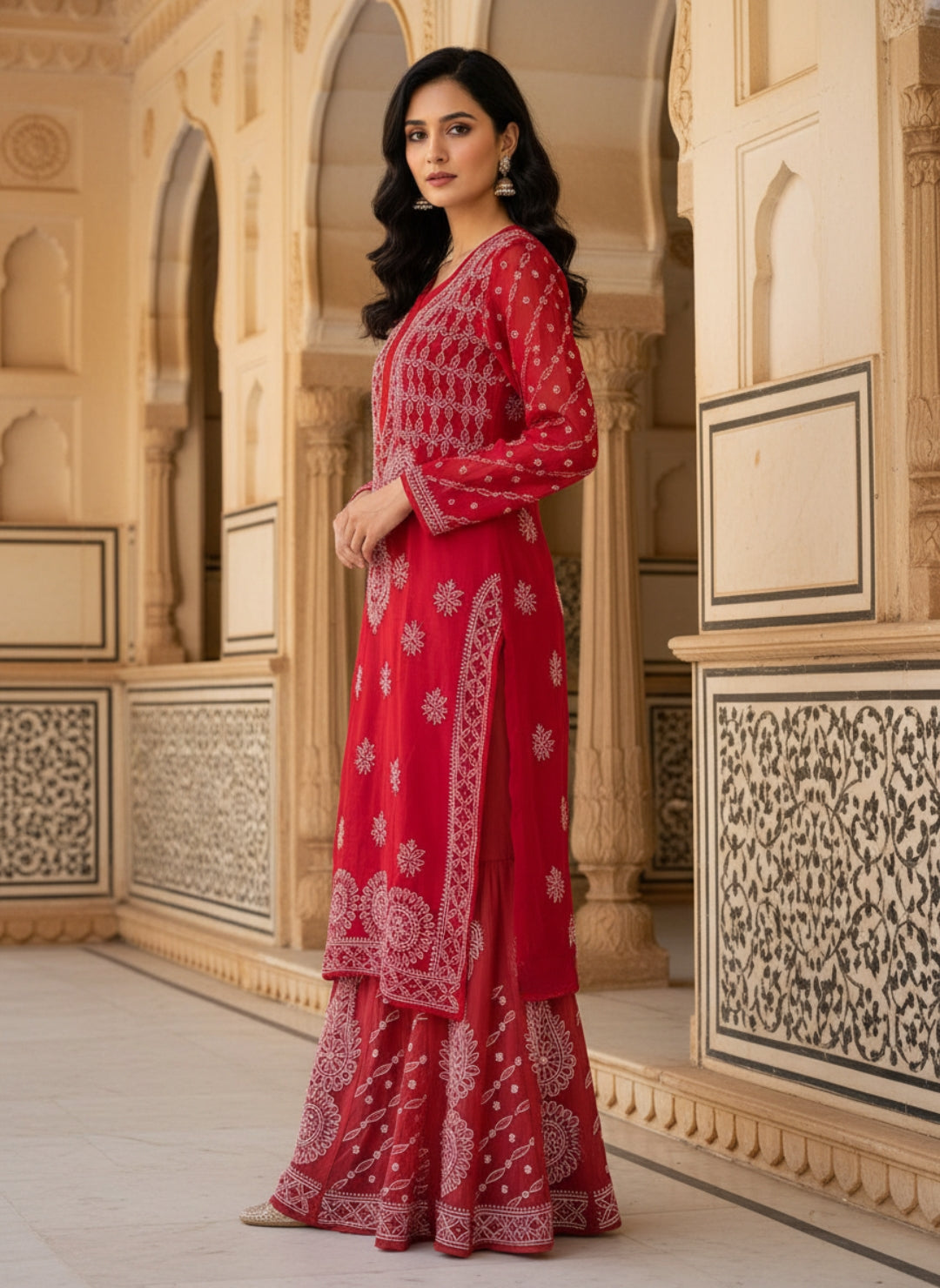 Hand Embroidered Chikankari Kurta Palazzo Set (Georgette, with Inner)