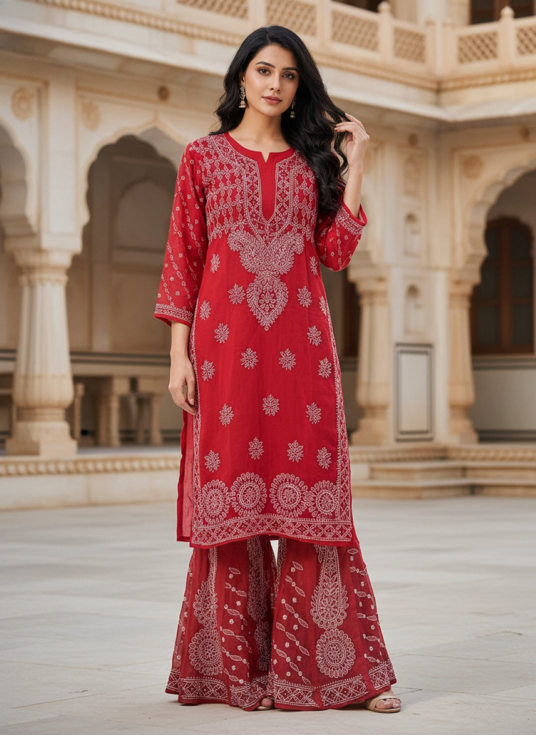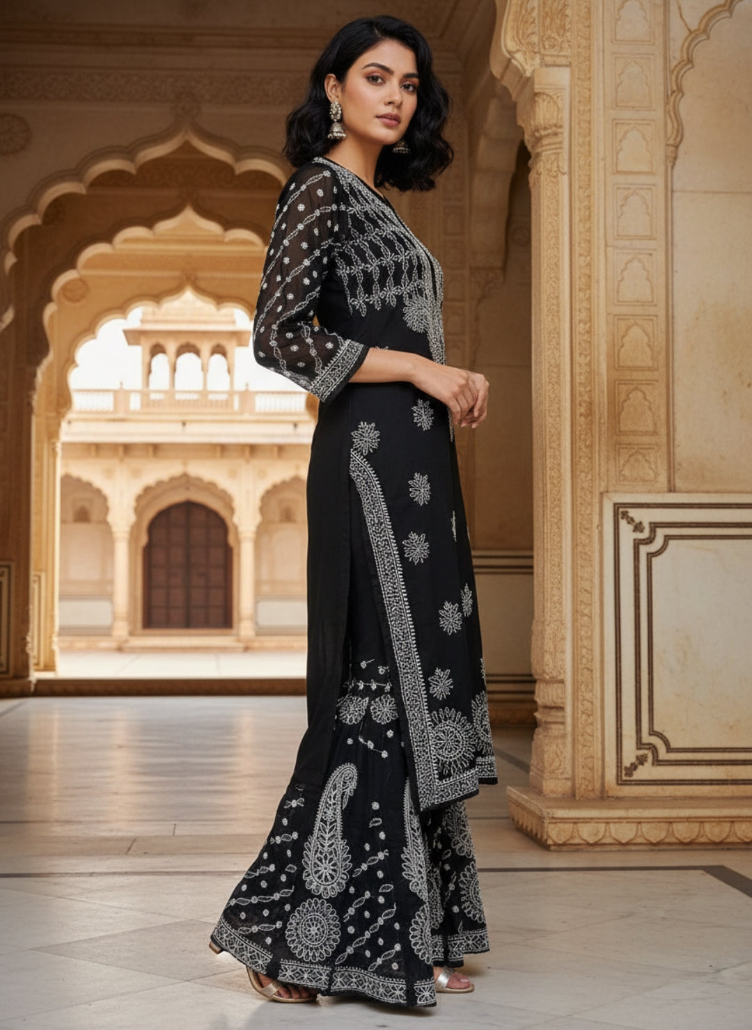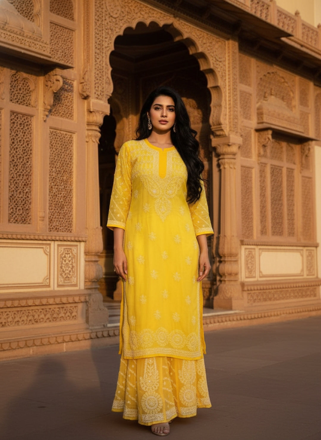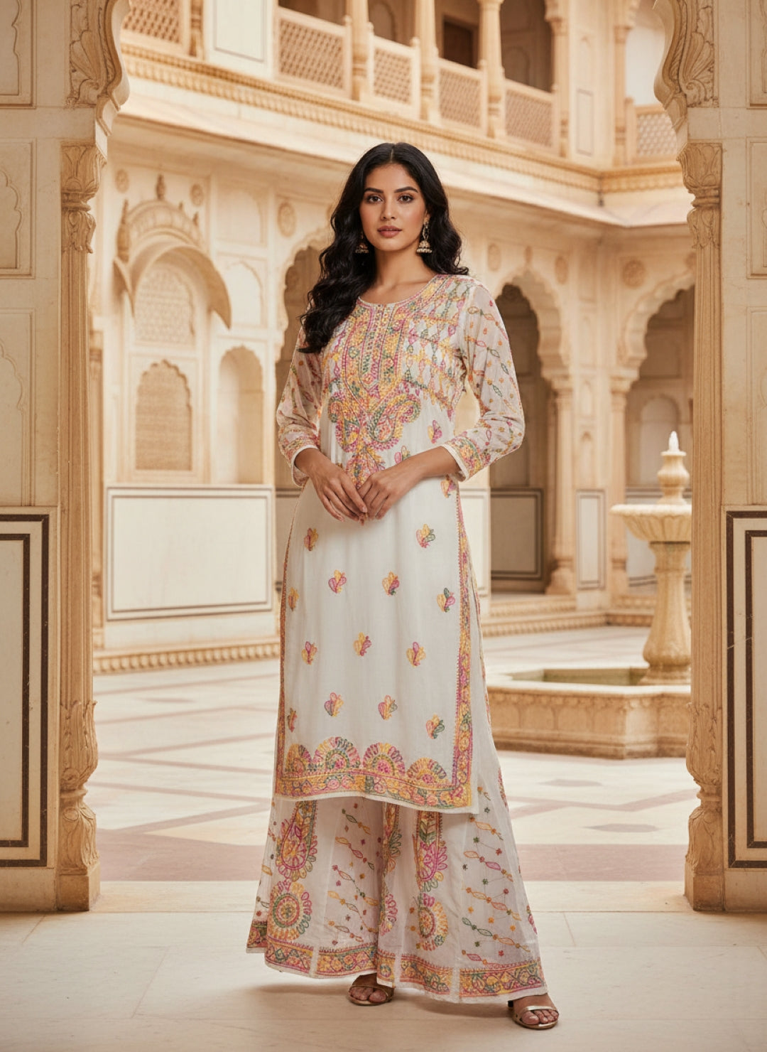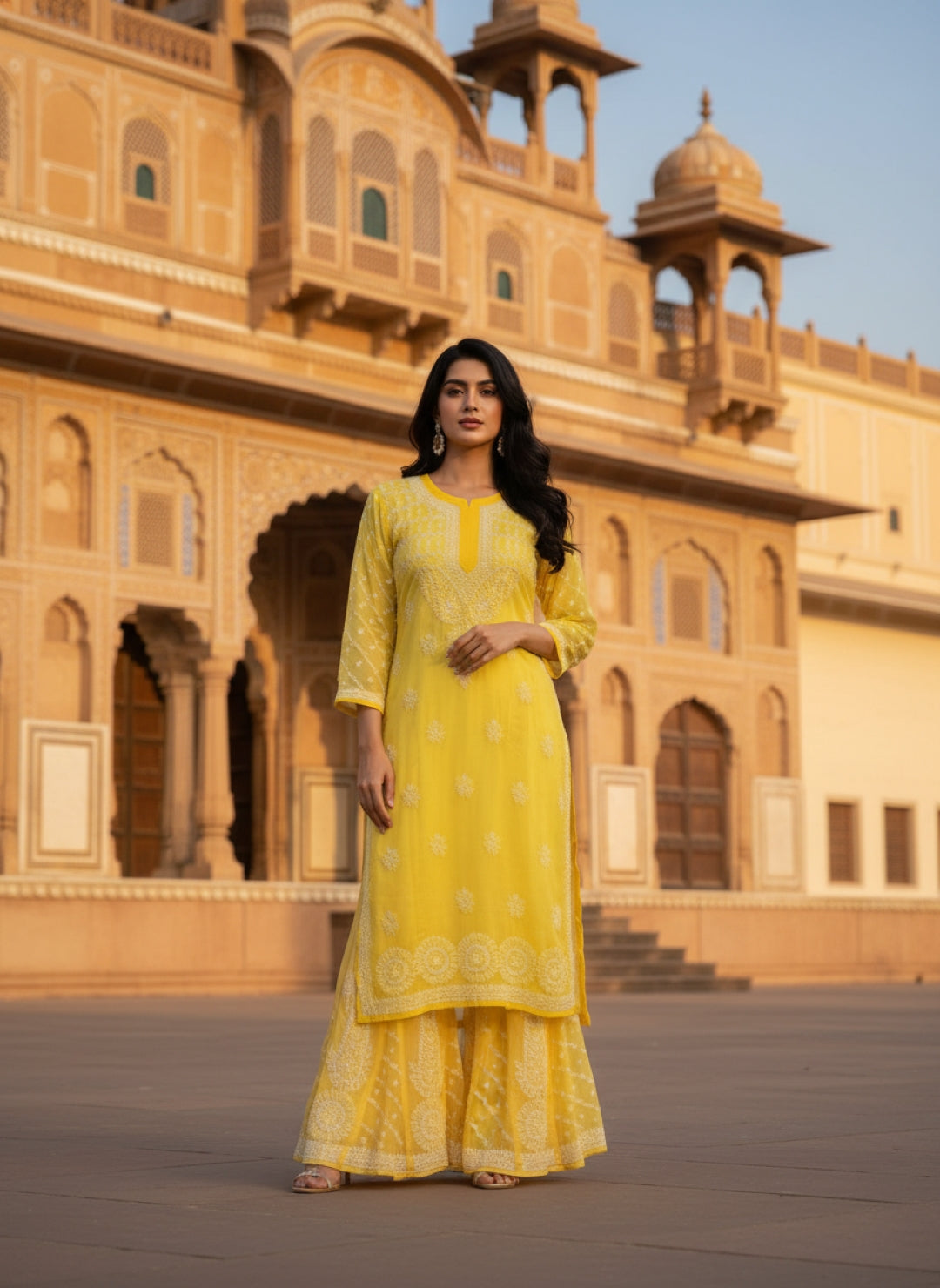Hand Embroidered Chikankari Kurta Palazzo Set (Georgette, with Inner)