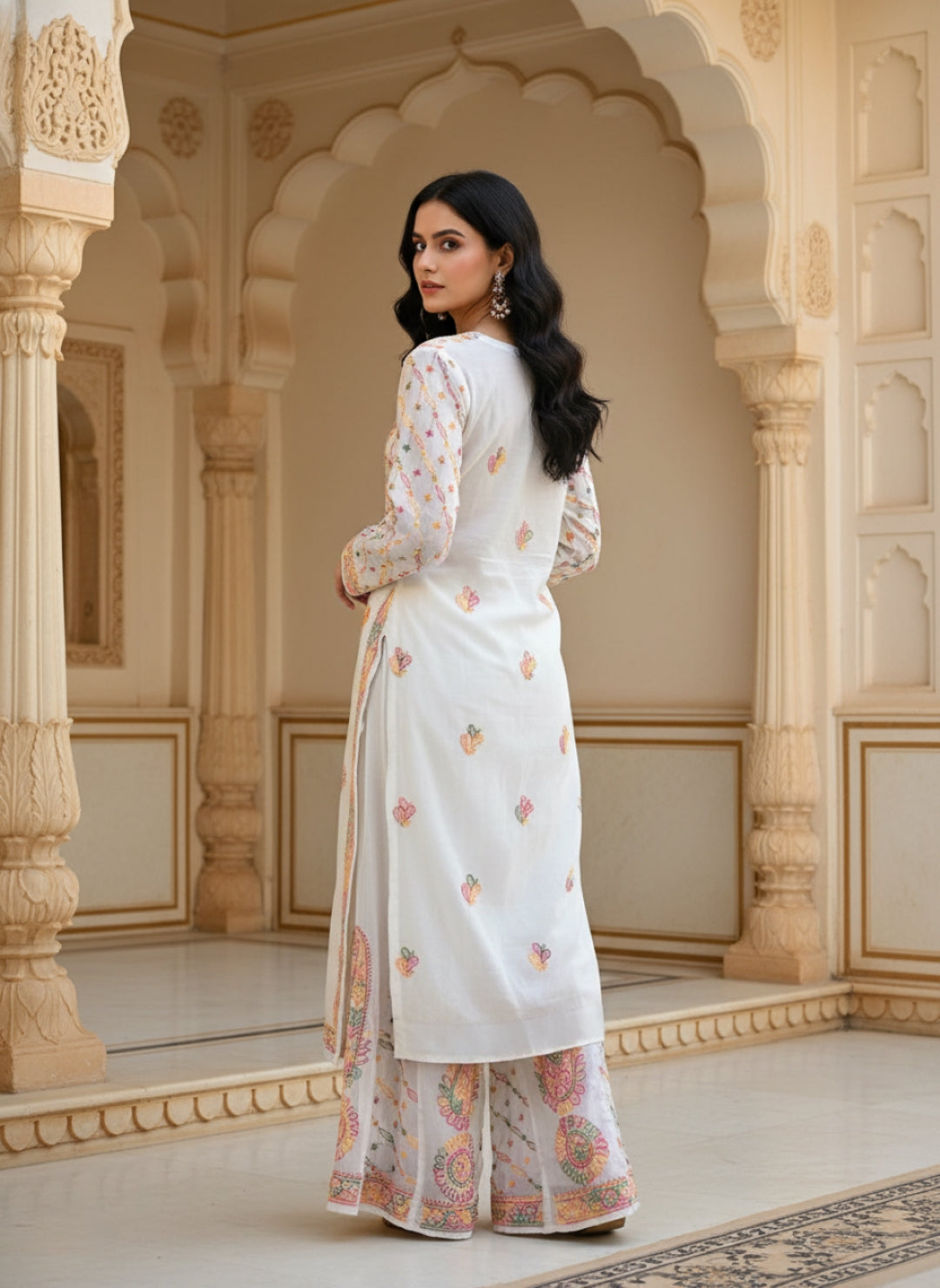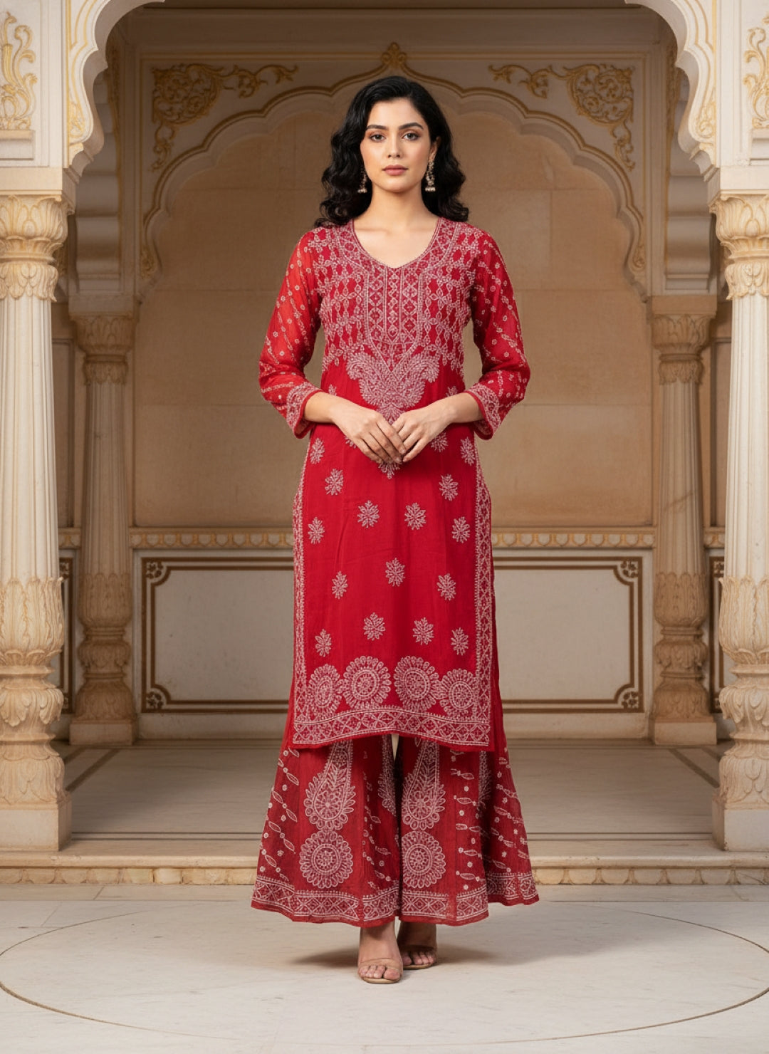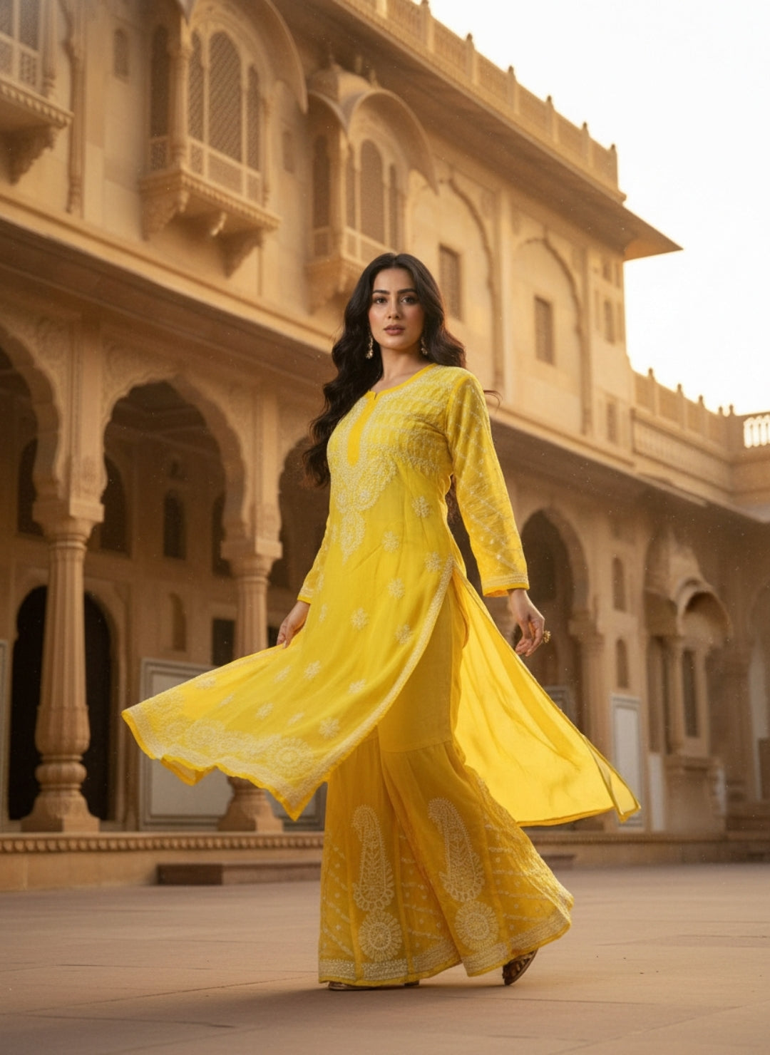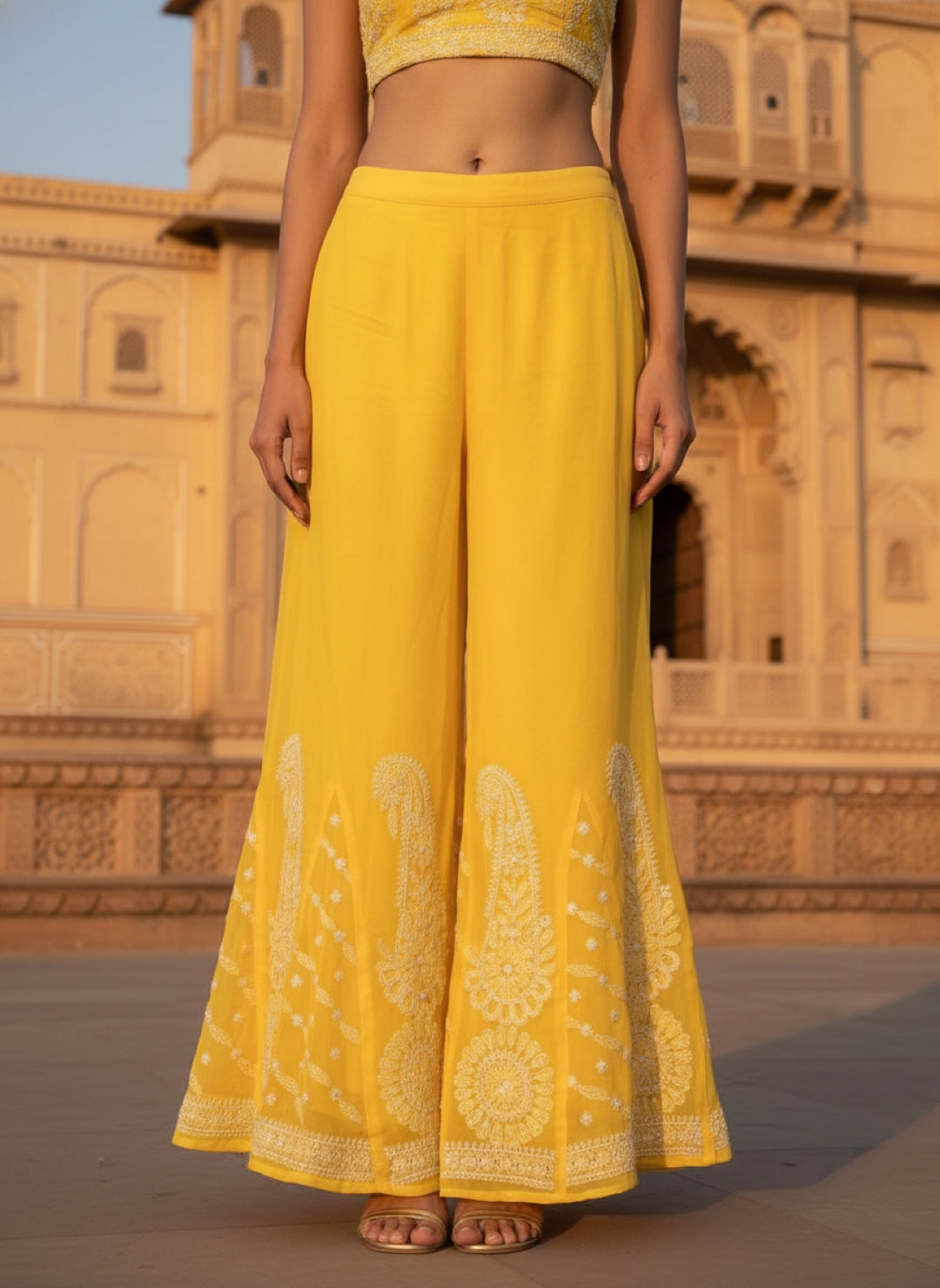 Hand Embroidered Chikankari Kurta Palazzo Set (Georgette, with Inner)