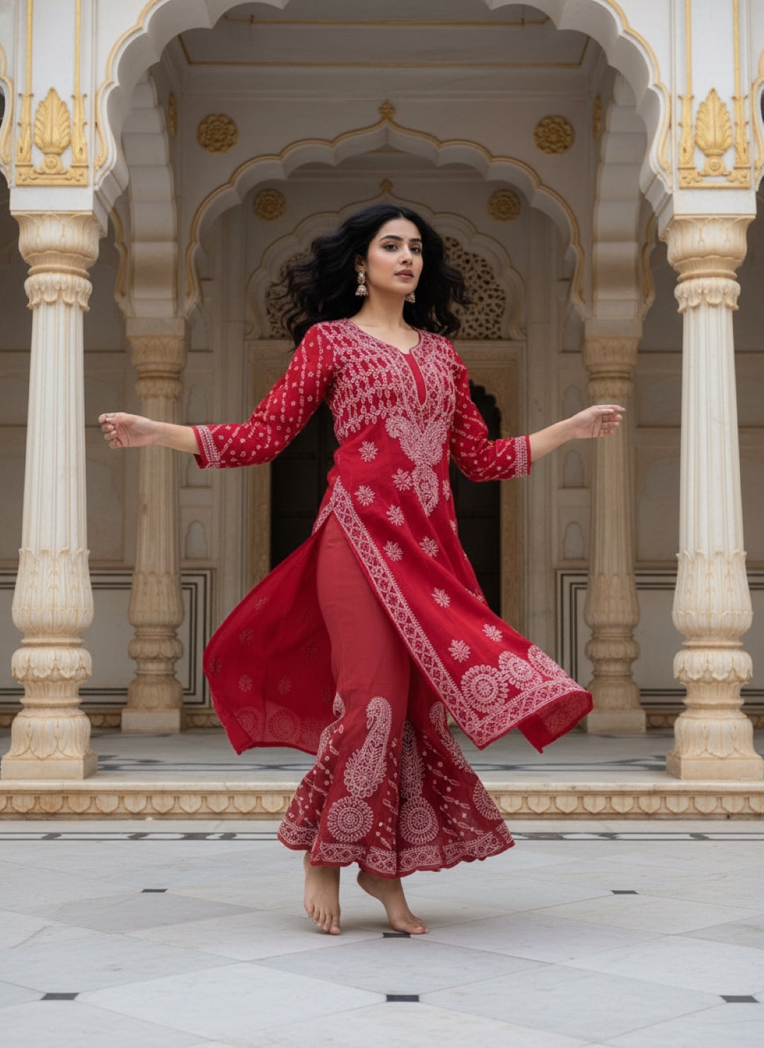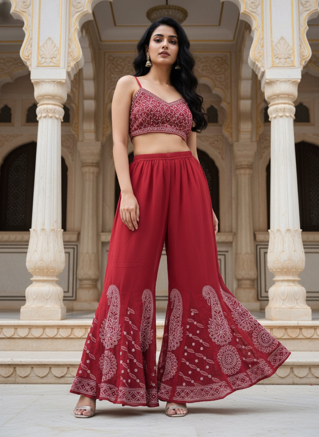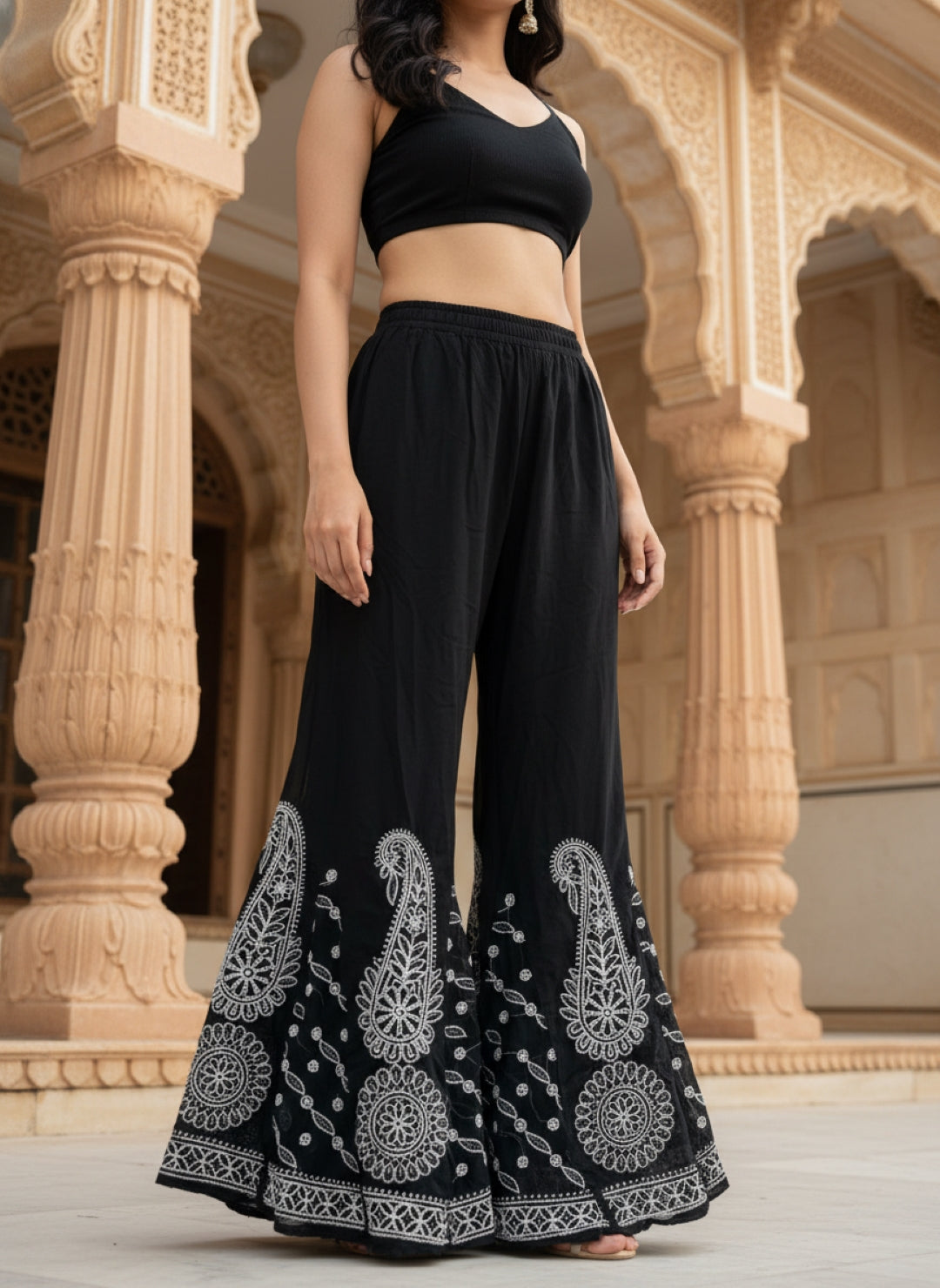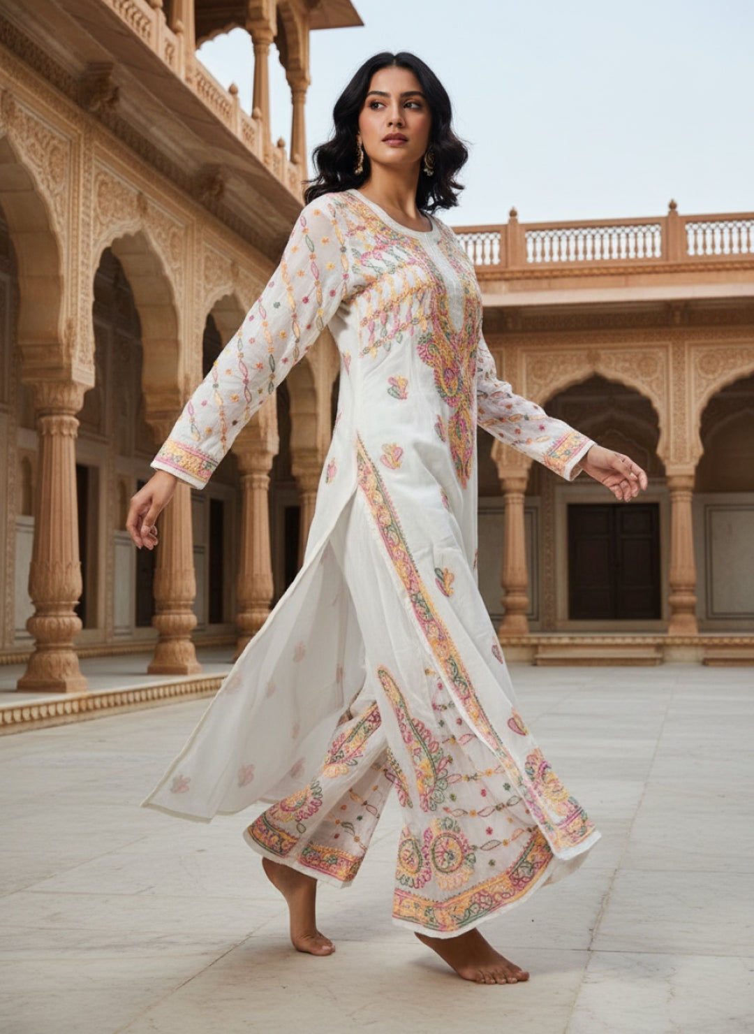 Hand Embroidered Chikankari Kurta Palazzo Set (Georgette, with Inner)