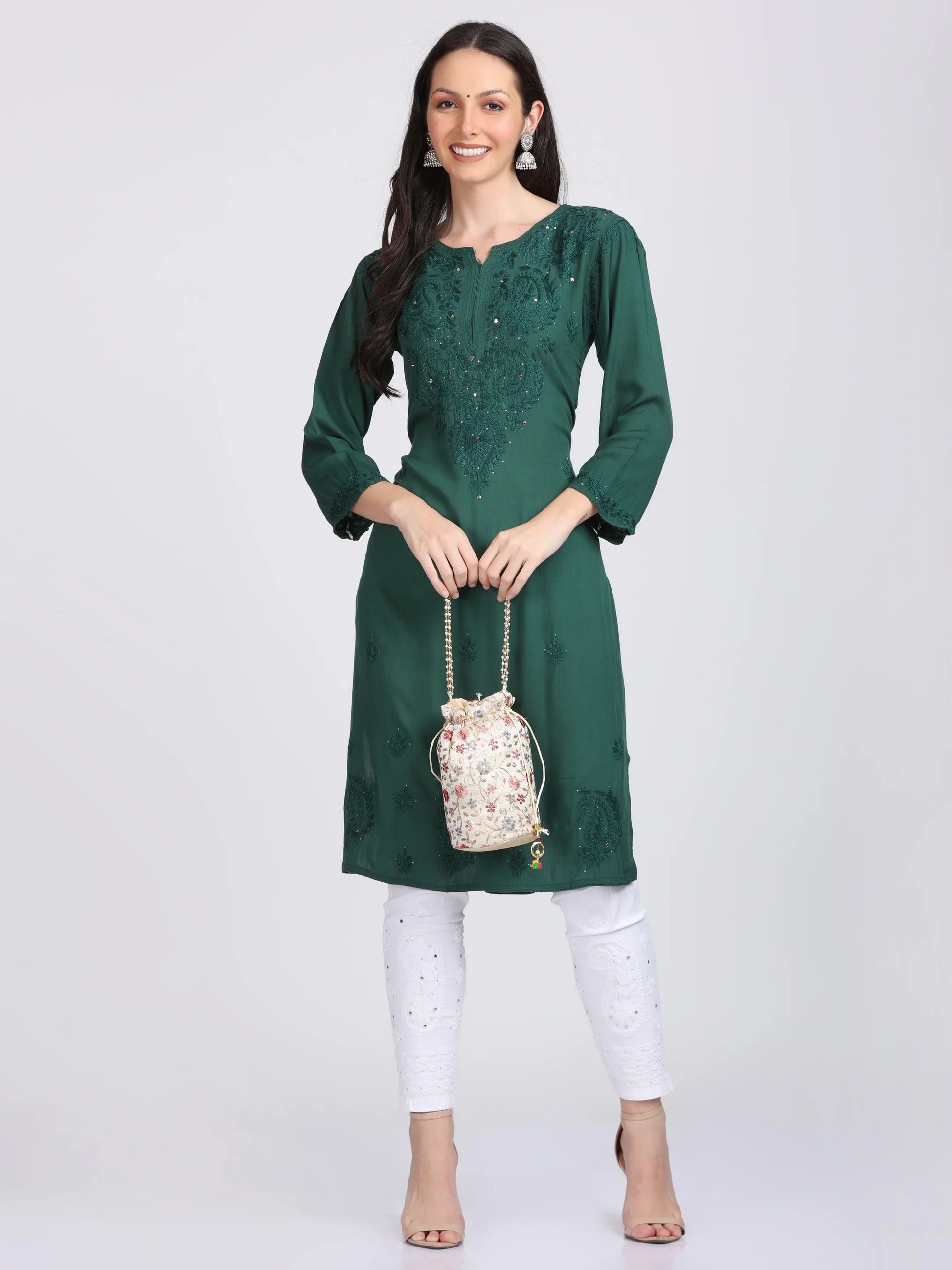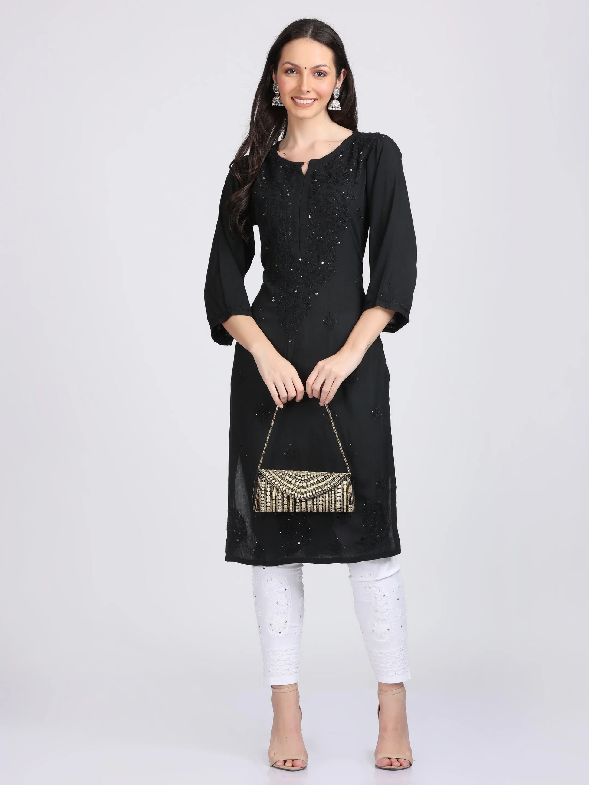 Elegant Mukaish Work Rayon Straight kurta With Mukaish Work Stretchable Trouser With Both Side Pocket