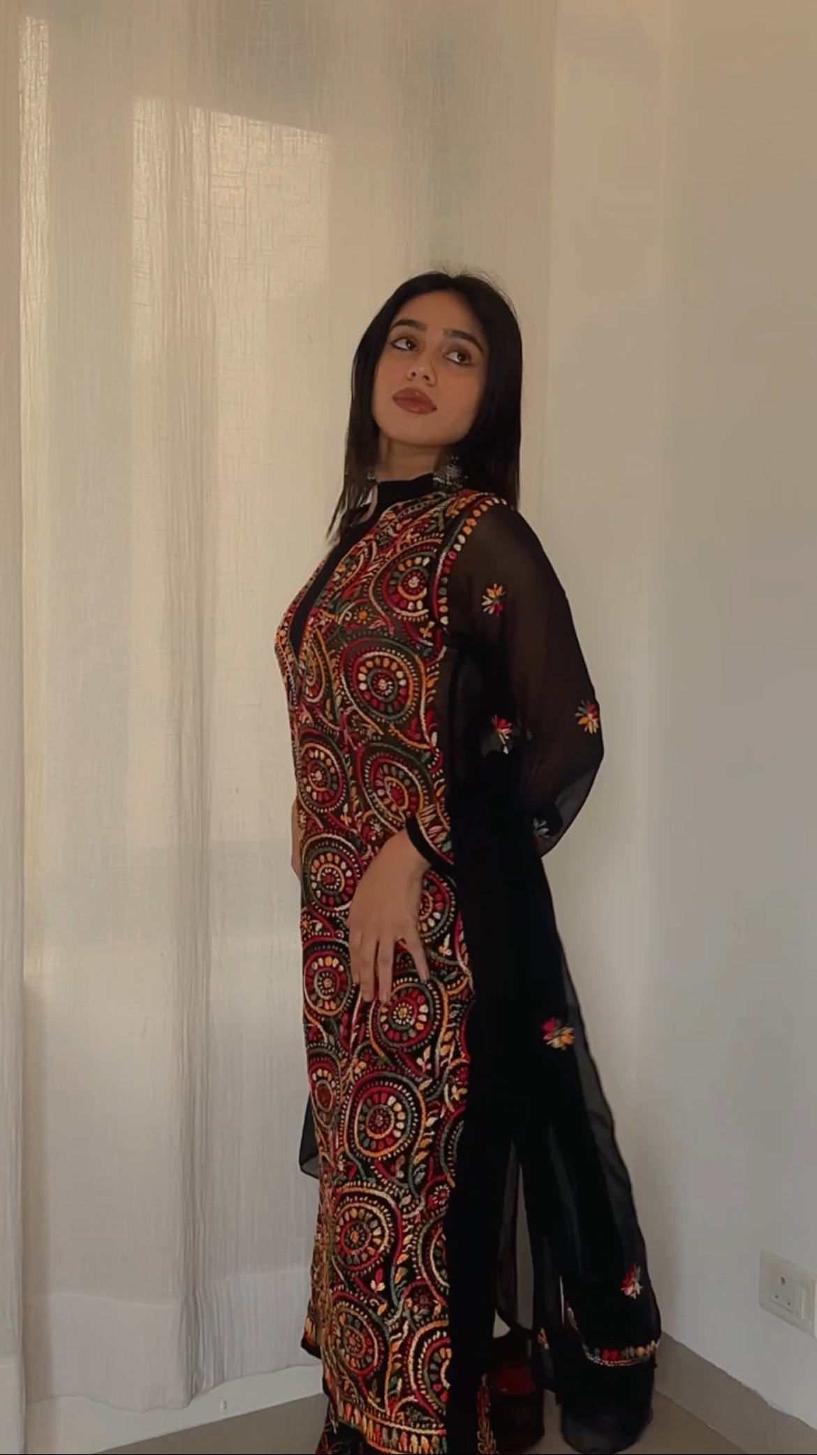 Lucknowi Chikankari Straight Kurta With Embroidered Stole & Matching Inner