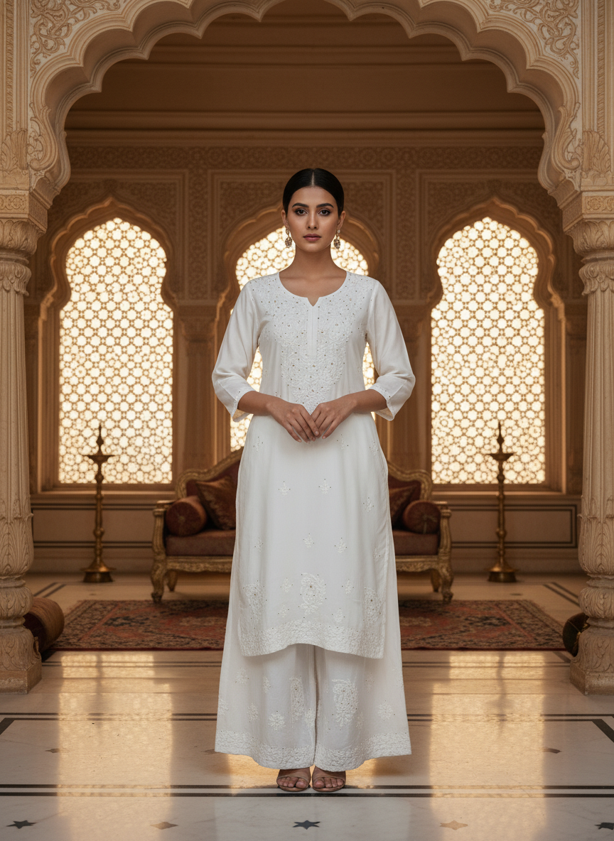 Elegant Mukaish Work Chikankari Co-ord Set On Butter Soft Rayon Fabric