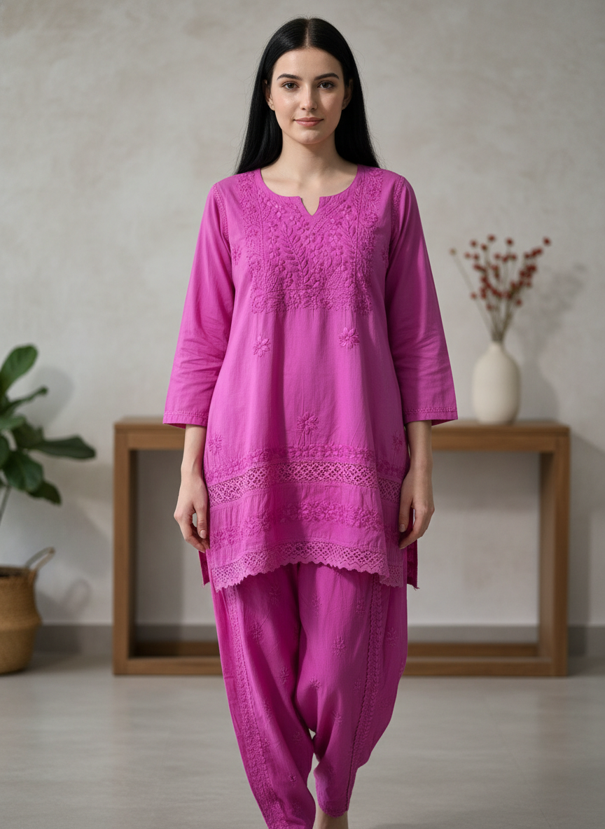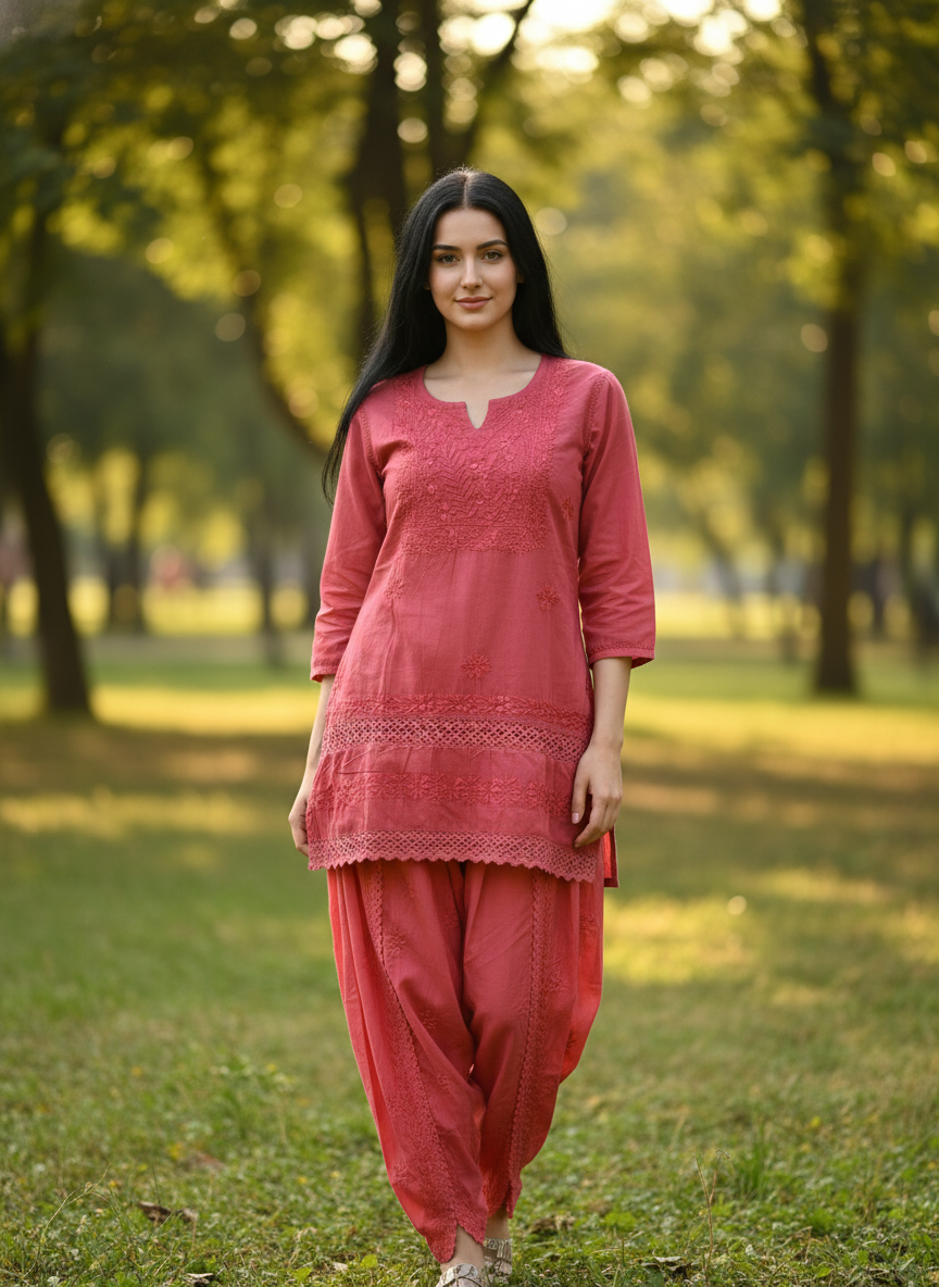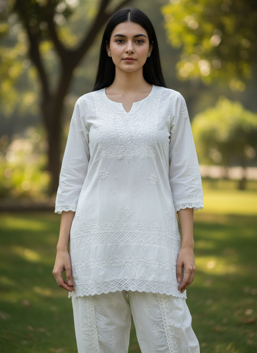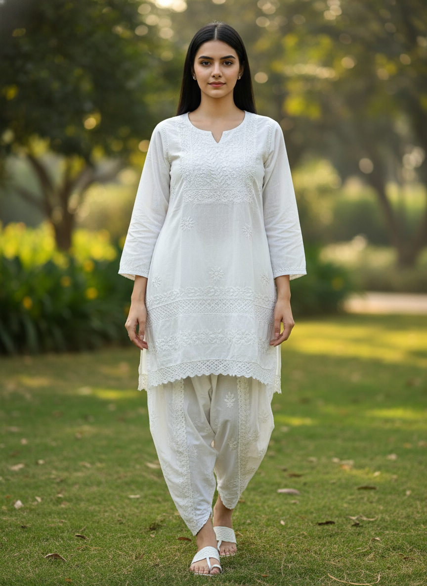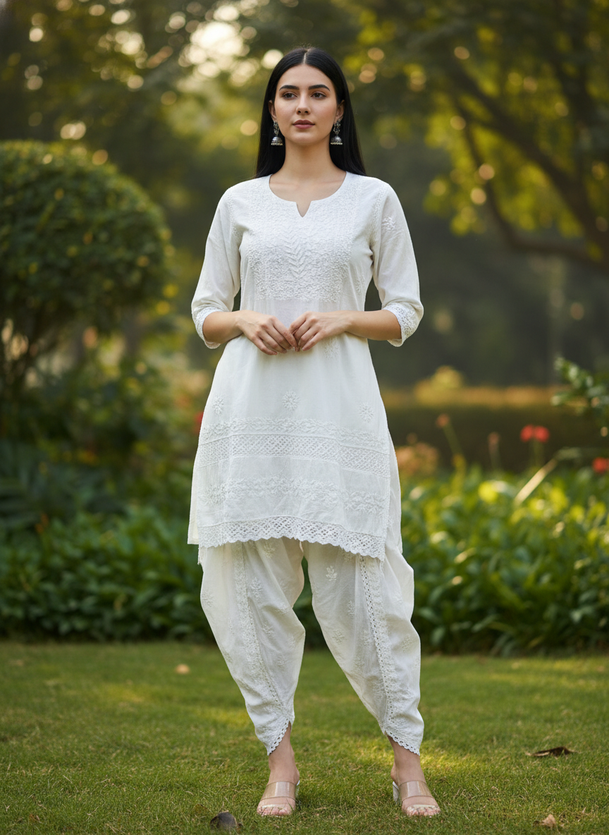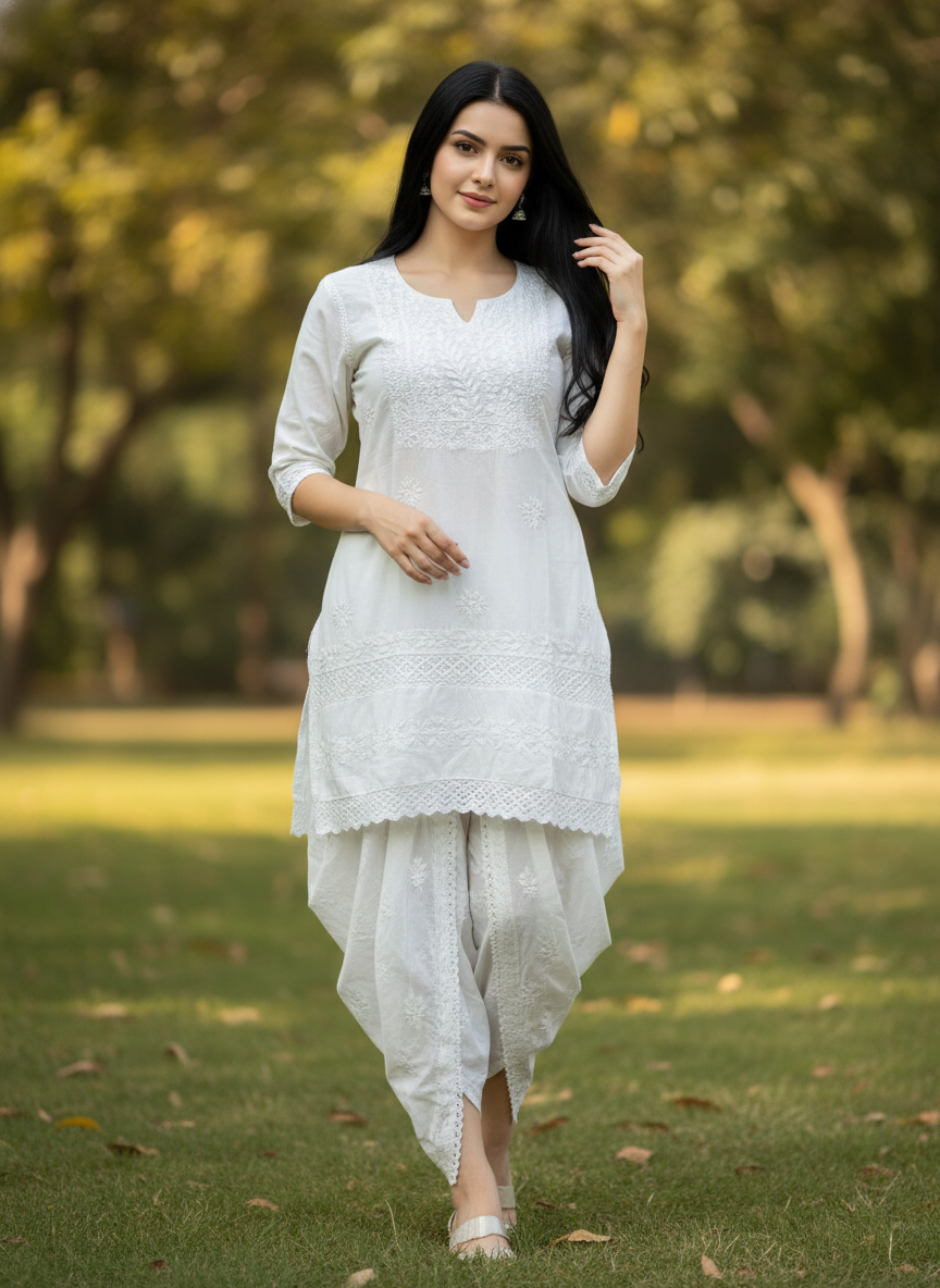 Nazakat Short Chikankari Pure Cotton Set with Dhoti.