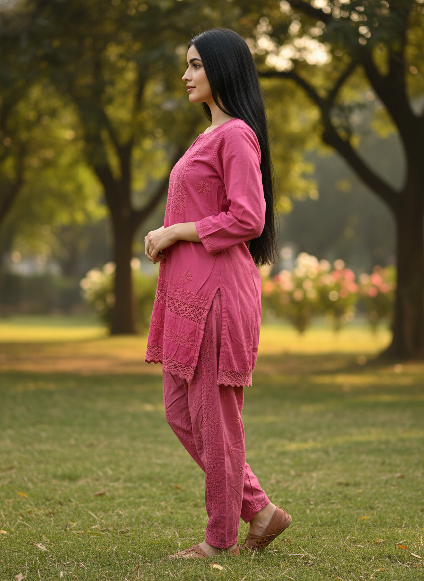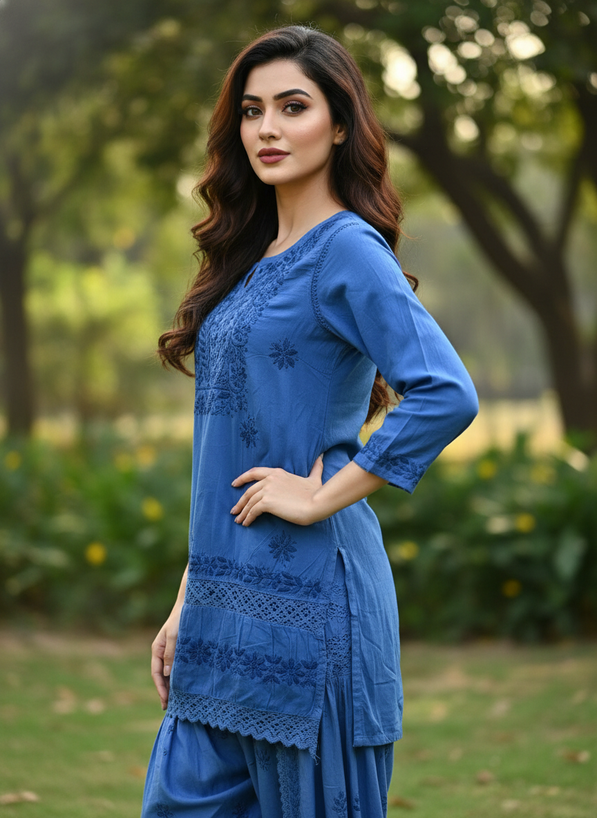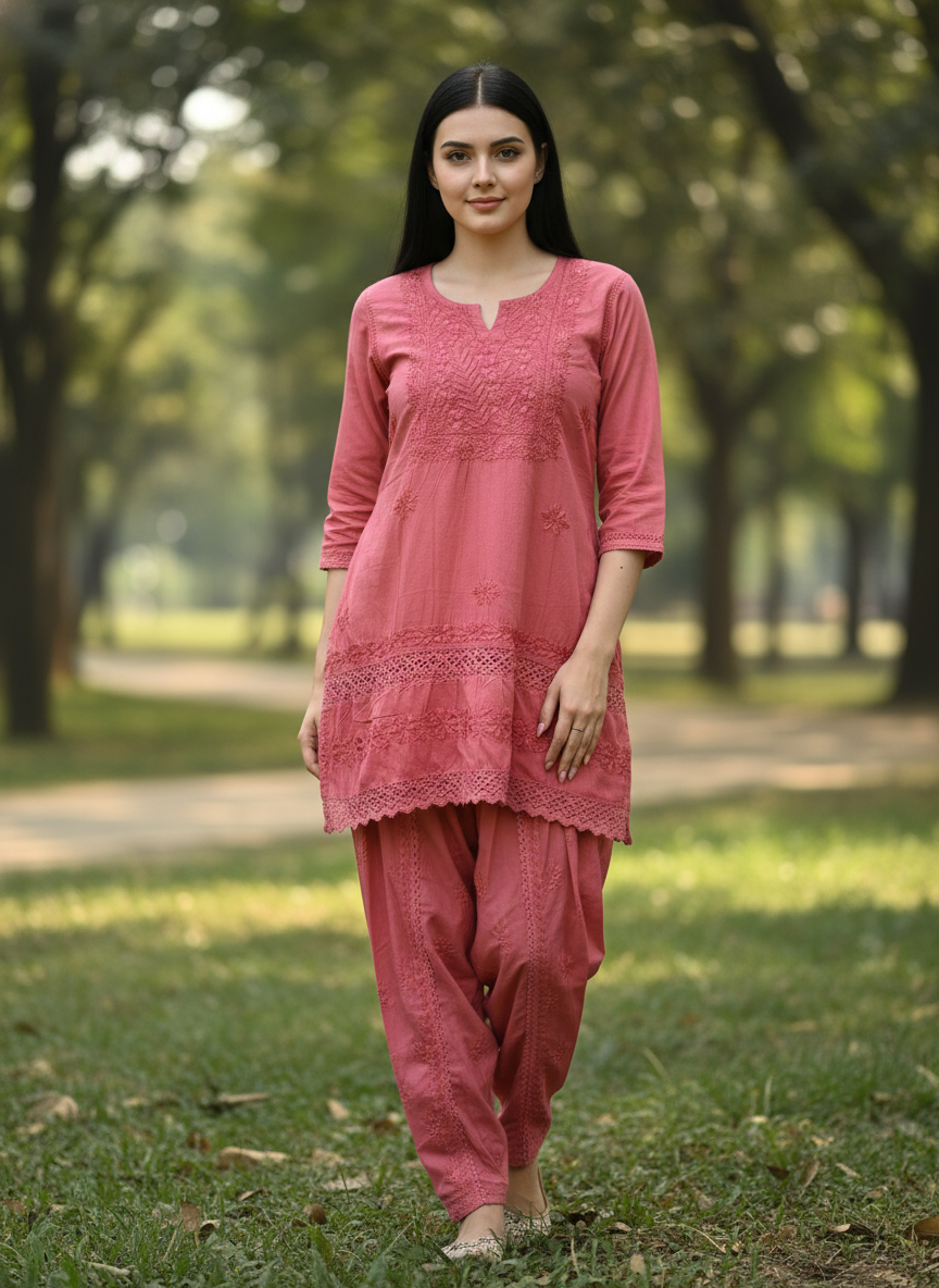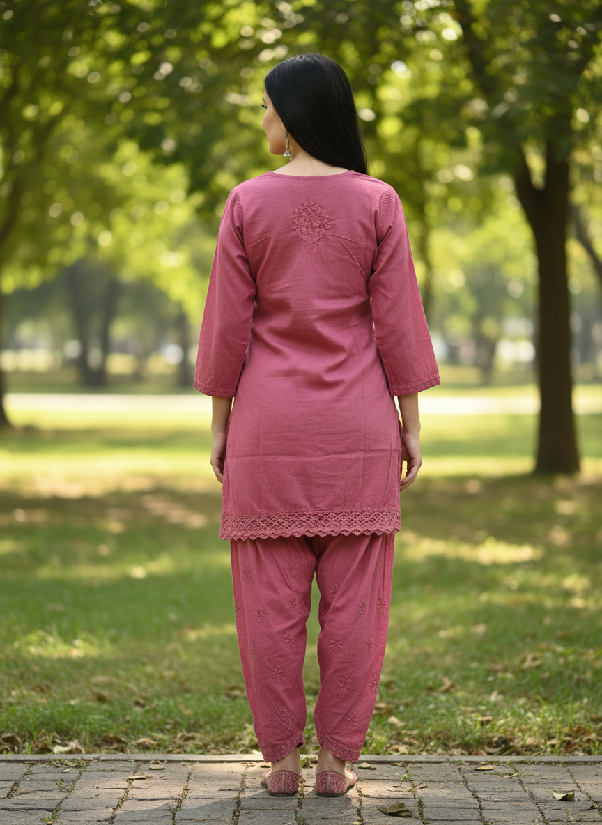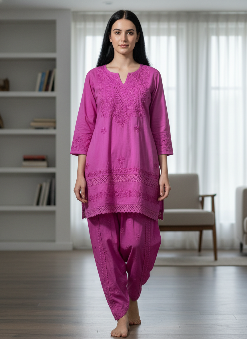 Nazakat Short Chikankari Pure Cotton Set with Dhoti.
