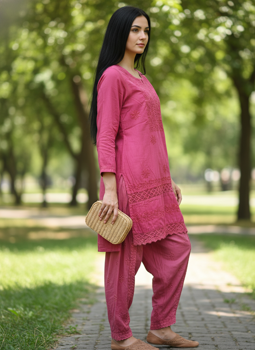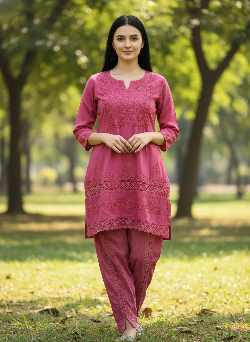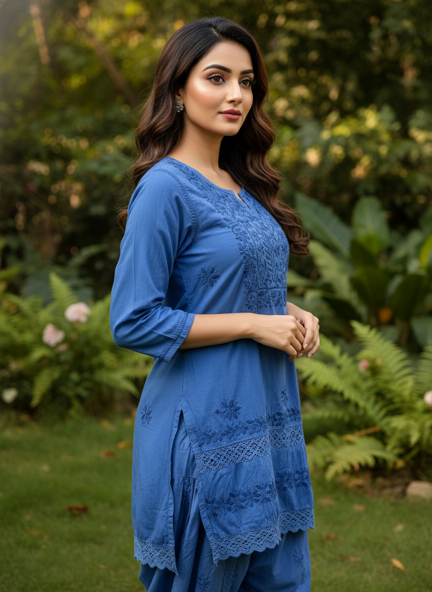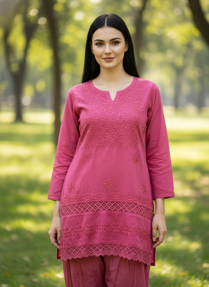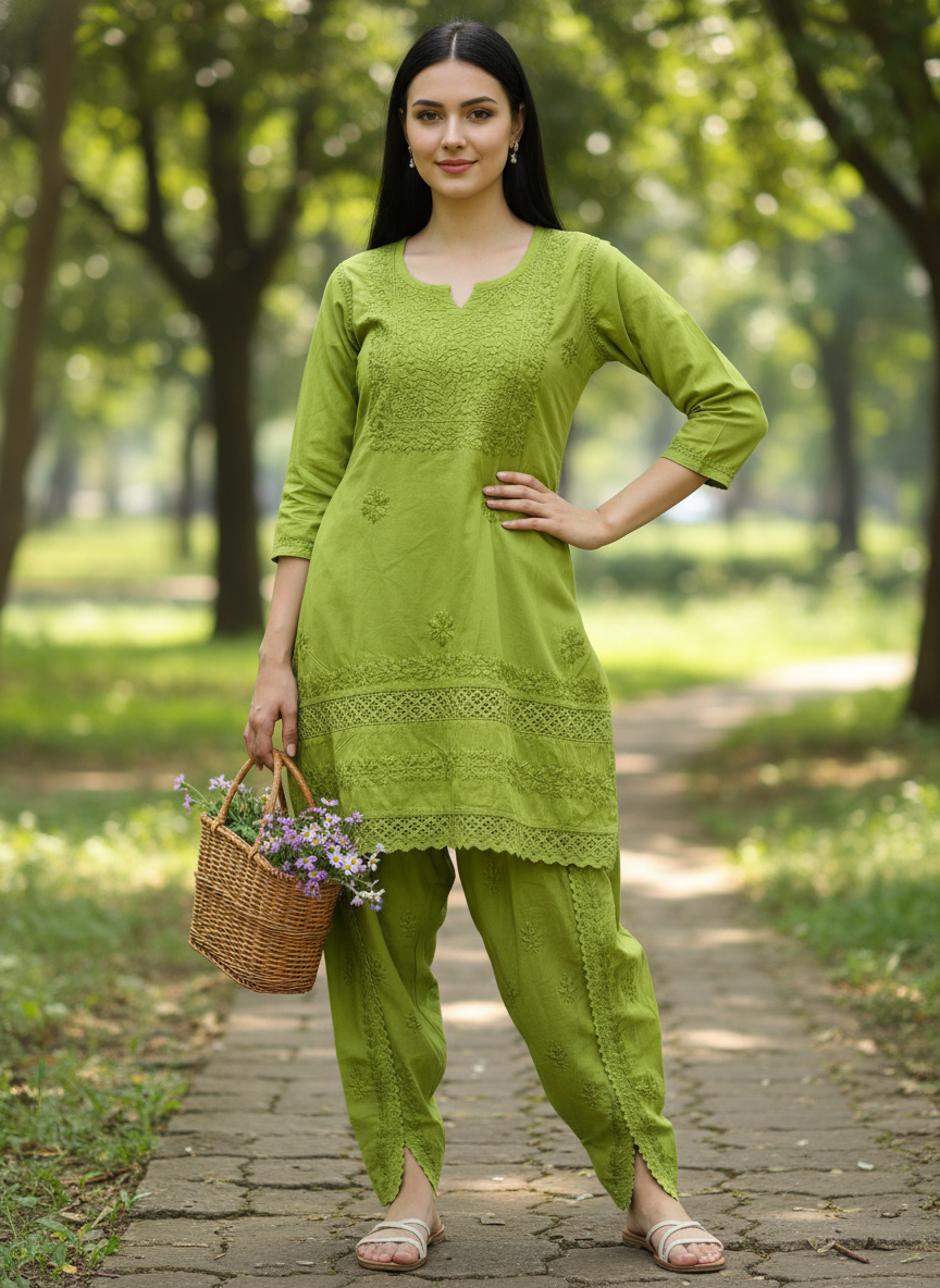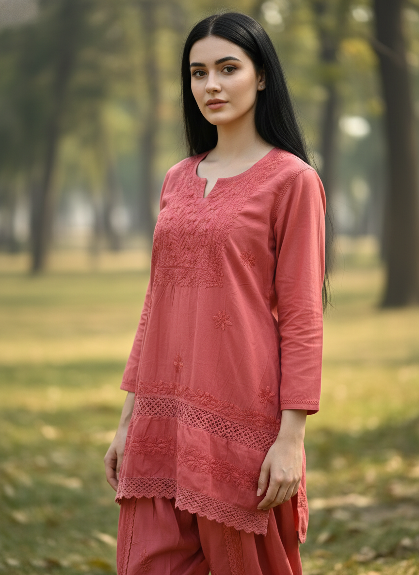 Nazakat Short Chikankari Pure Cotton Set with Dhoti.