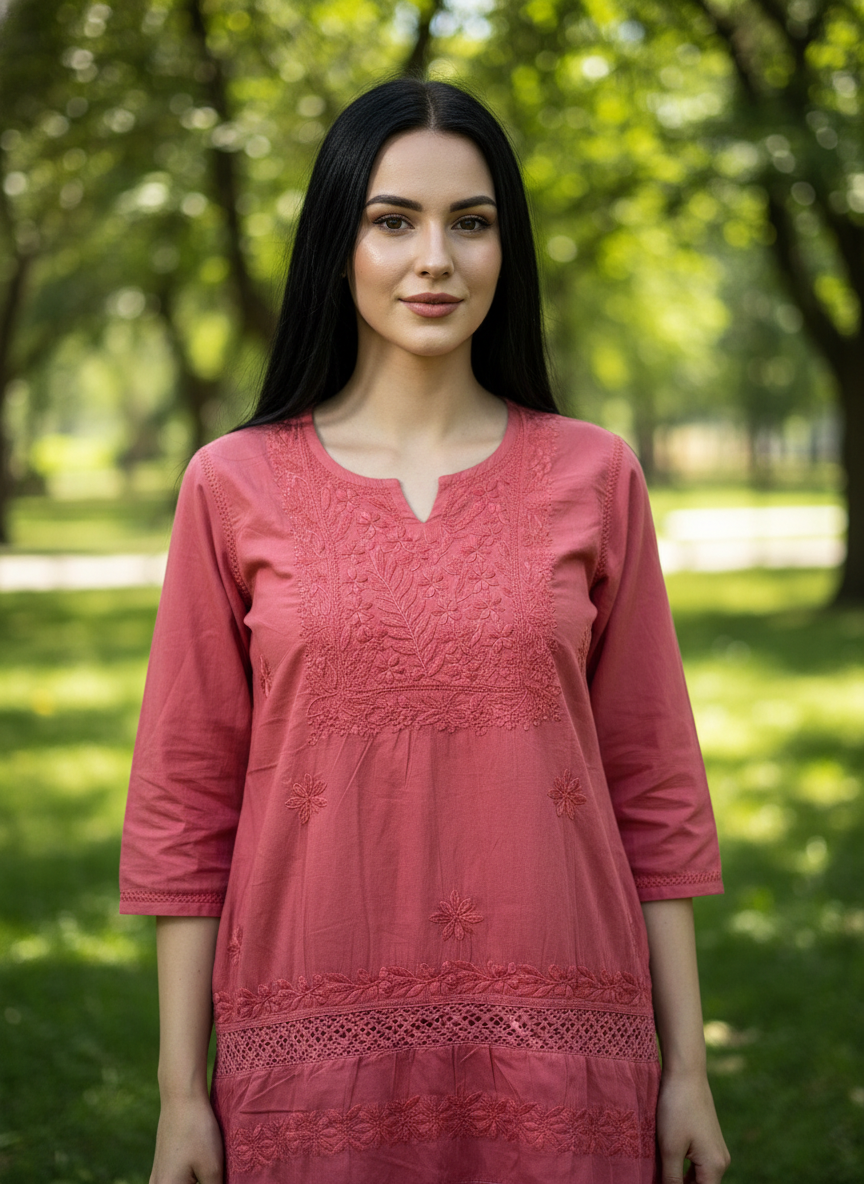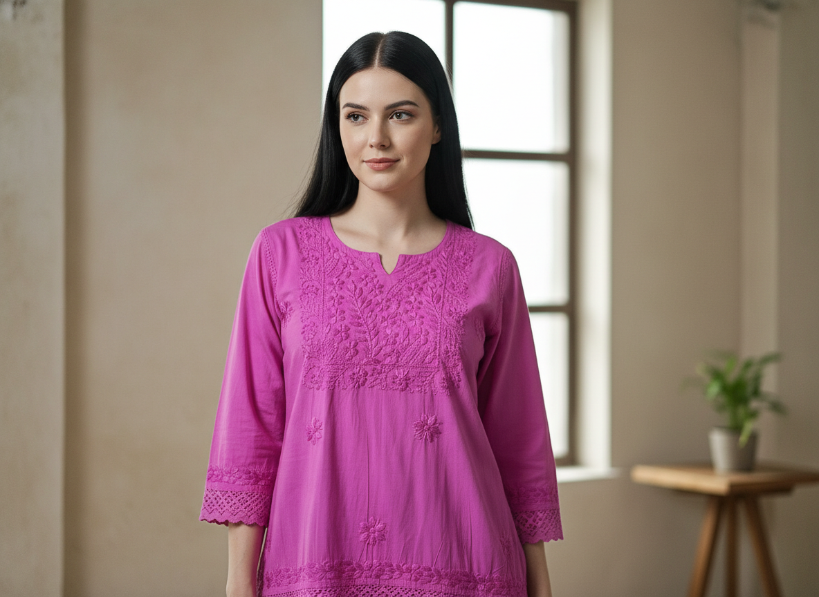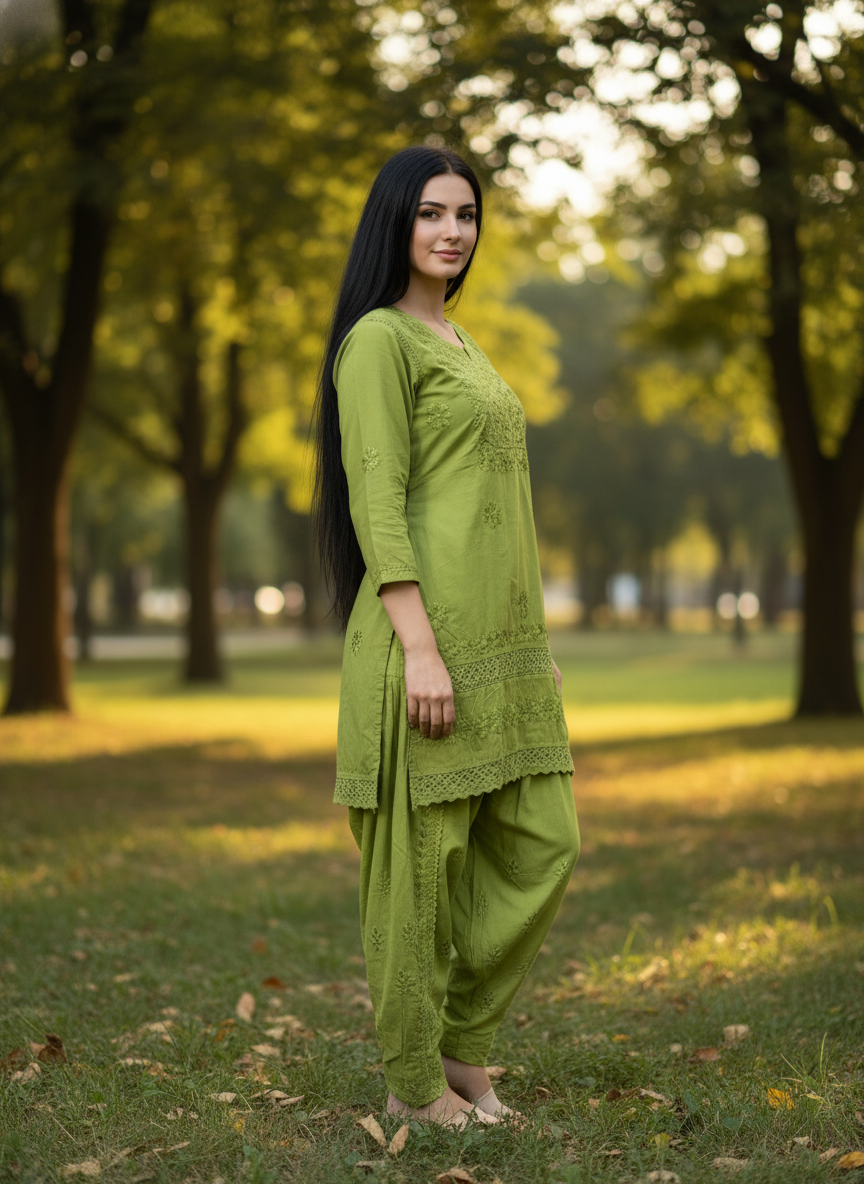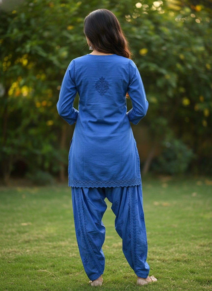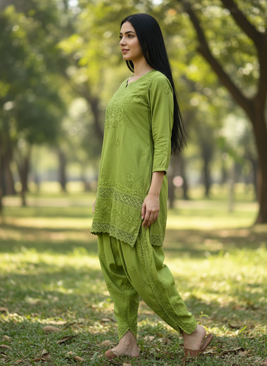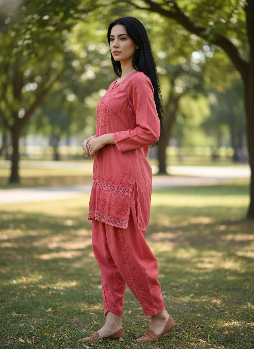 Nazakat Short Chikankari Pure Cotton Set with Dhoti.