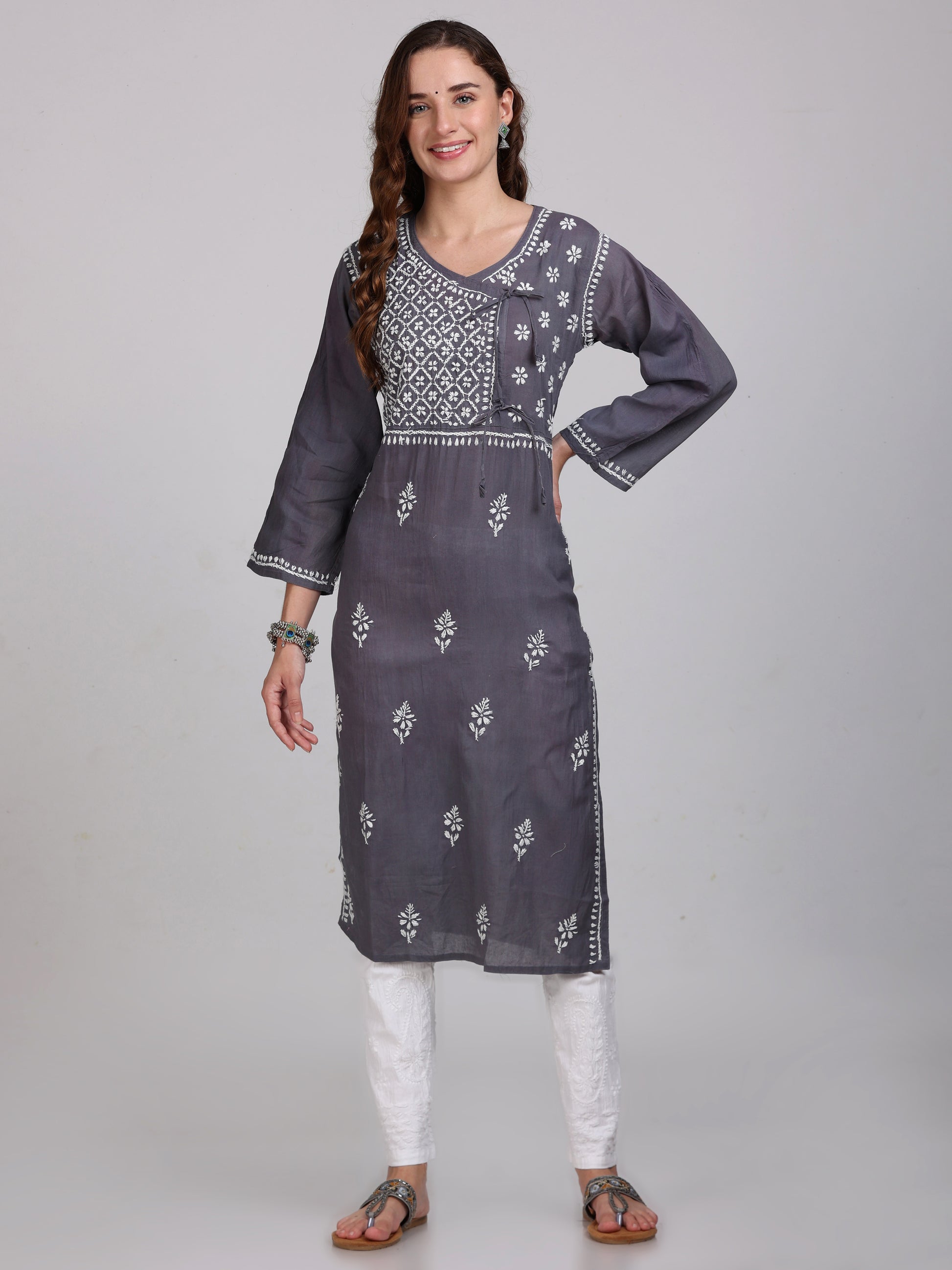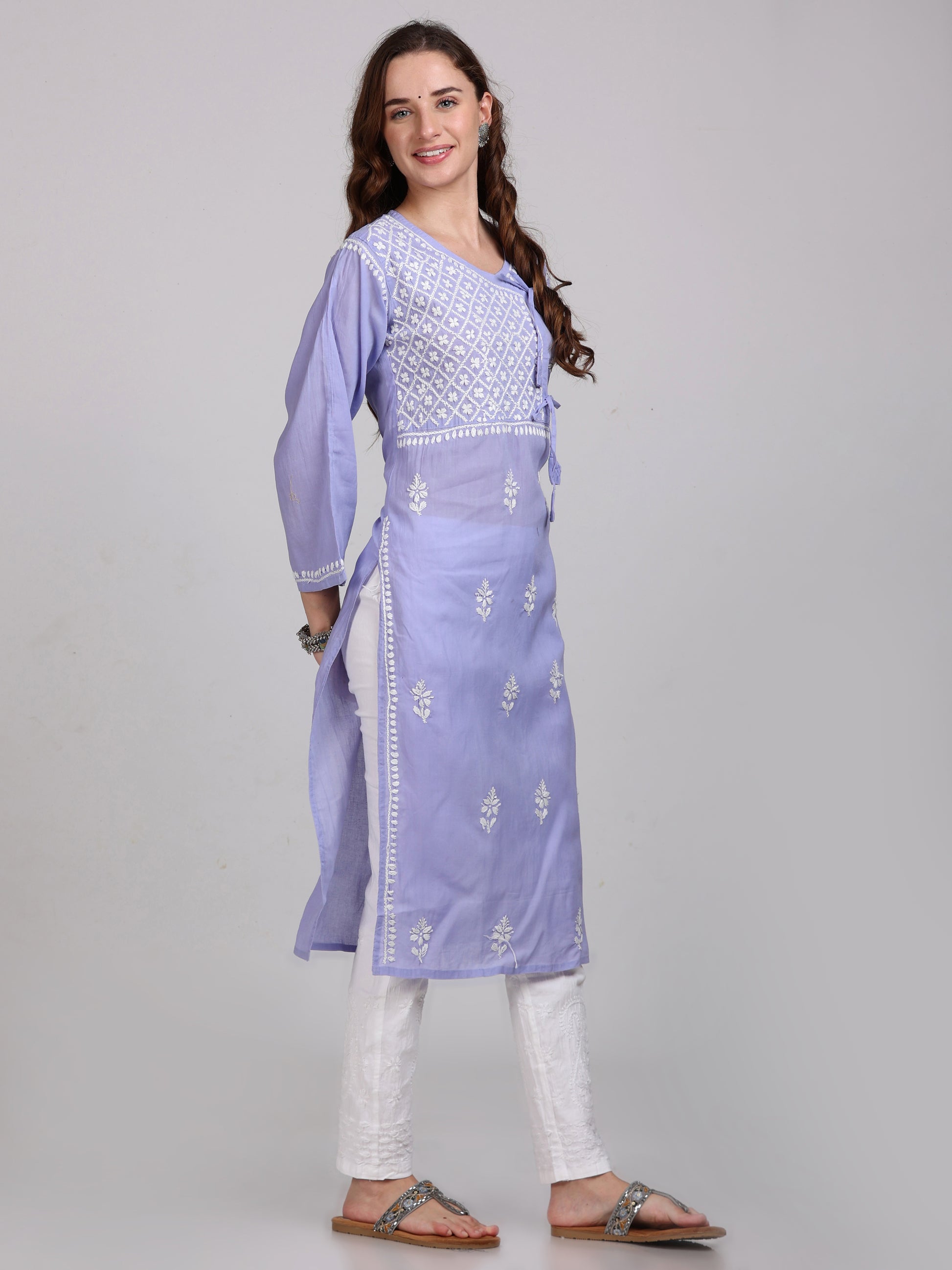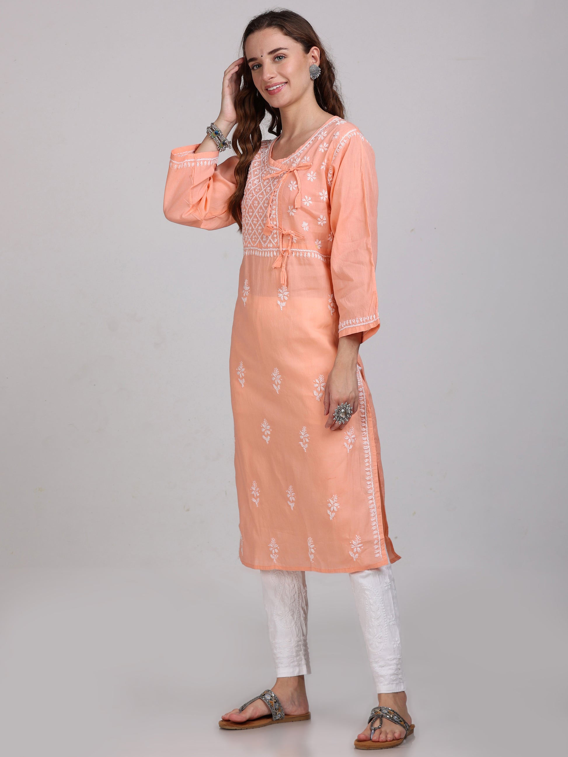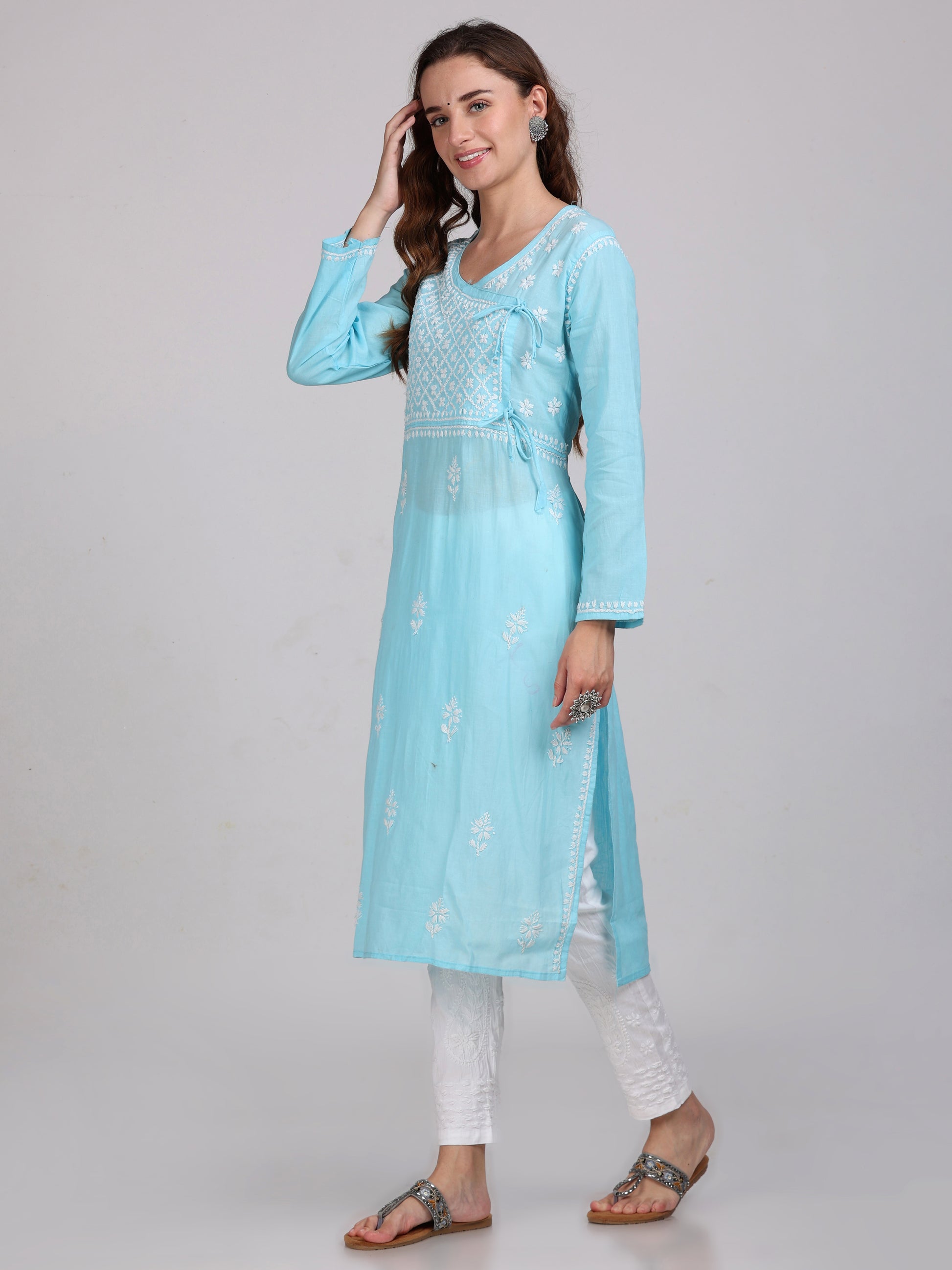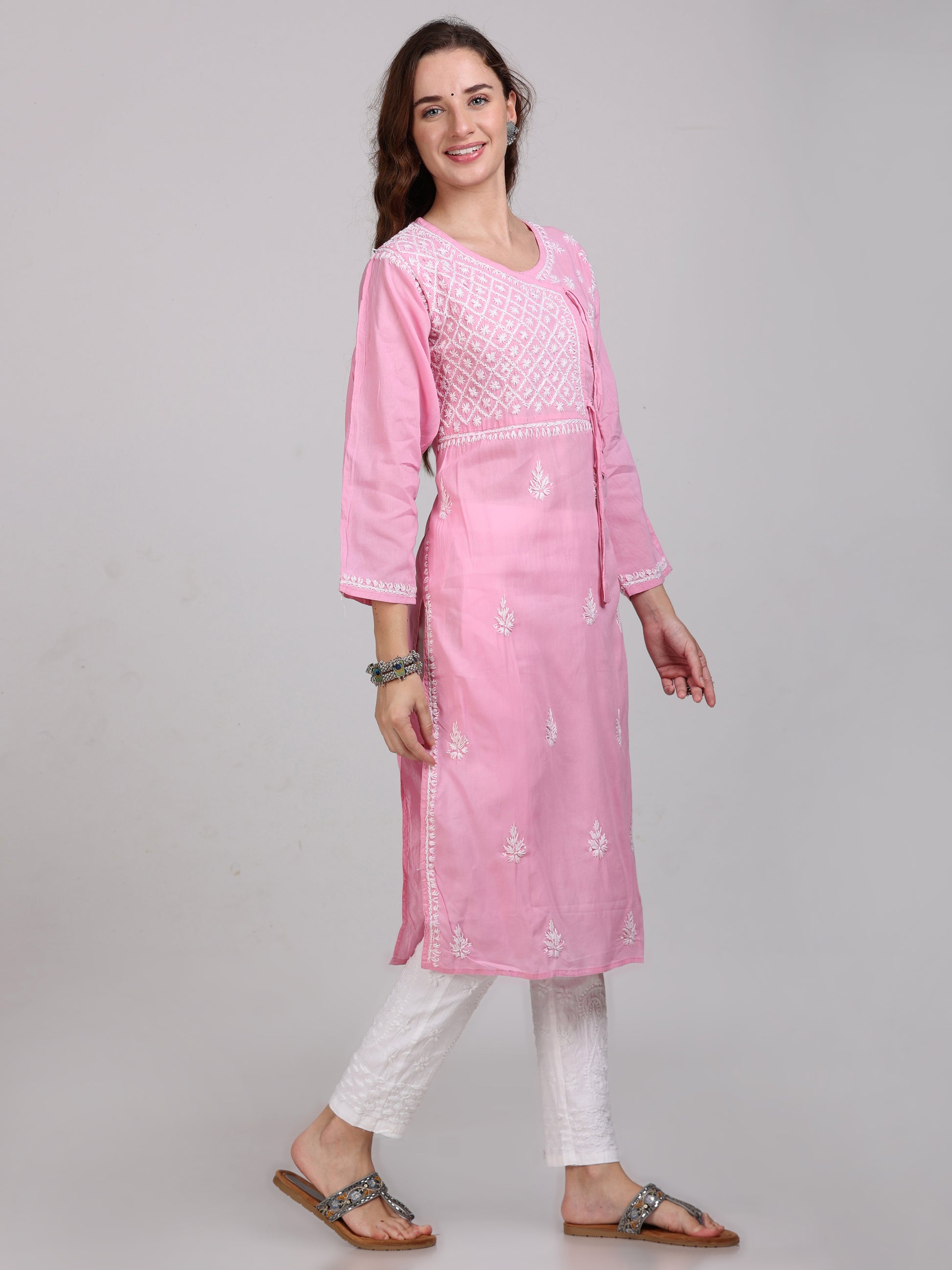 Angarkha Style Chikankari Pure Cotton Straight Kurta