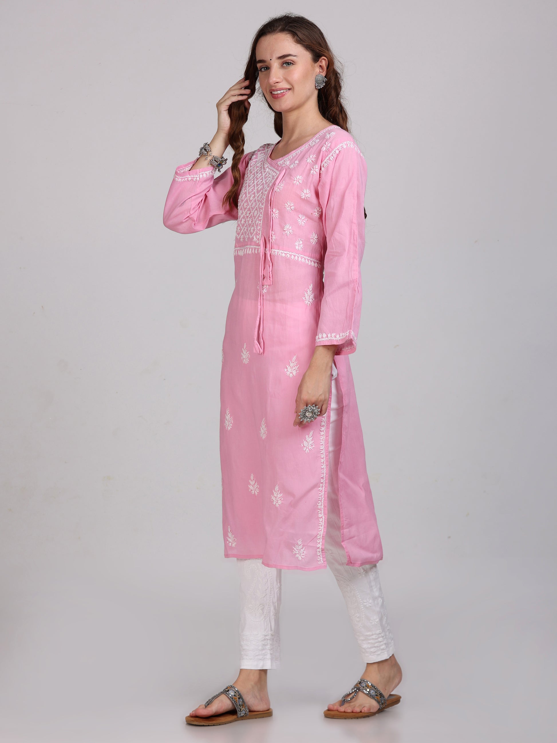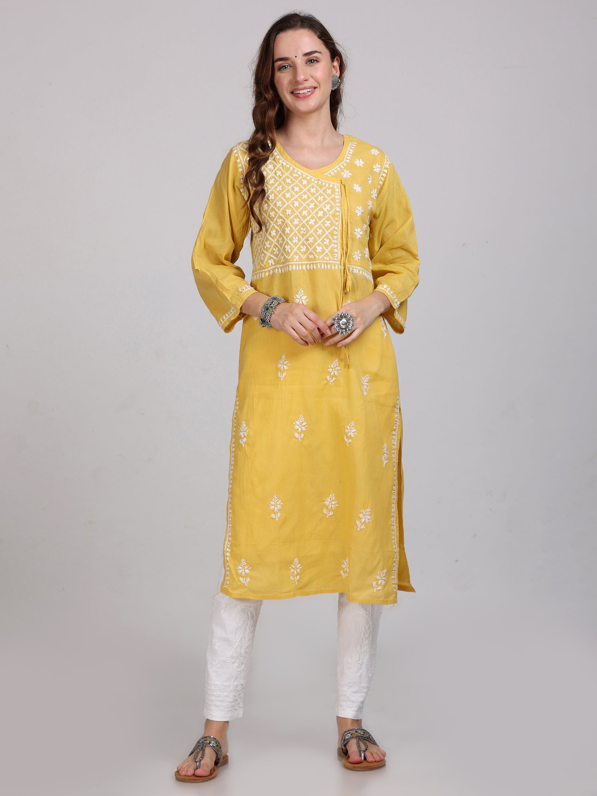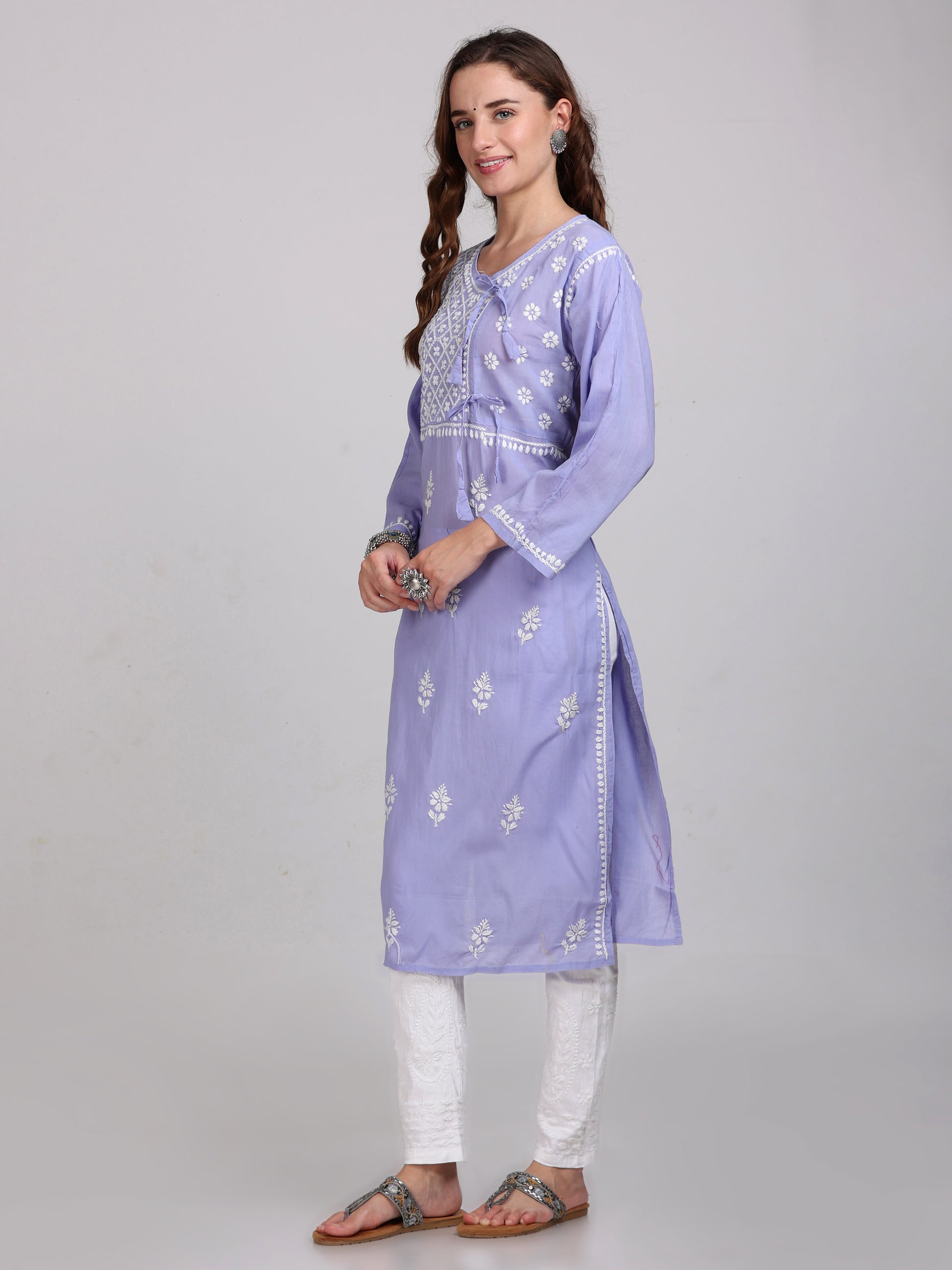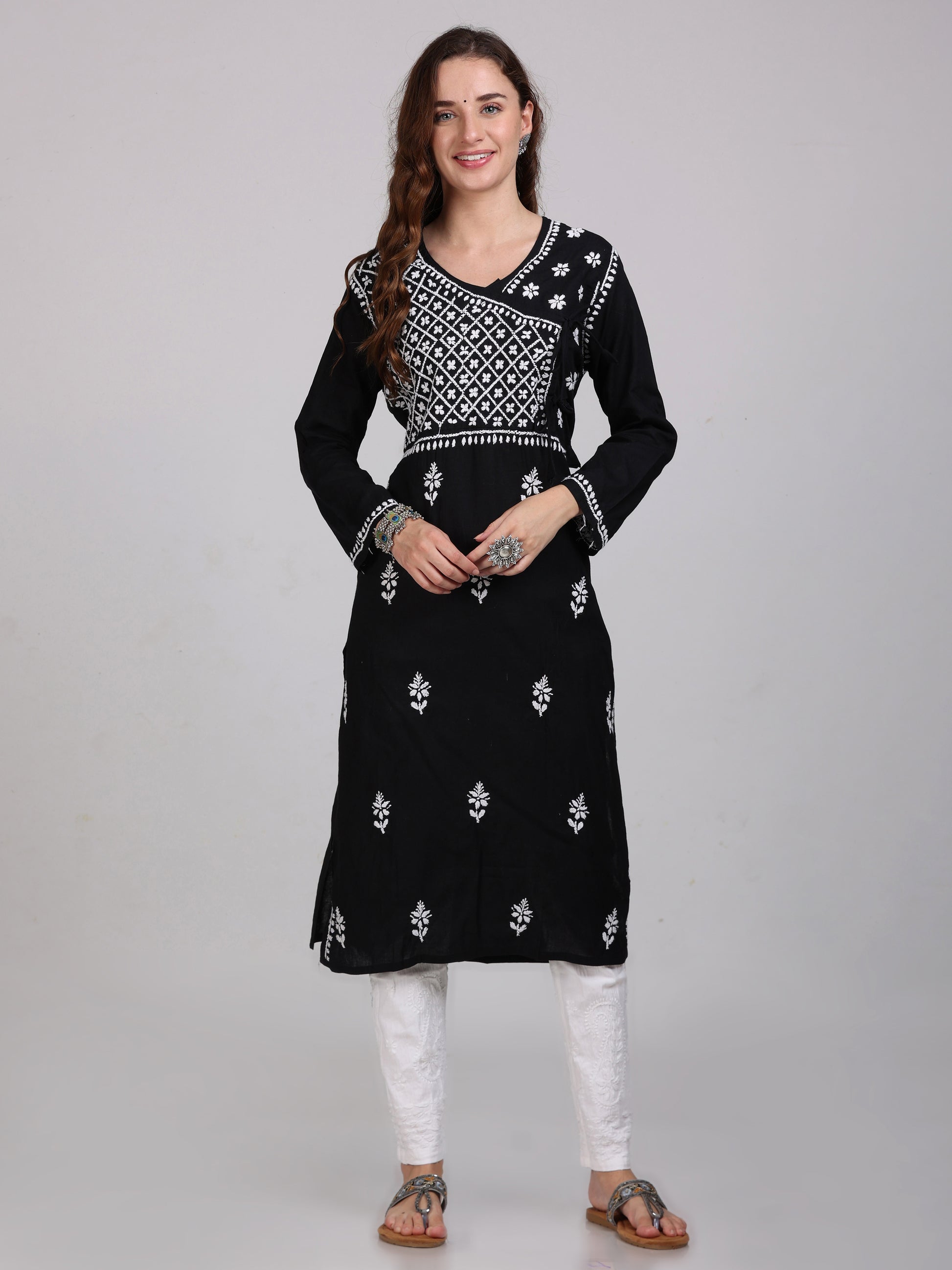 Angarkha Style Chikankari Pure Cotton Straight Kurta