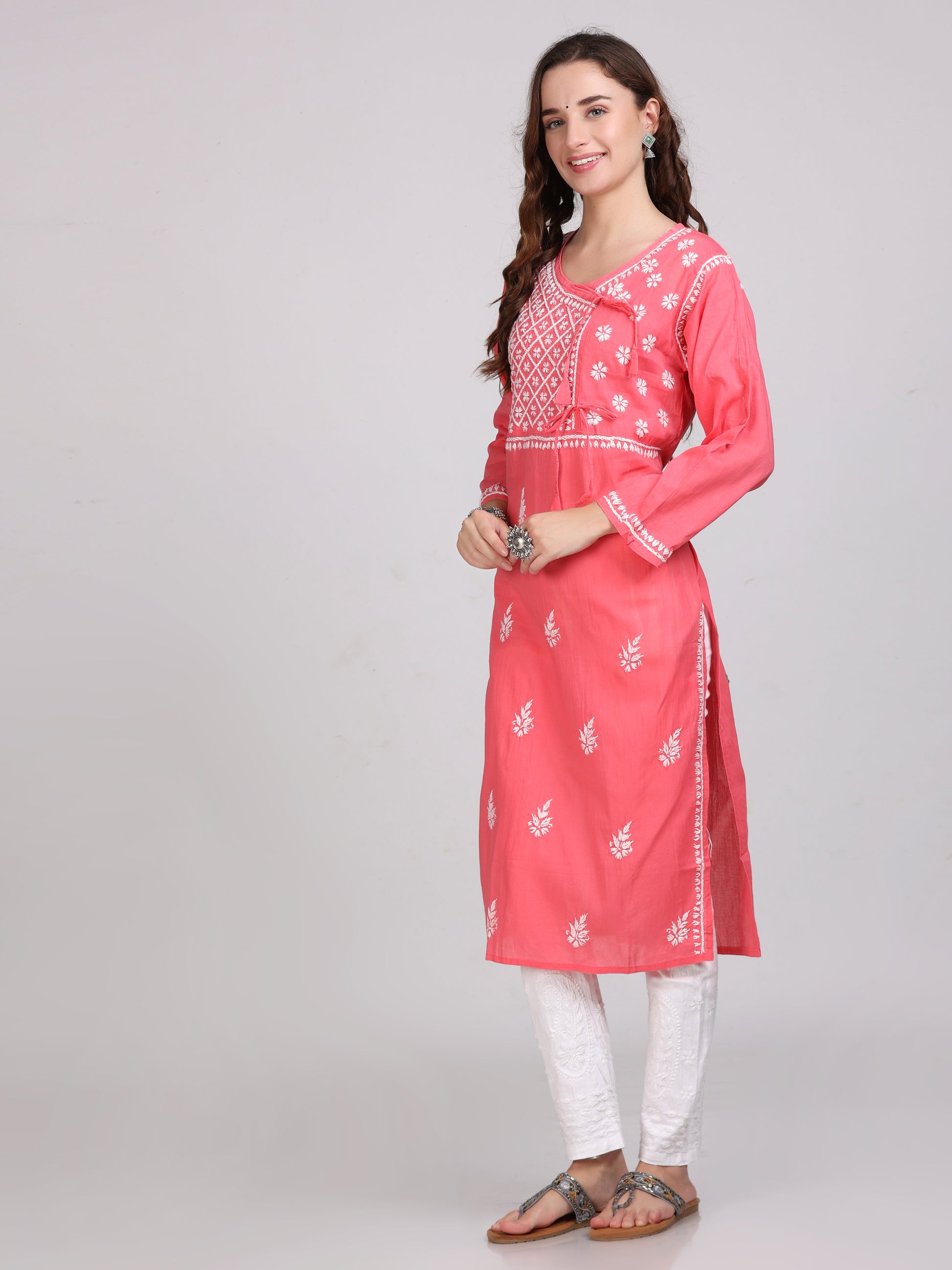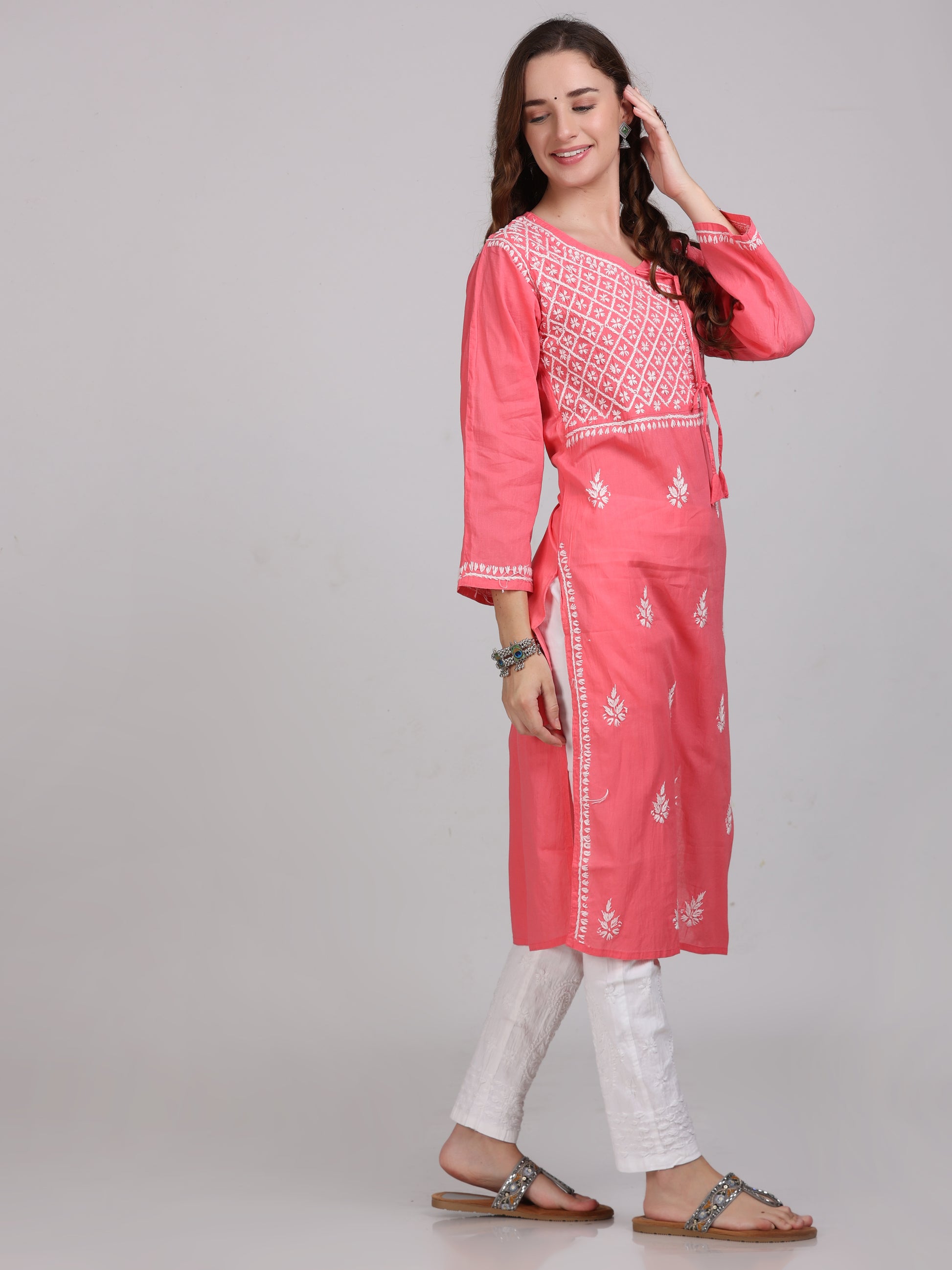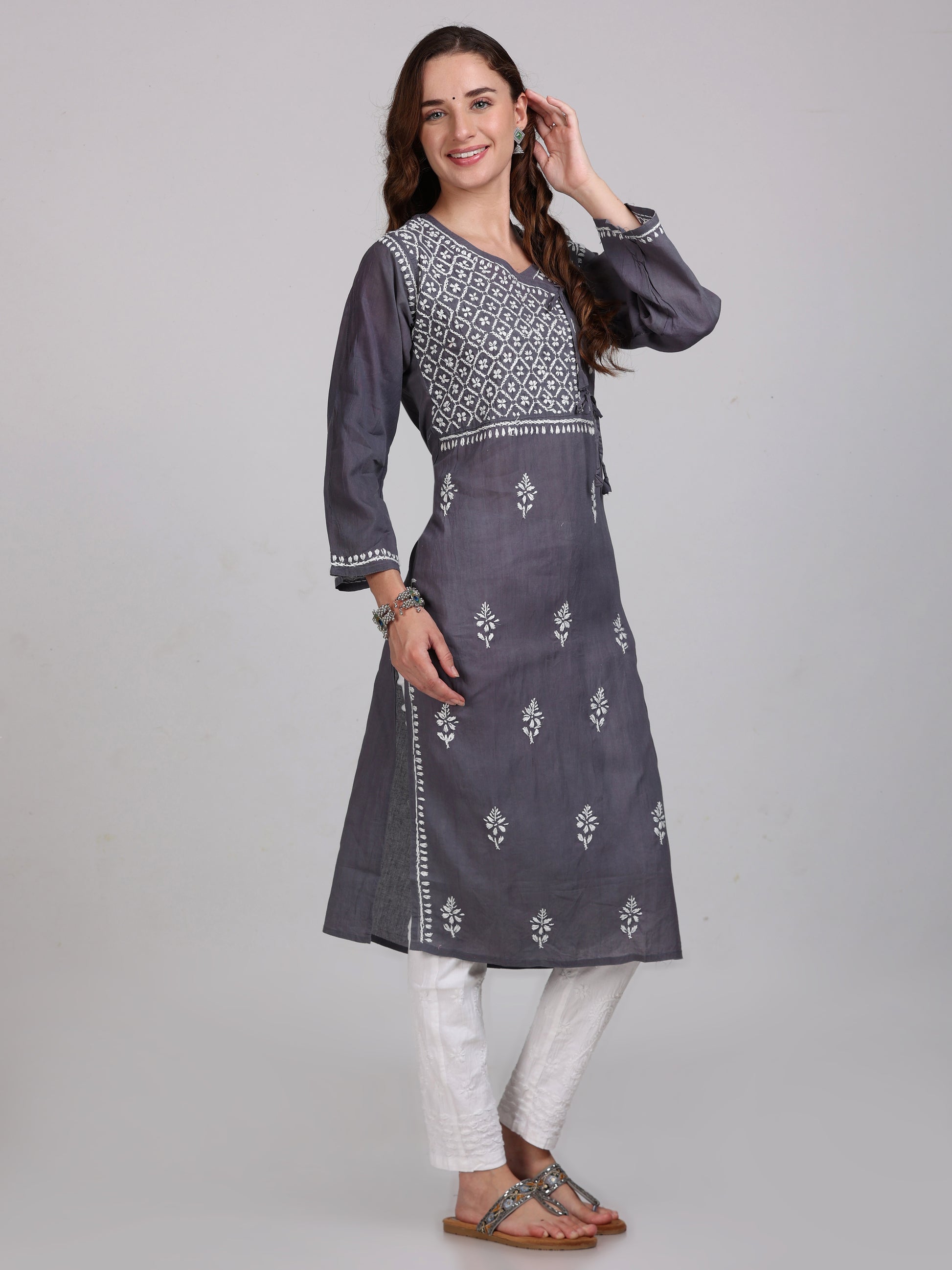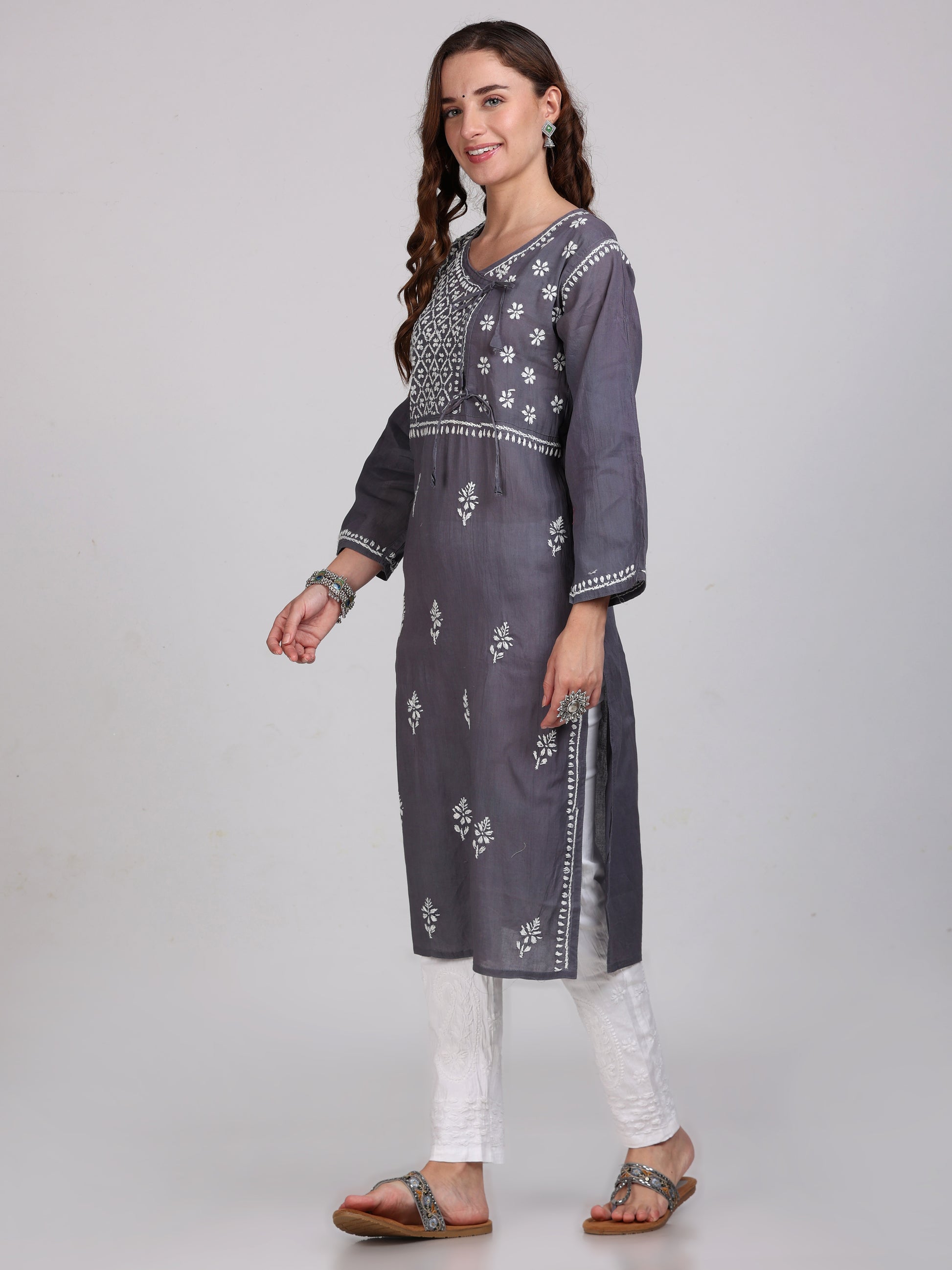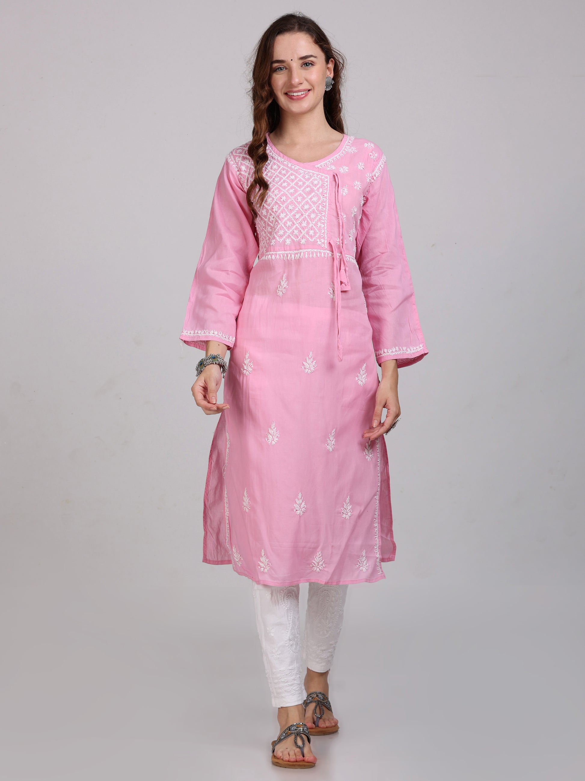 Angarkha Style Chikankari Pure Cotton Straight Kurta