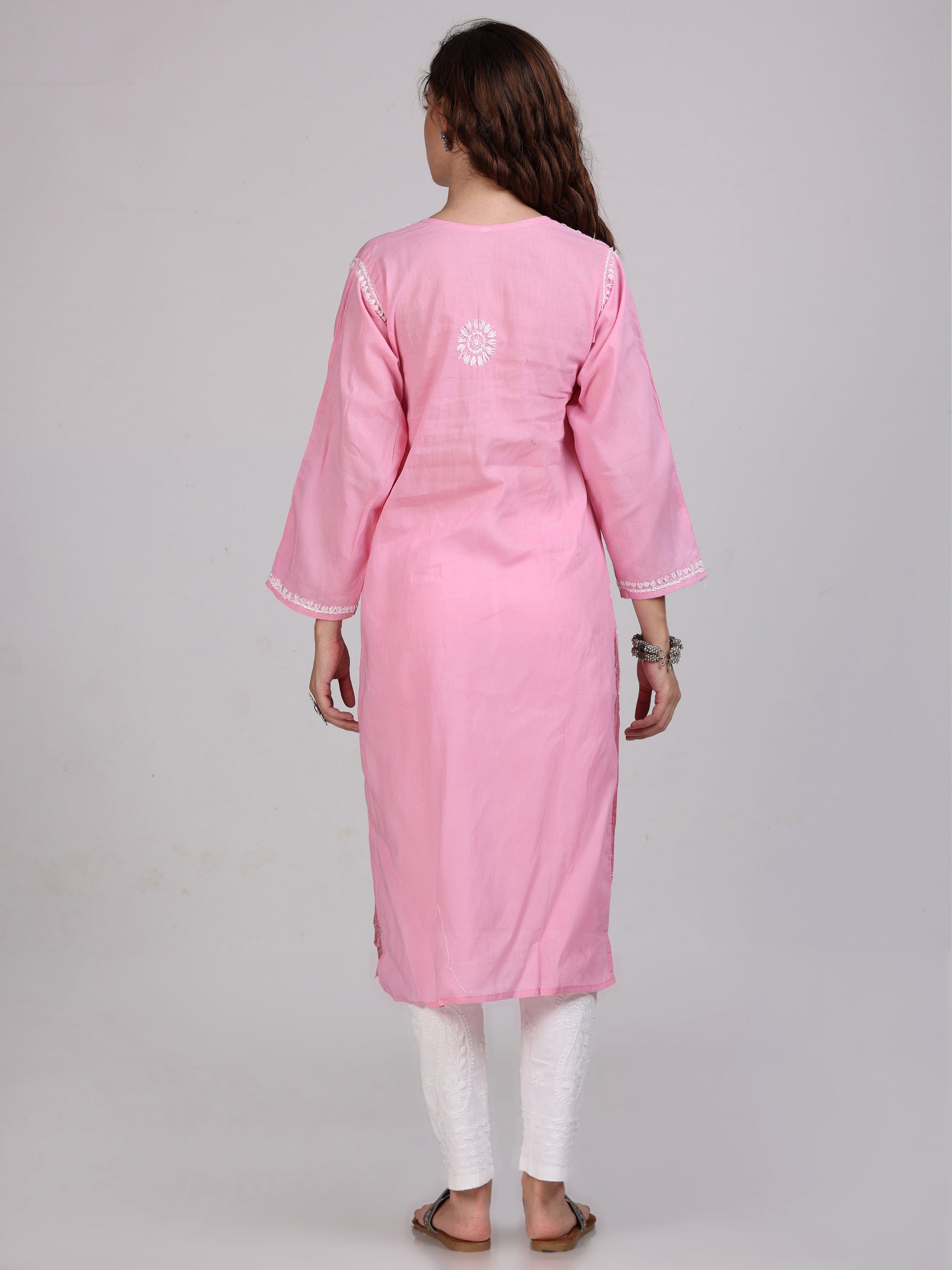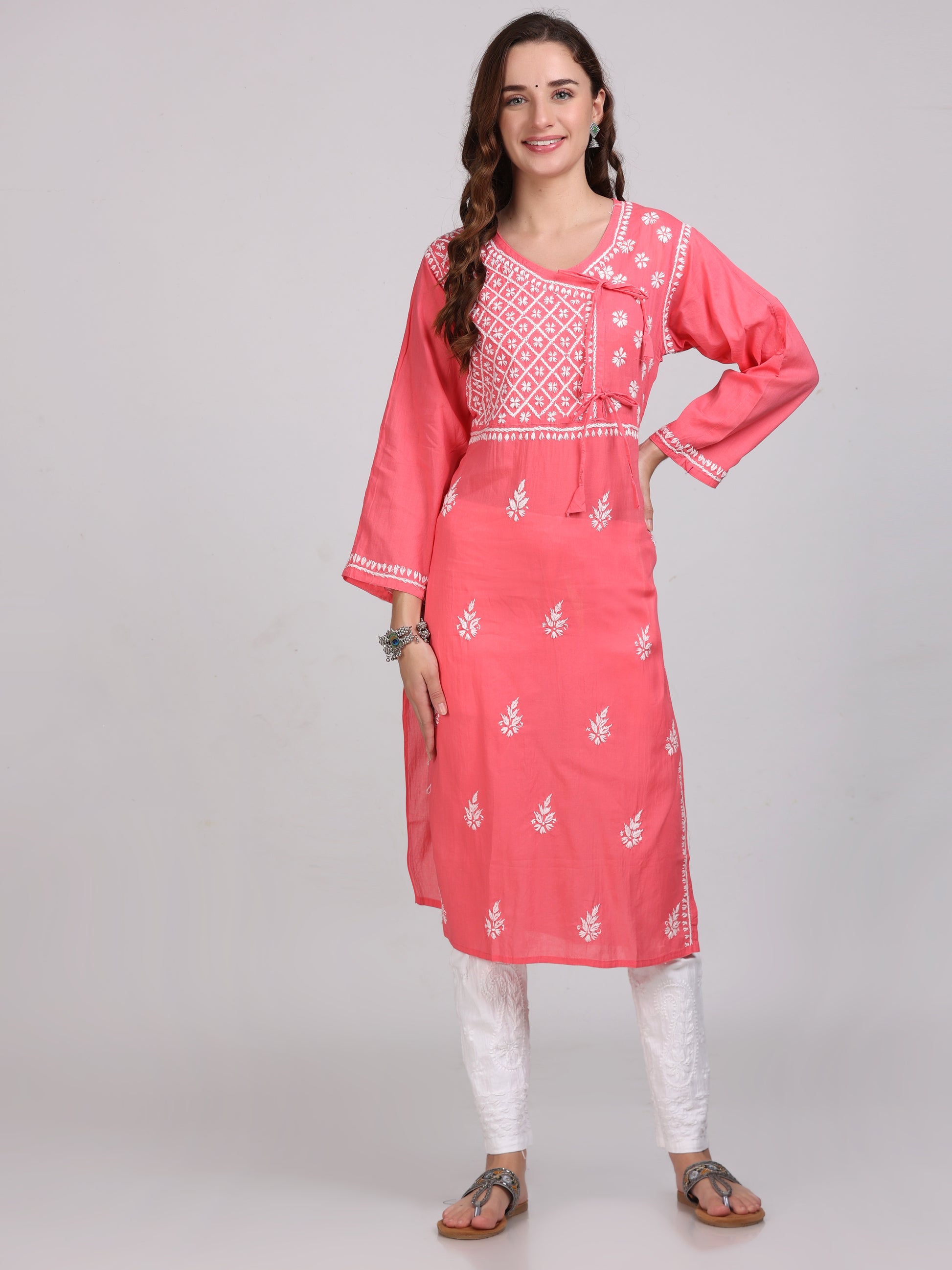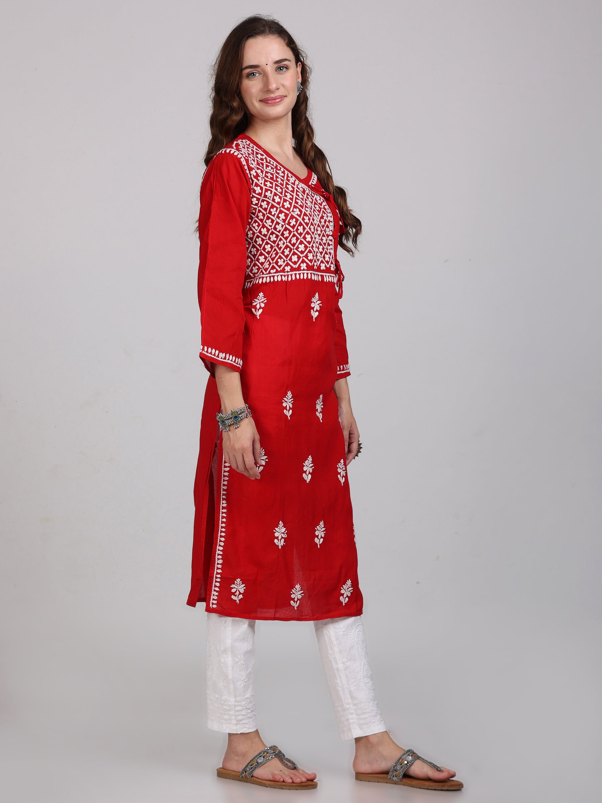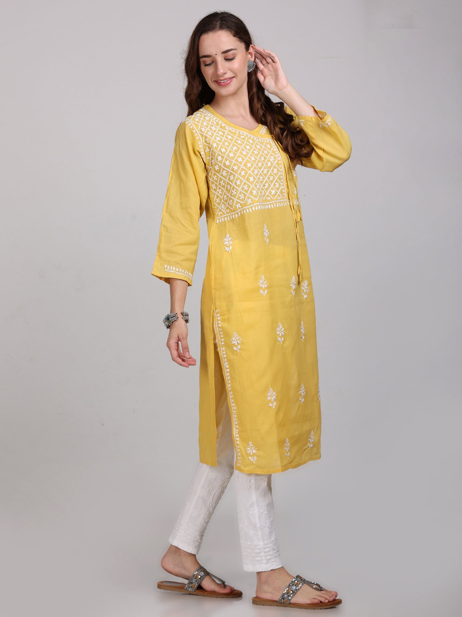Angarkha Style Chikankari Pure Cotton Straight Kurta