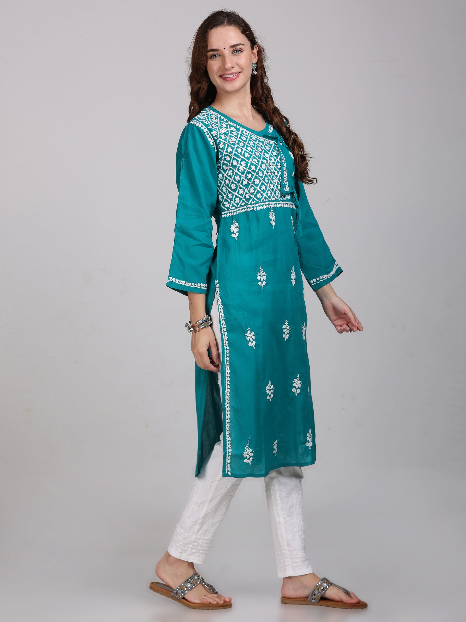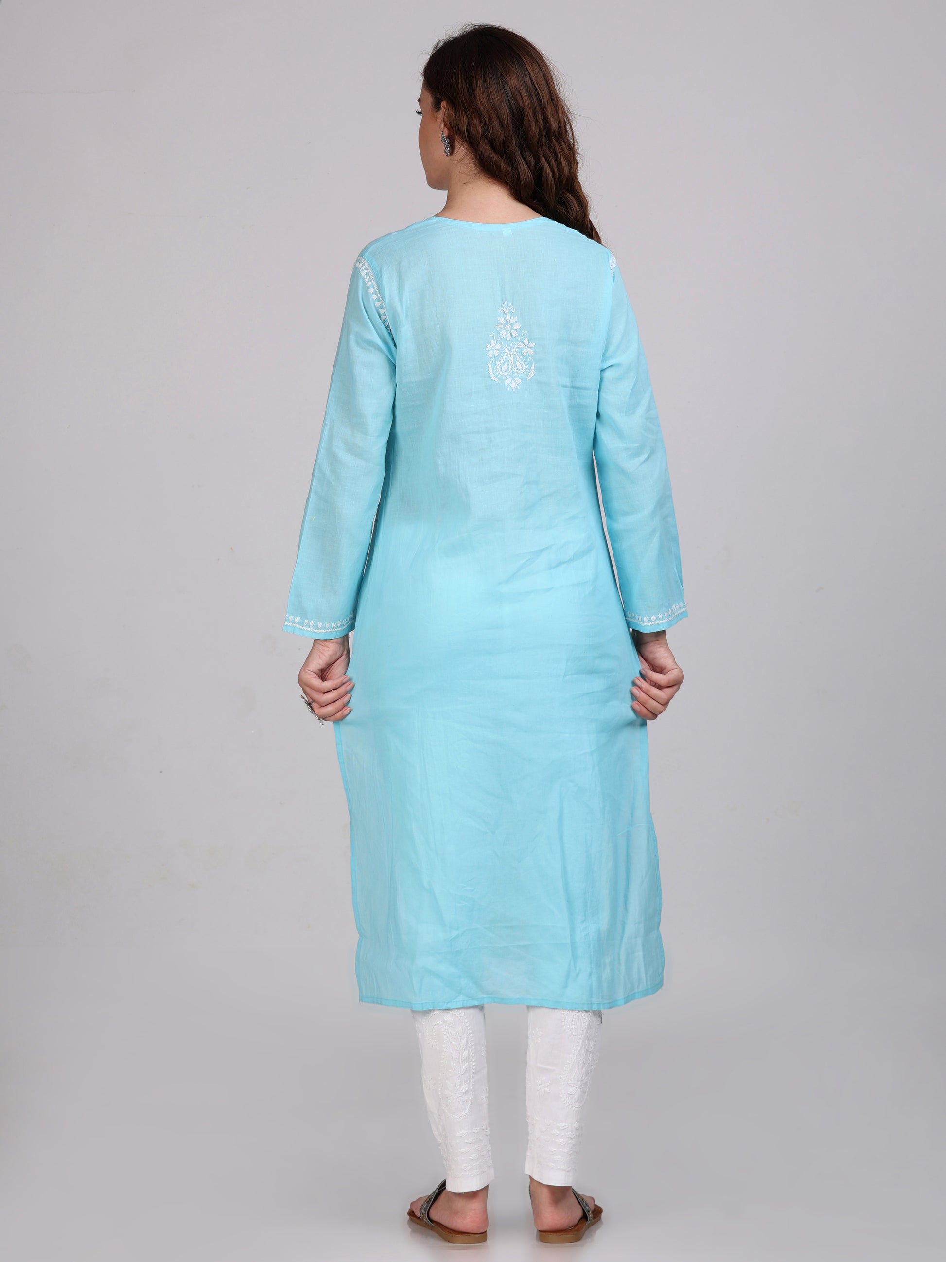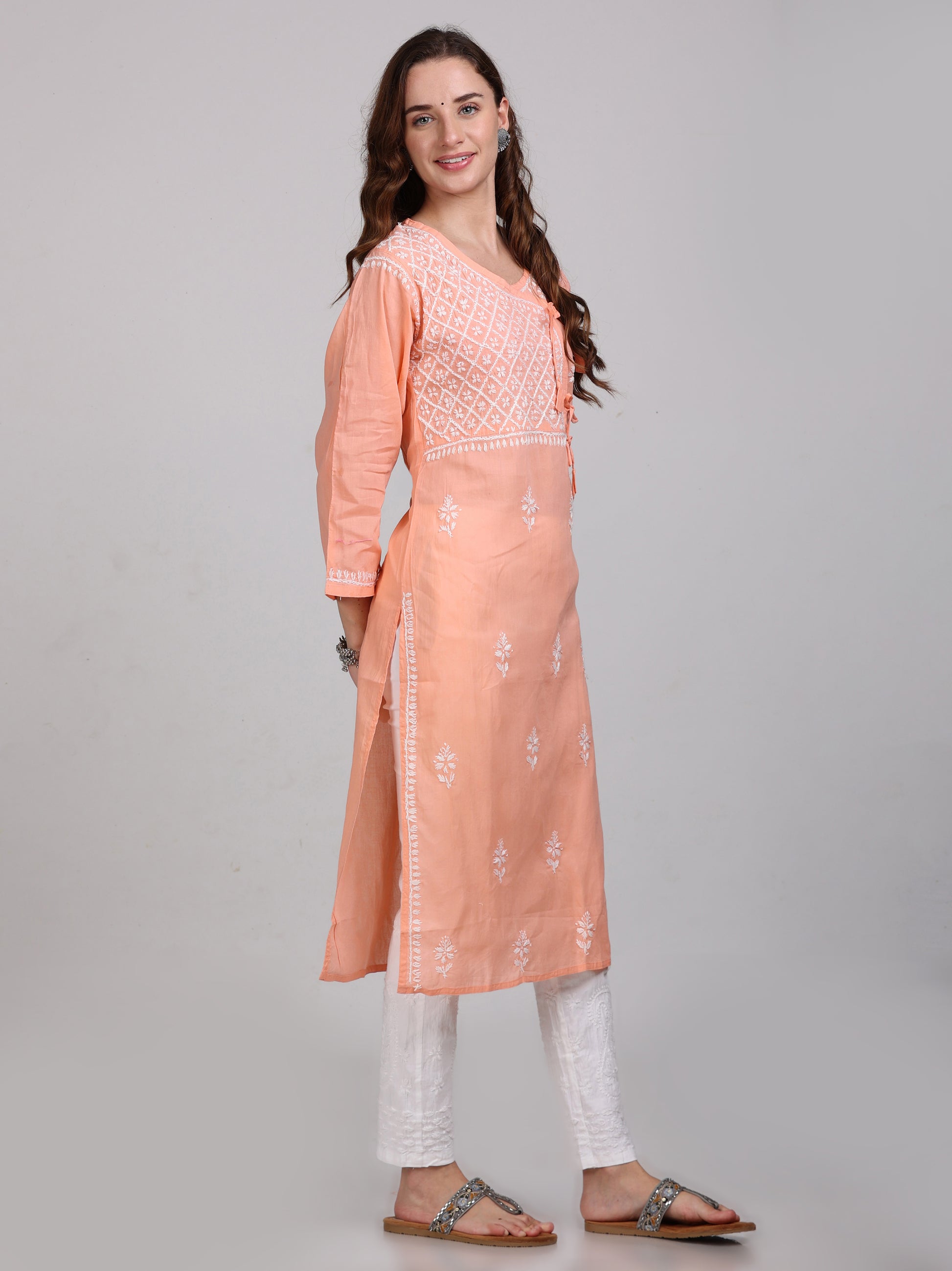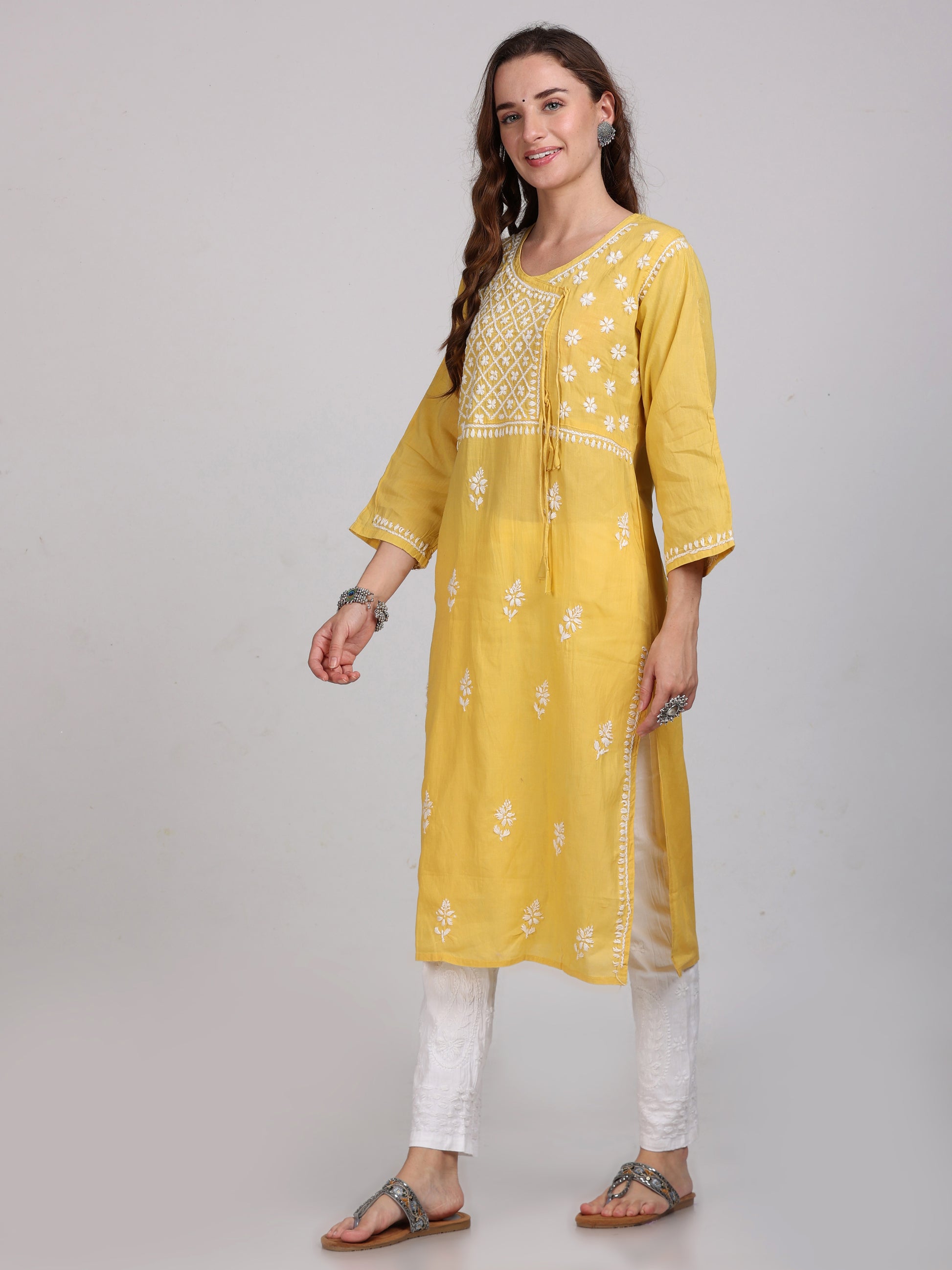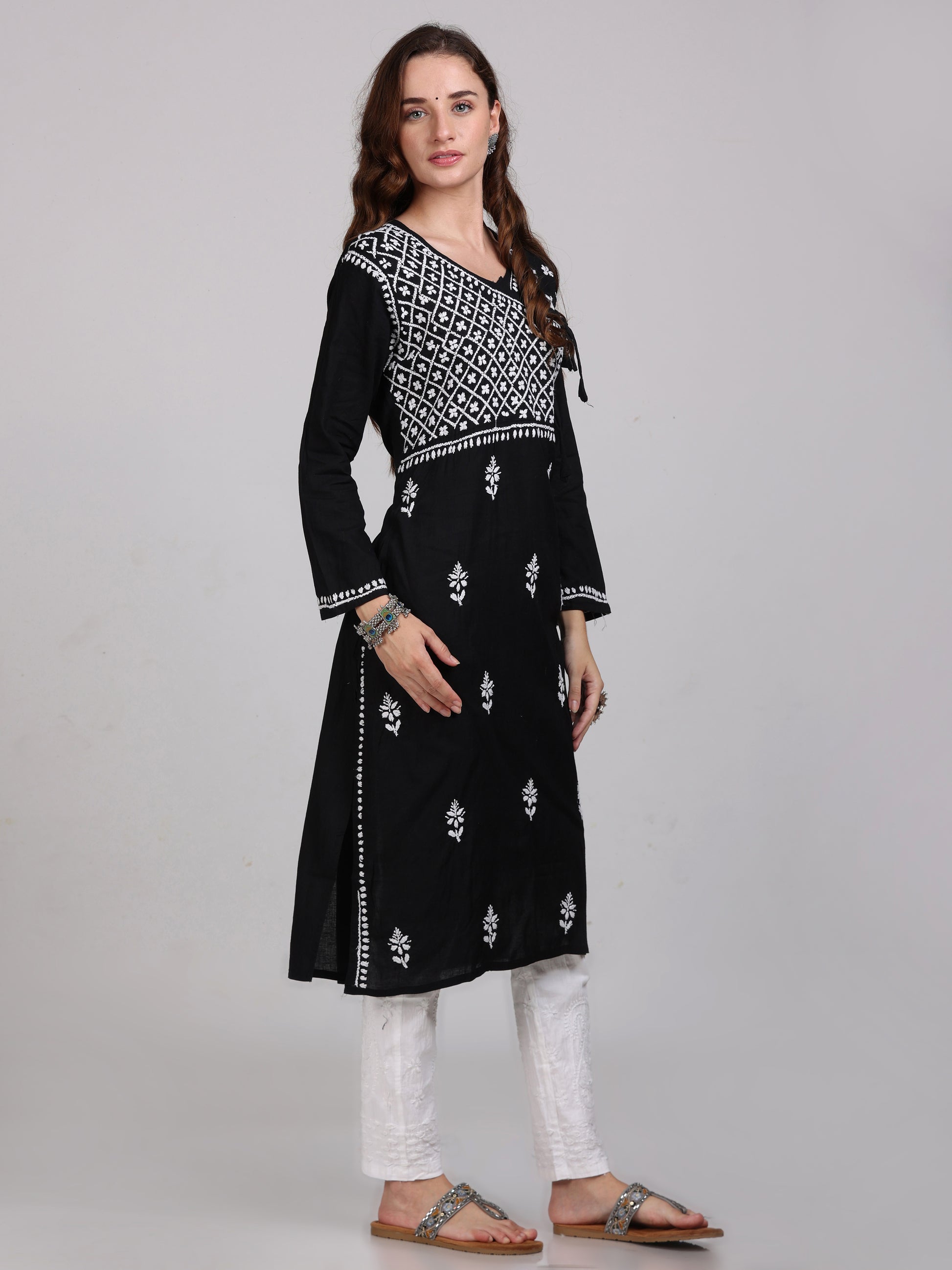 Angarkha Style Chikankari Pure Cotton Straight Kurta