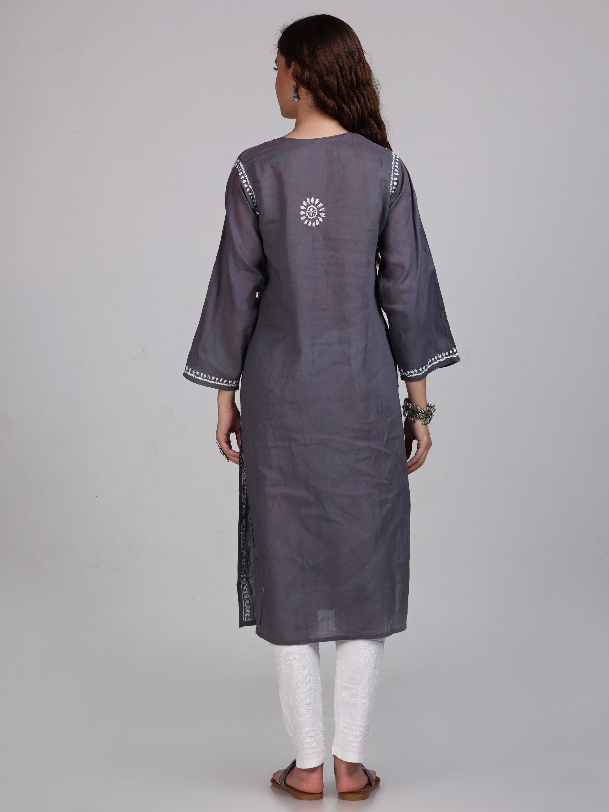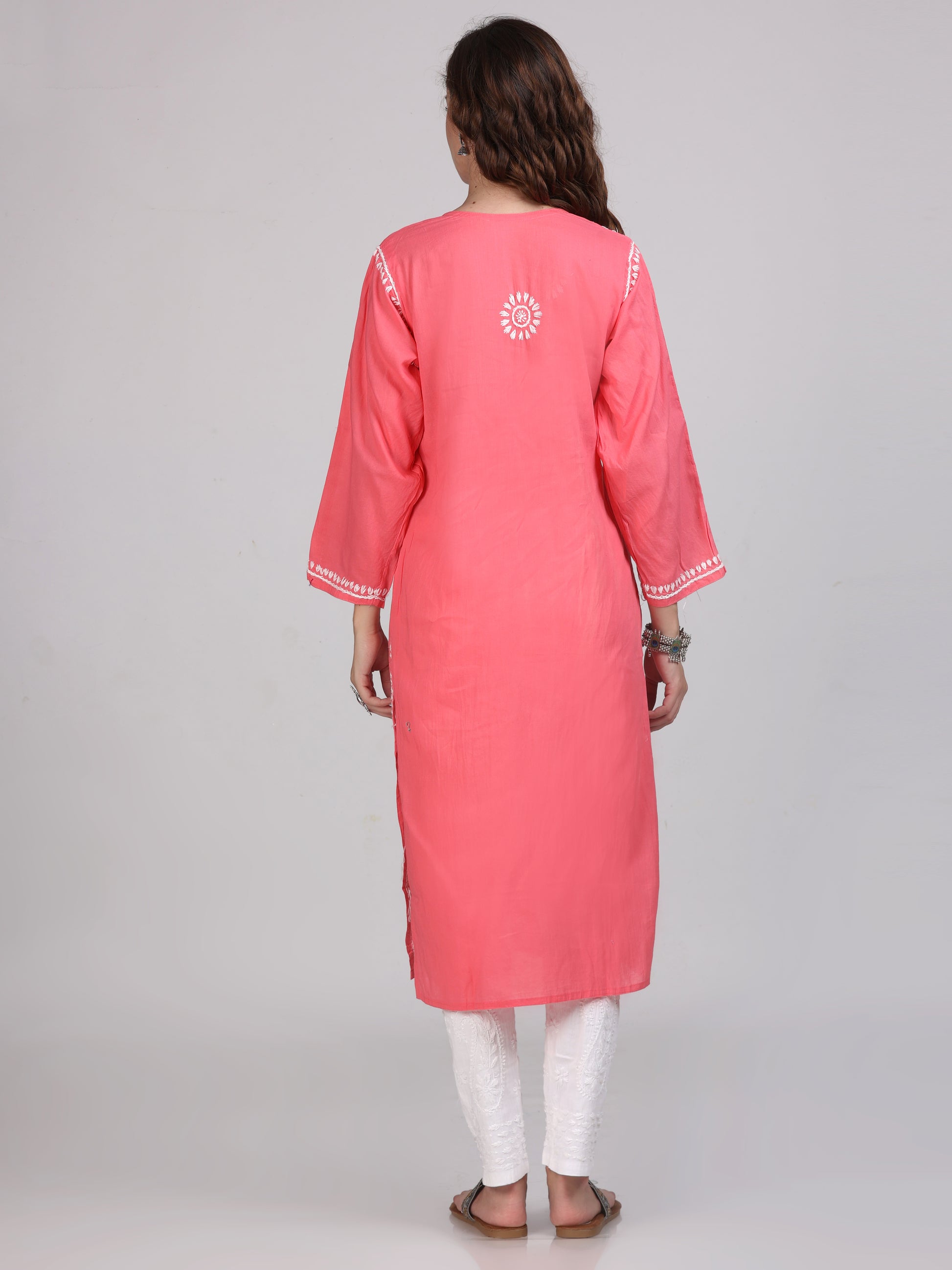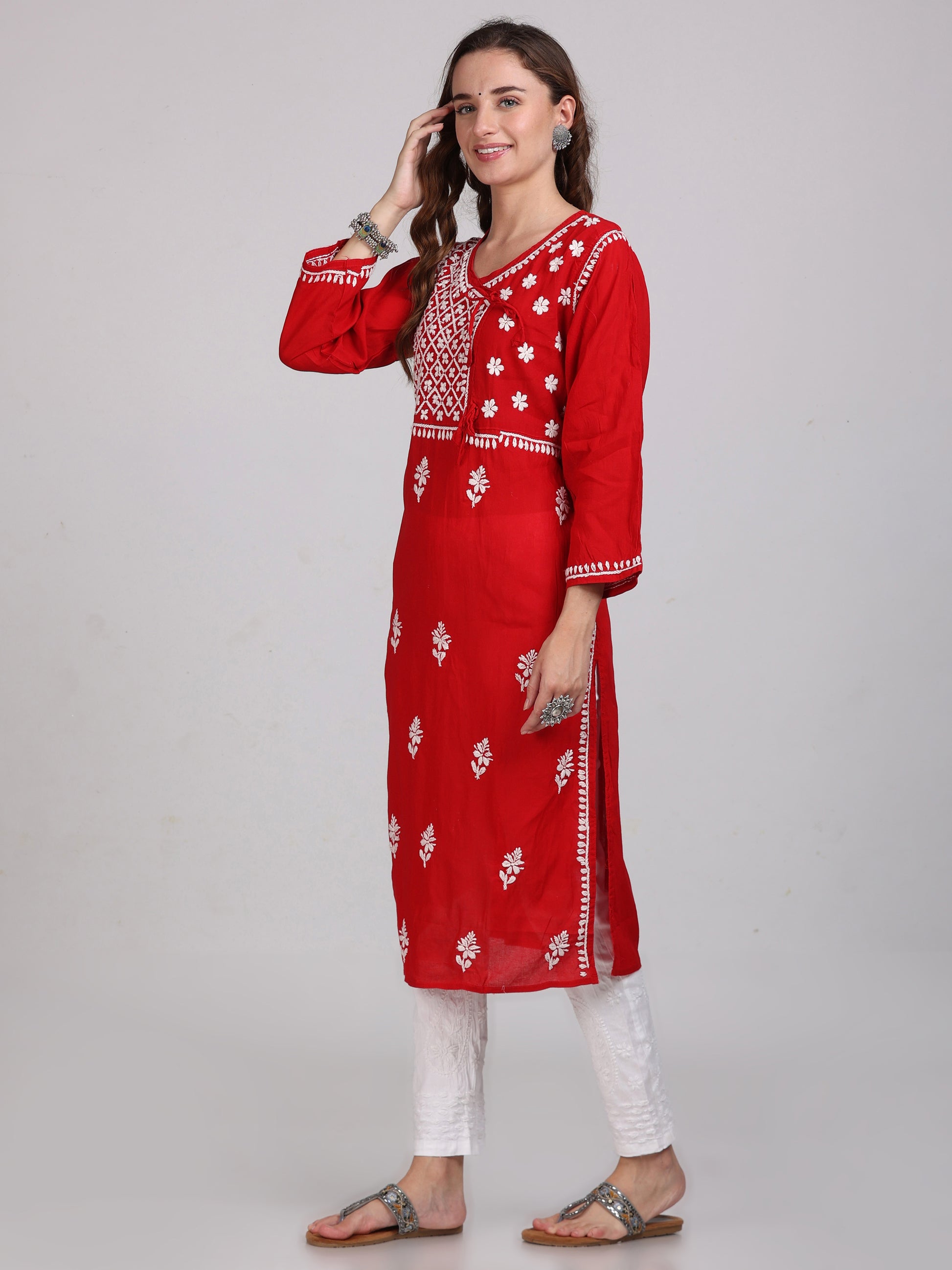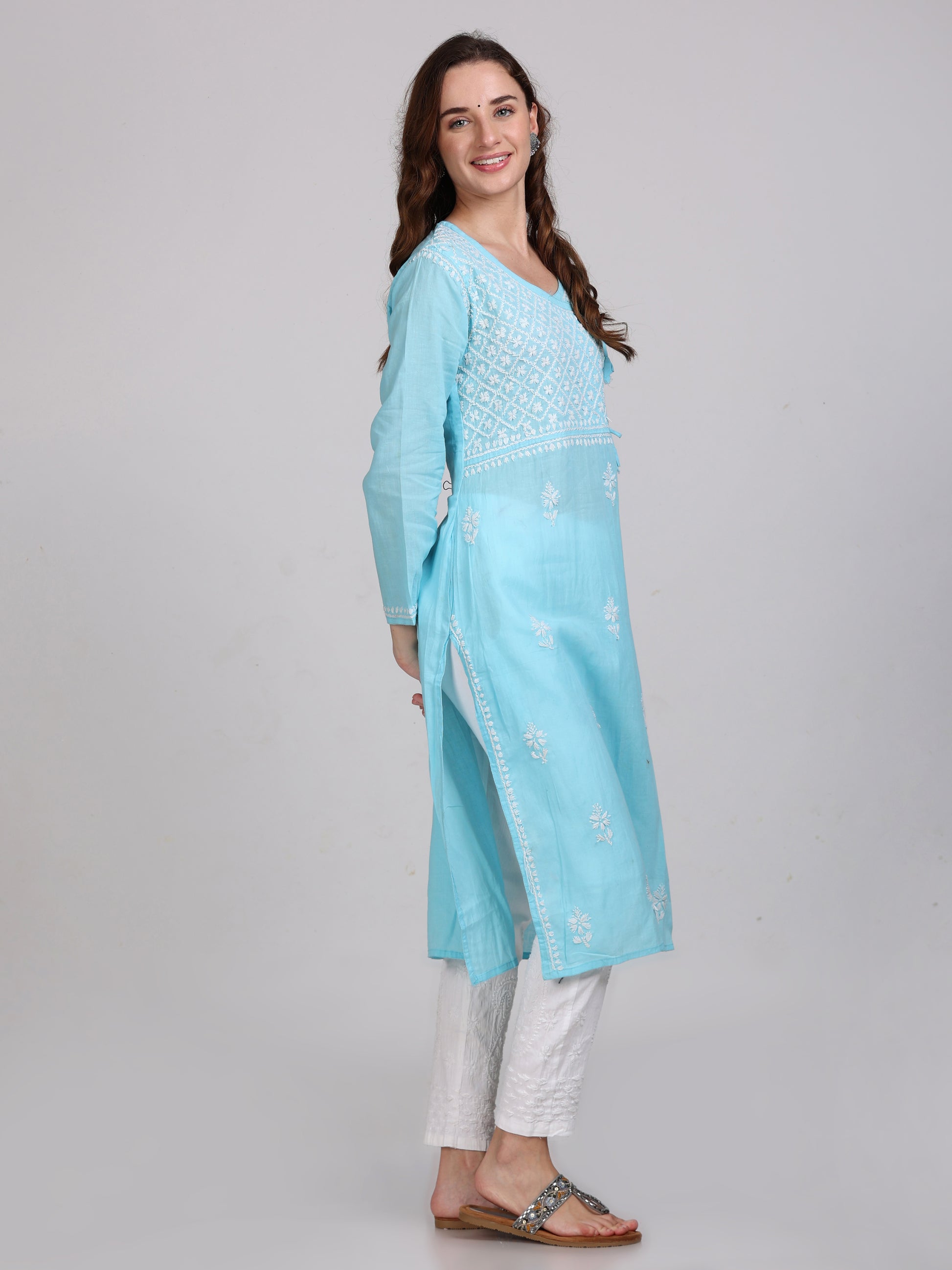 Angarkha Style Chikankari Pure Cotton Straight Kurta