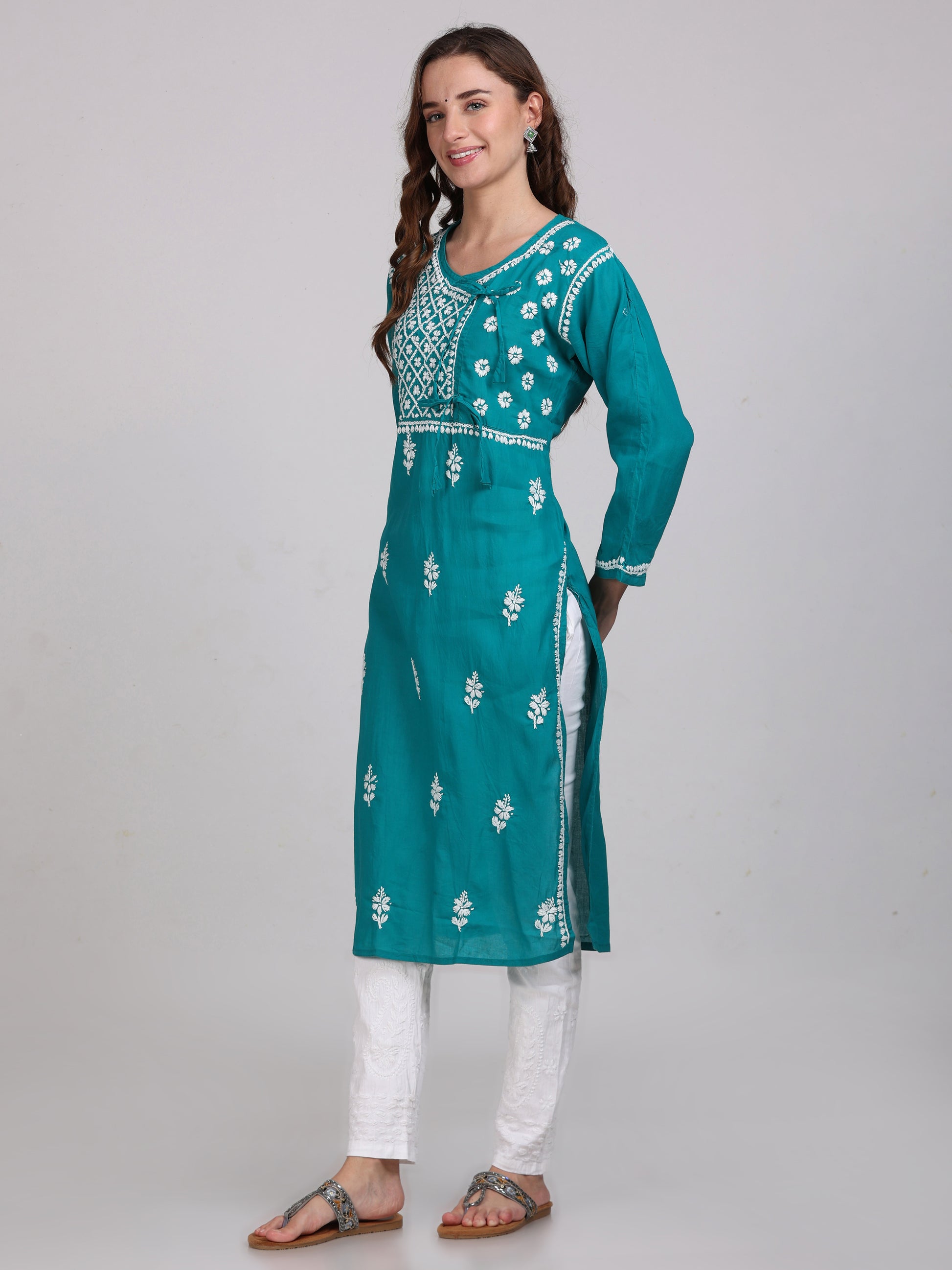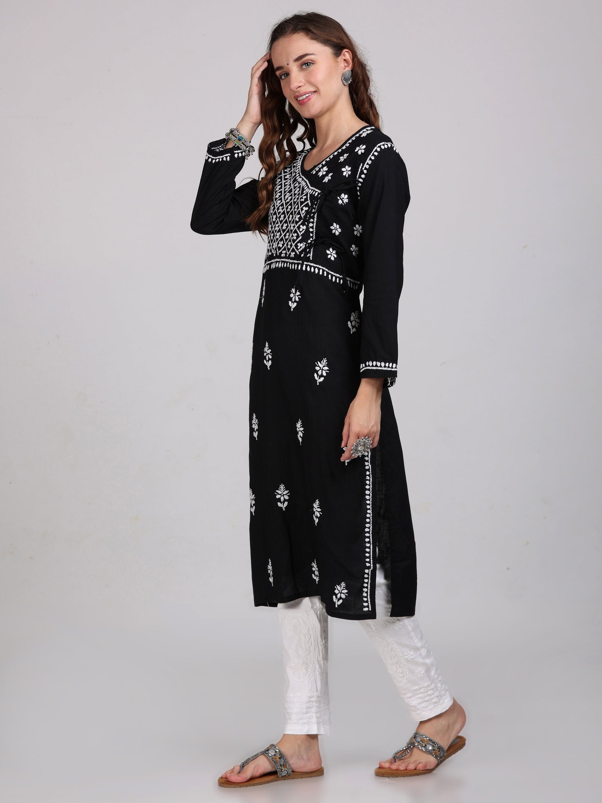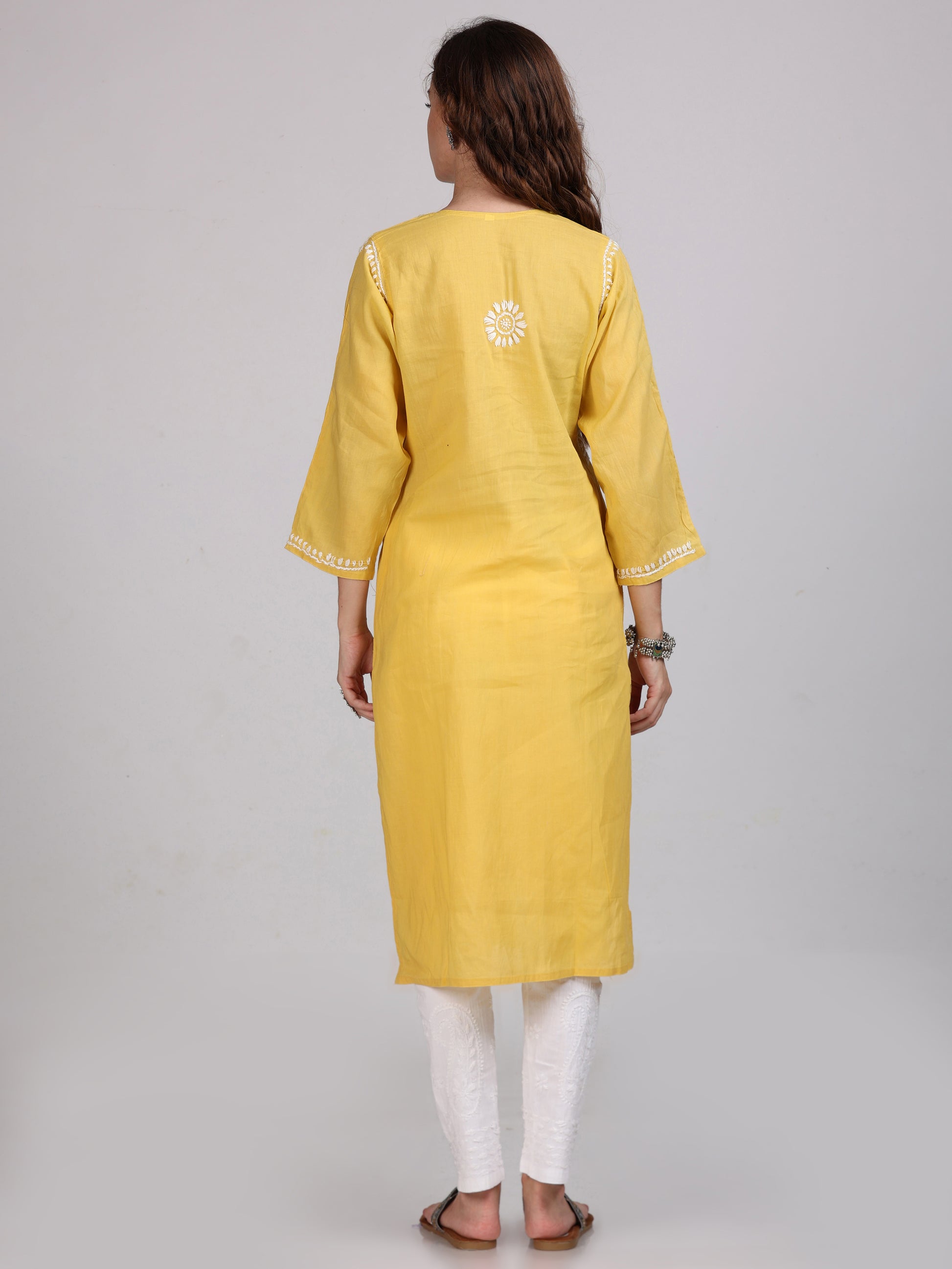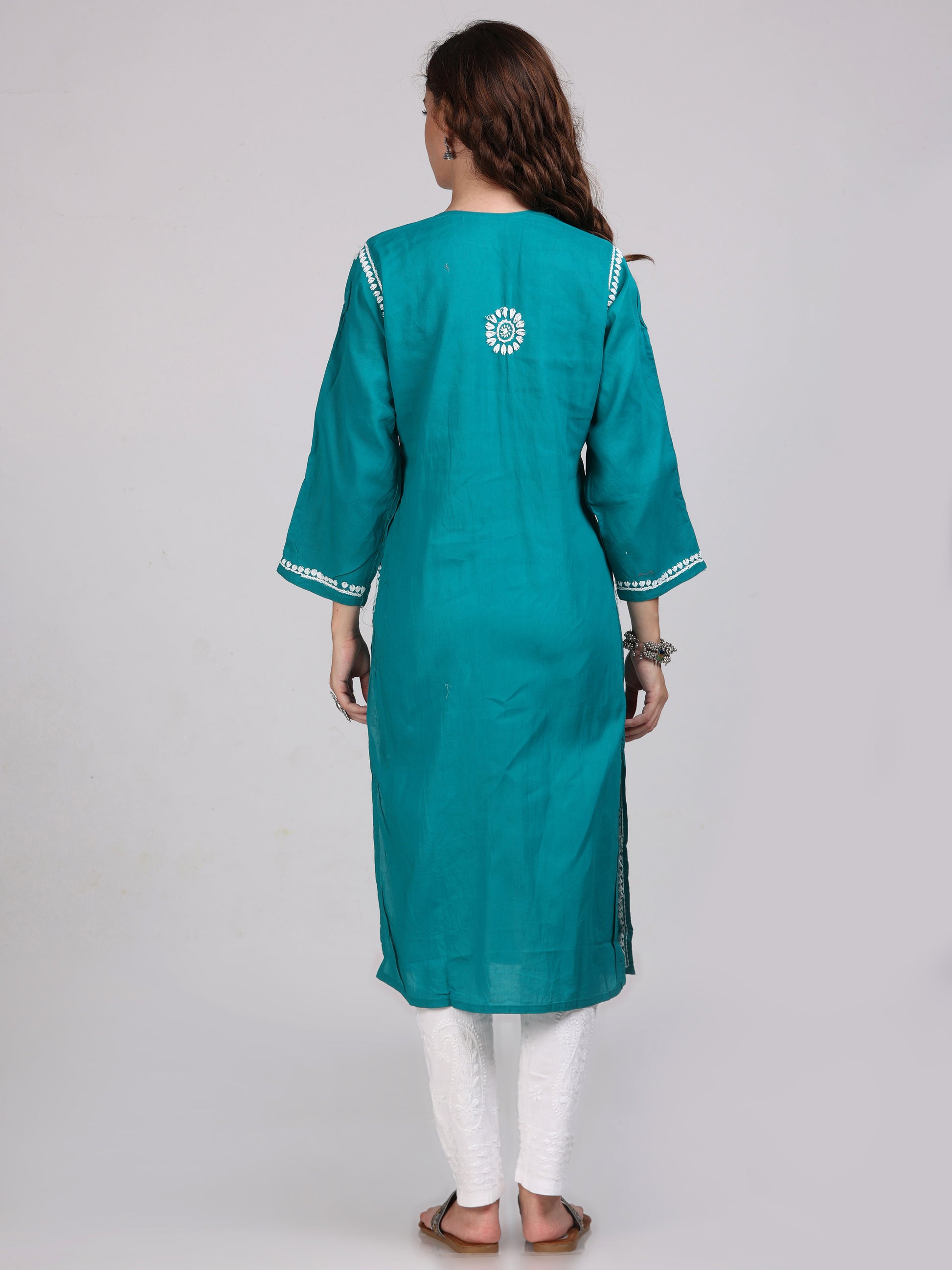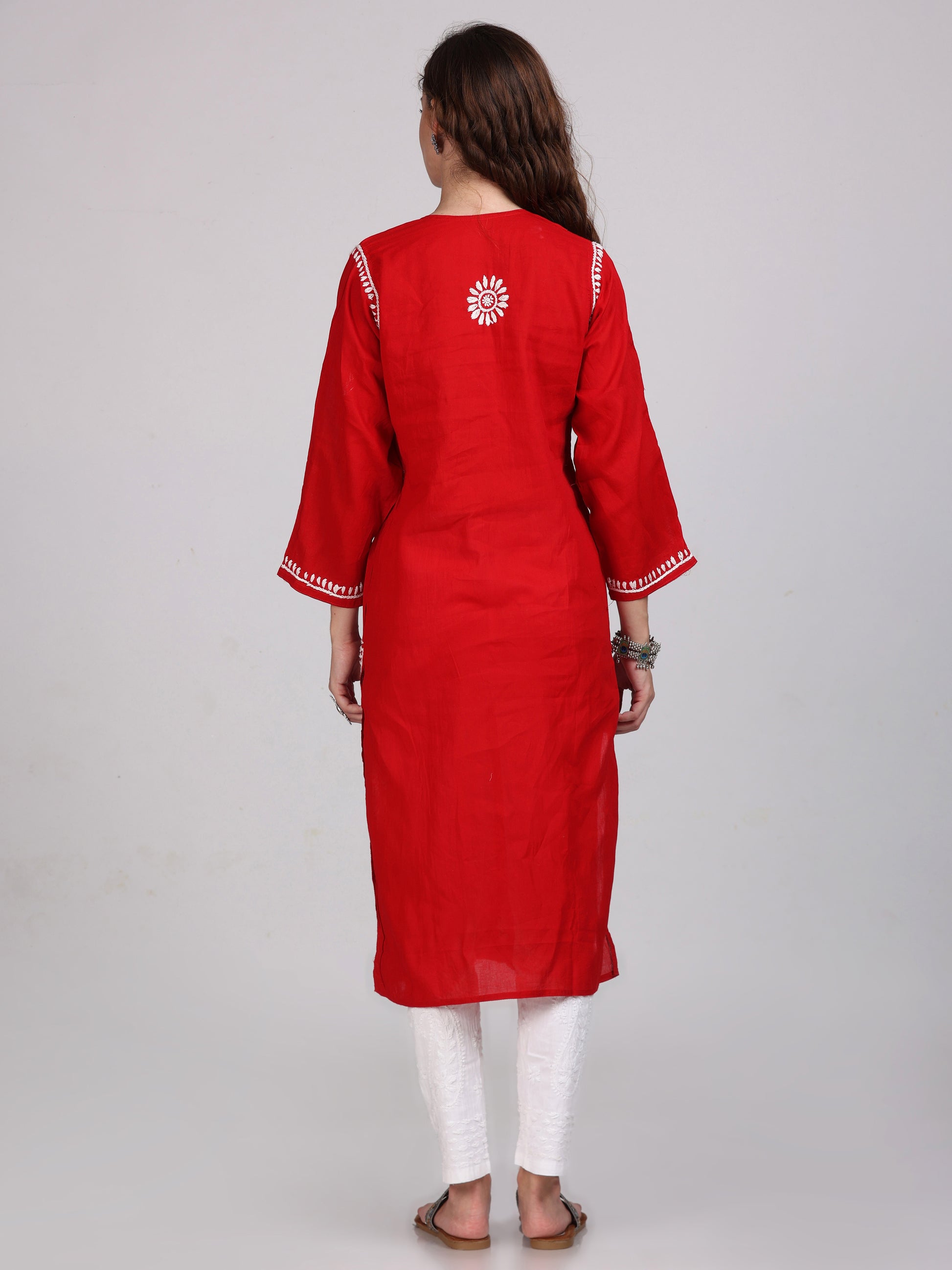 Angarkha Style Chikankari Pure Cotton Straight Kurta