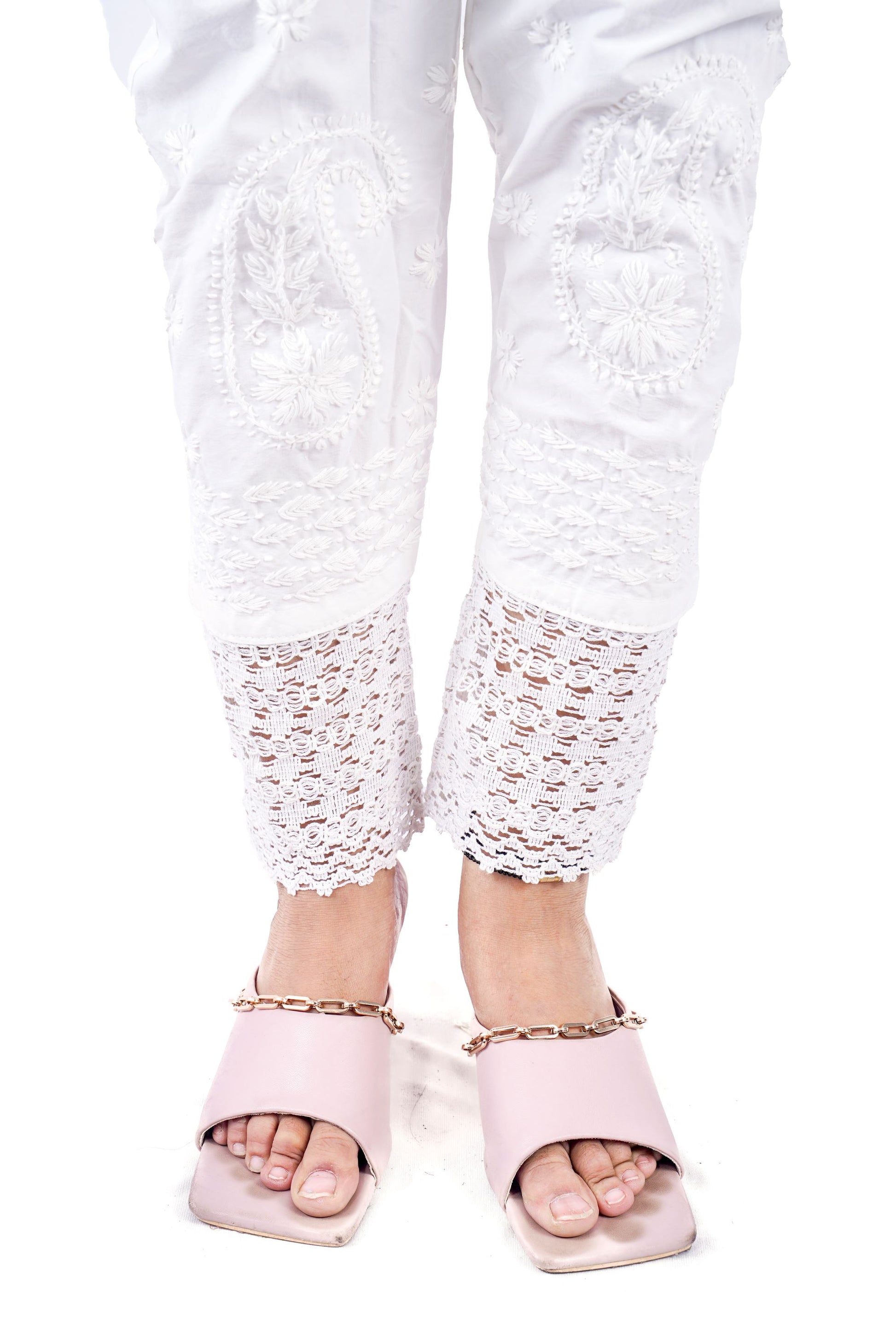 Chikankari Crochet Laced Trousers On Lycra Stretchable fabric With Both Side Pockets