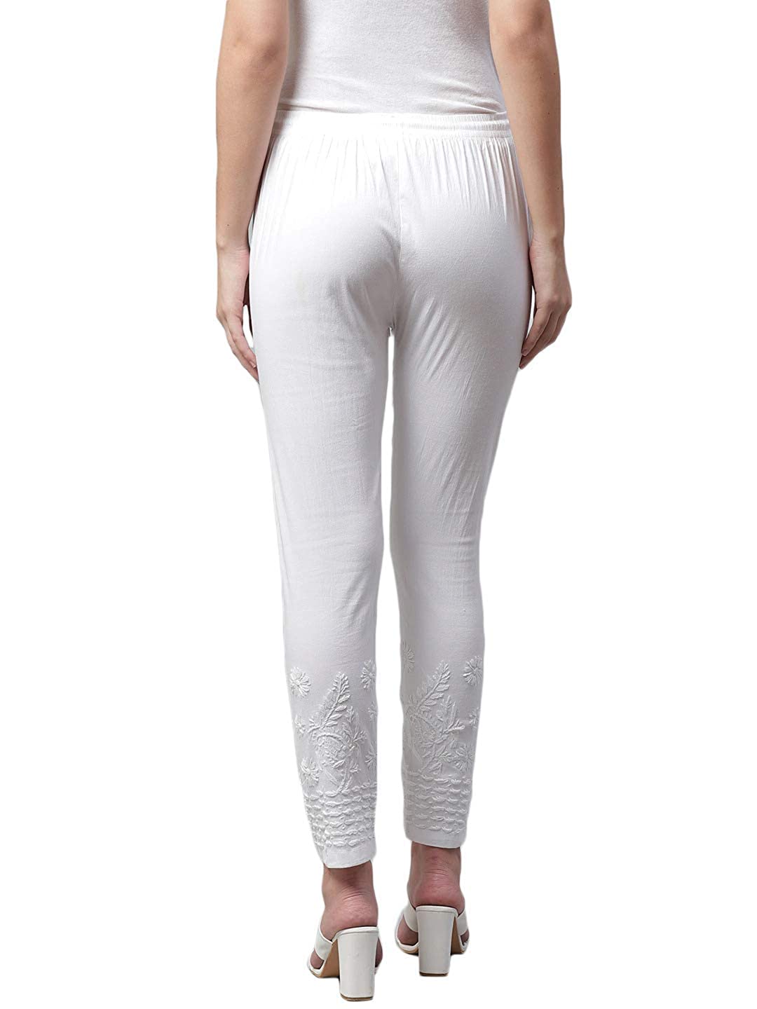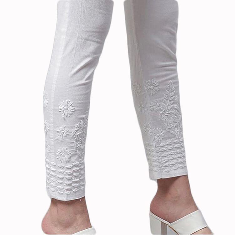 Chikankari Hand-Embroidered Lycra Stretchable Trousers With Both Side Pockets