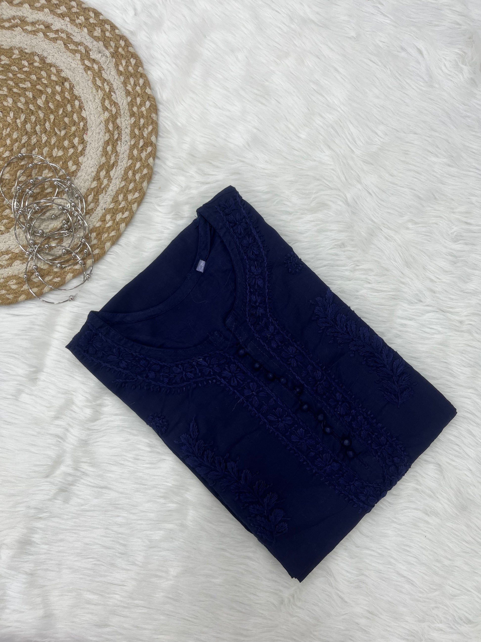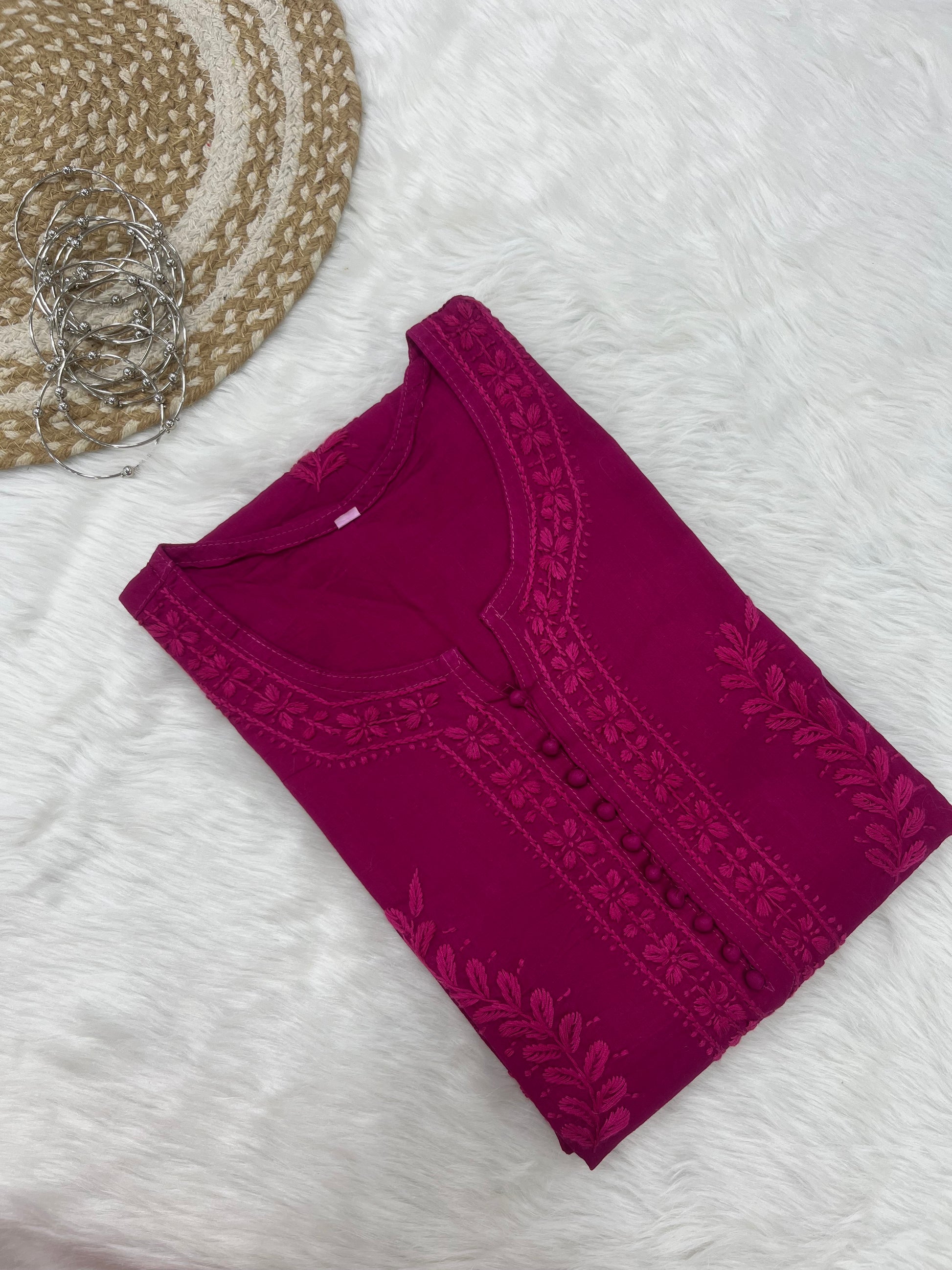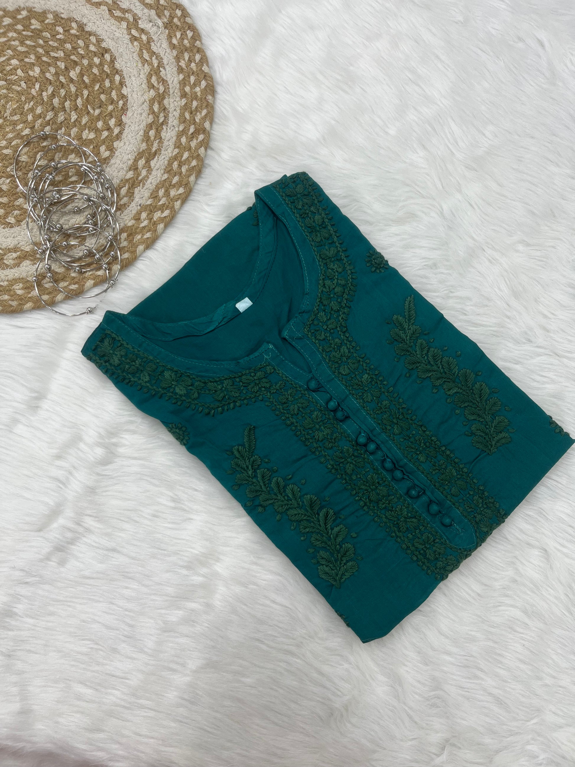 Elegant Chikankari Cotton Dyed Kurti – Handcrafted Lucknowi Style