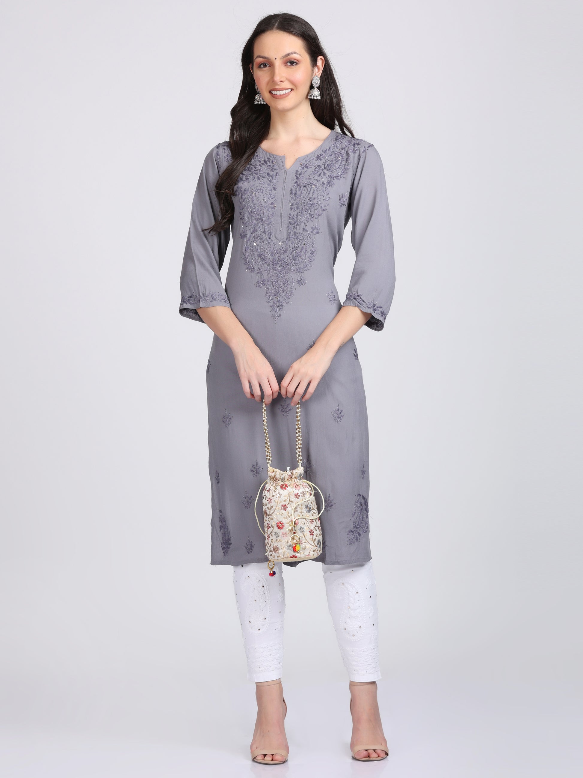 Elegant Mukaish Work Chikankari Straight Kurta on Soft & Breezy Fabric