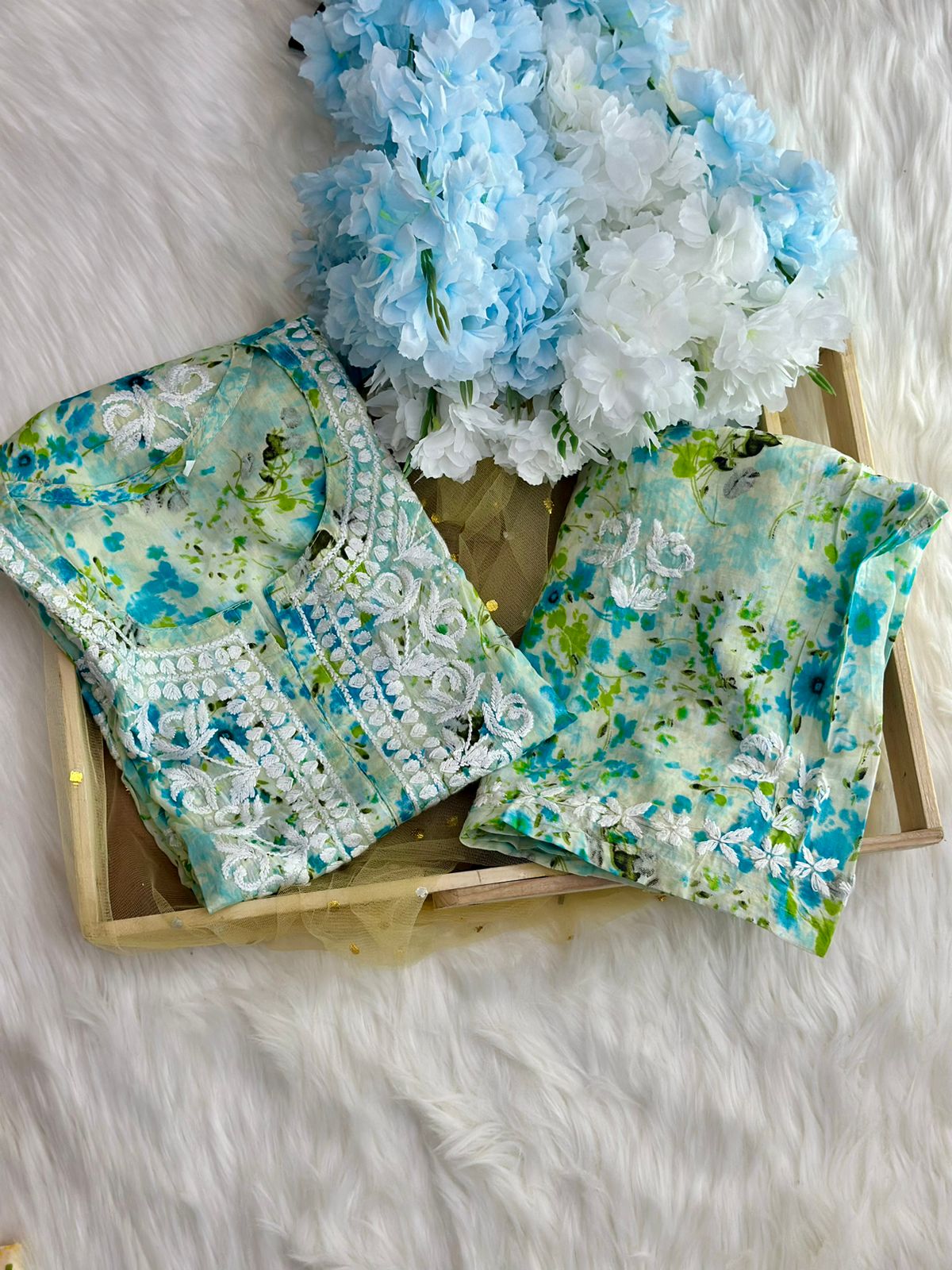 Plus Size Handwork Chikankari Mul-Mul Plazzo Set